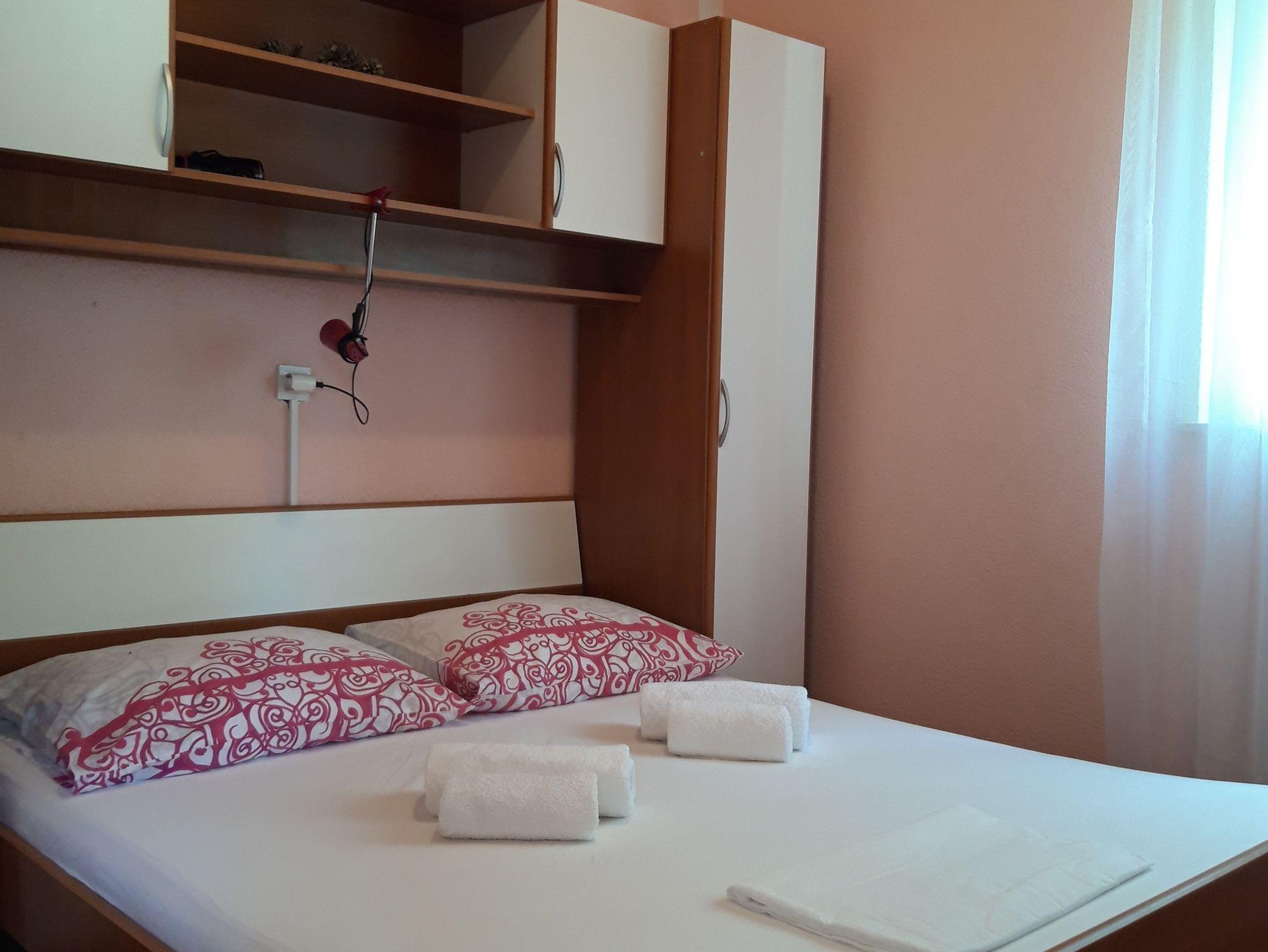 Ferienwohnung bietet Platz für 4 Gäste. Die Betten sind in Schlafzimmern, die es 1 gibt, und in Wohnzimmer, innerhalb einer Gesamtfläche von 35m2, angeordnet. Die Gäste haben eine eigene Terrasse zur Verfügung, auf der sie in warmen Sommernächten genießen können. Es ist erlaubt, Speisen auf dem Gemeinschafts-Grill vorzubereiten. IM PREIS INBEGRIFFEN: Kurtaxe, Endreinigung, Klimatisierung, Parkplatz, Internet, Bootsanlegeplatz. VERBINDLICHE ZUSÄTZLICHE KOSTEN: Aufzahlung für Kurzaufenthalte (prozentualer Zuschlag pro Nächtigungsanzahl: 30% - 1, 20% - 2, 10% - 3). Die Verfügbarkeit zusätzlicher Dienstleistungen in Ihrem reservierten Termin und die Preise derselben (falls nicht aufgeführt) müssen im Voraus überprüft werden. Zusätzliche Dienstleistungen die in der Zahlungsaufforderung nicht aufgeführt sind werden direkt beim Vermieter bezahlt, angenommen der Gast nutzt auch diese.