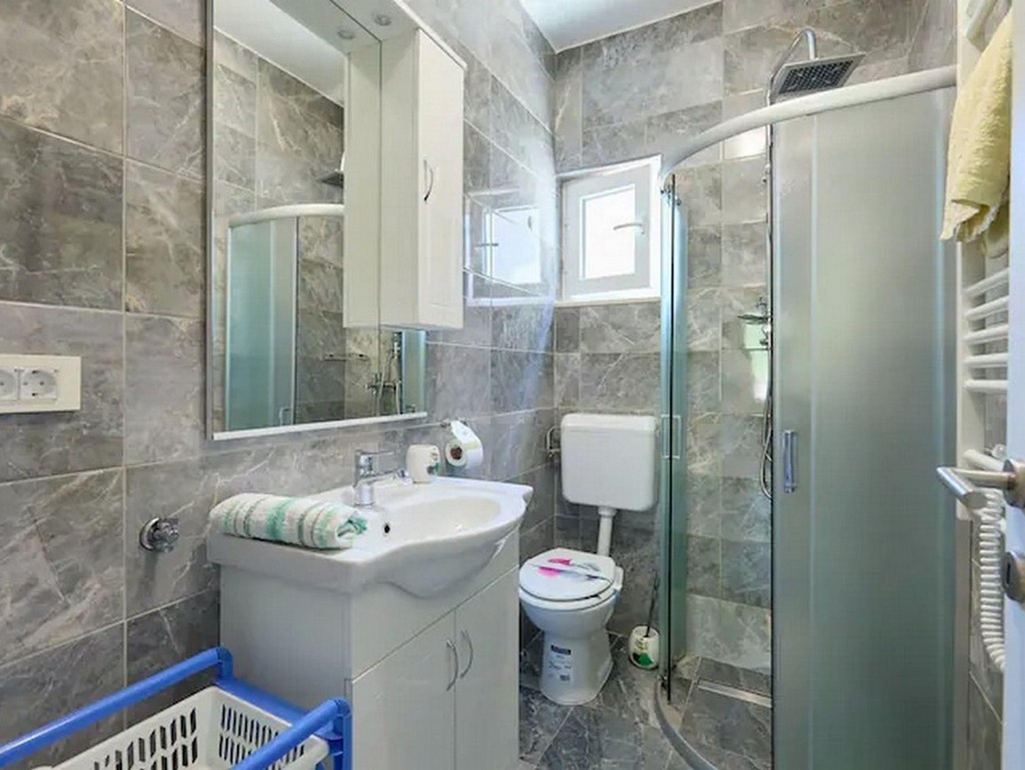 Ferienwohnung bietet Platz für 6 Gäste. Die Betten sind in Schlafzimmern, die es 3 gibt, innerhalb einer Gesamtfläche von 51m2, angeordnet. Die Gäste haben eine eigene Terrasse zur Verfügung, auf der sie in warmen Sommernächten genießen können. Das Apartment bietet Meerblick. Es ist erlaubt, Speisen auf dem Gemeinschafts-Grill vorzubereiten. IM PREIS INBEGRIFFEN: Kurtaxe, Endreinigung, Parkplatz, Internet, Kinderbett, Bügeleisen, Bügelbrett, Föhn. Die Verfügbarkeit zusätzlicher Dienstleistungen in Ihrem reservierten Termin und die Preise derselben (falls nicht aufgeführt) müssen im Voraus überprüft werden. Zusätzliche Dienstleistungen die in der Zahlungsaufforderung nicht aufgeführt sind werden direkt beim Vermieter bezahlt, angenommen der Gast nutzt auch diese.