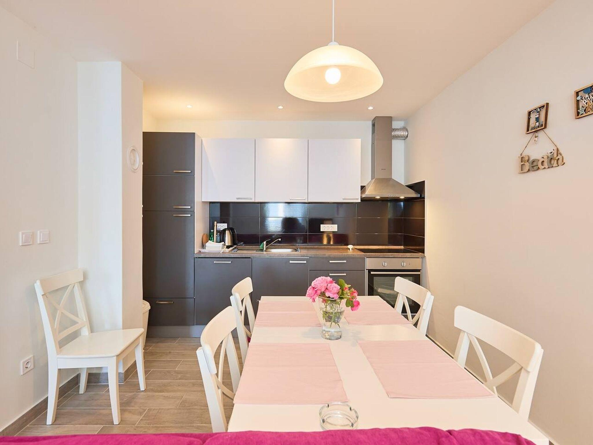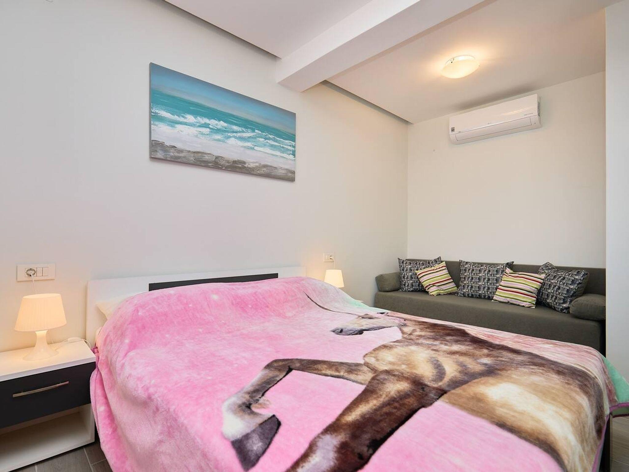 Ferienwohnung bietet Platz für 4 Gäste. Die Betten sind in Schlafzimmern, die es 1 gibt, und in Wohnzimmer, innerhalb einer Gesamtfläche von 42m2, angeordnet. Die Gäste haben eine eigene Terrasse zur Verfügung, auf der sie in warmen Sommernächten genießen können. Das Apartment bietet Meerblick. IM PREIS INBEGRIFFEN: Kurtaxe, Endreinigung, Klimatisierung, Parkplatz, Internet, Kinderbett, Bügeleisen, Bügelbrett, Föhn. Die Verfügbarkeit zusätzlicher Dienstleistungen in Ihrem reservierten Termin und die Preise derselben (falls nicht aufgeführt) müssen im Voraus überprüft werden. Zusätzliche Dienstleistungen die in der Zahlungsaufforderung nicht aufgeführt sind werden direkt beim Vermieter bezahlt, angenommen der Gast nutzt auch diese.