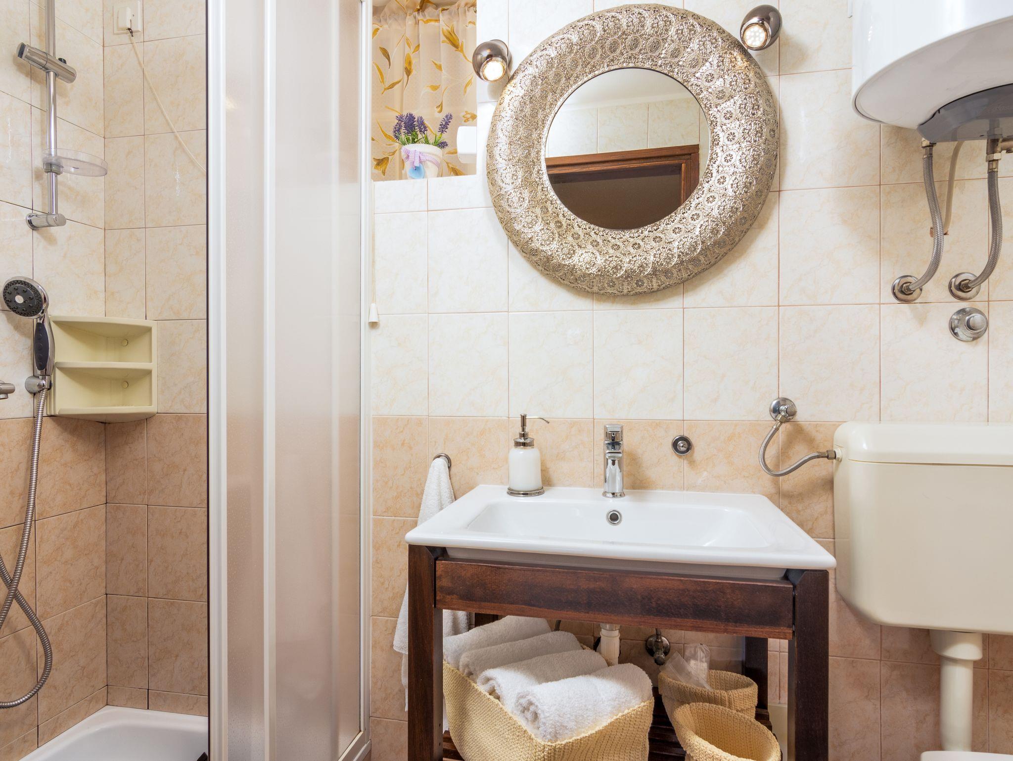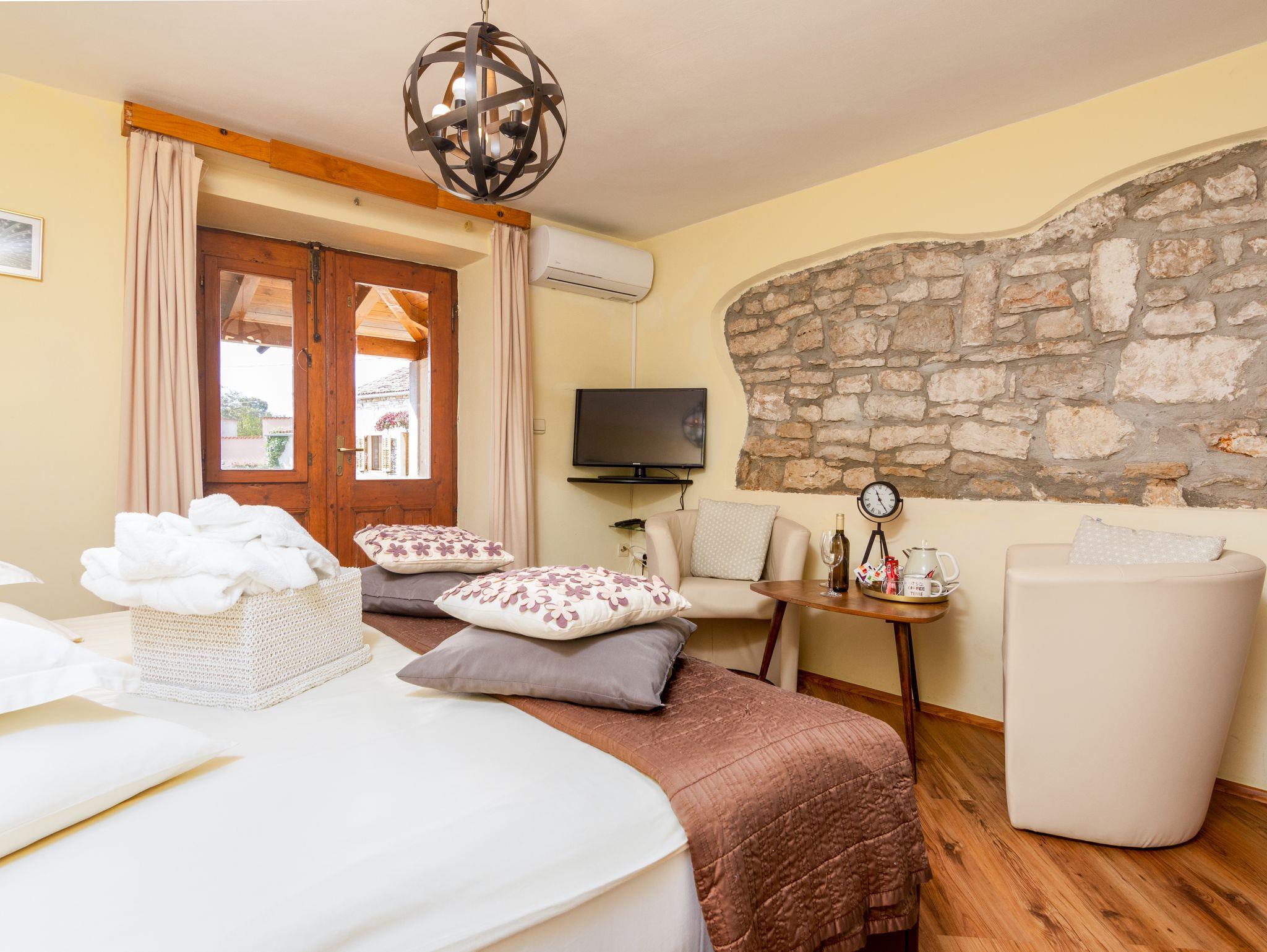 Zimmer bietet Platz für 2 Gäste. Die Betten sind in Schlafzimmern, die es 1 gibt, innerhalb einer Gesamtfläche von 21m2, angeordnet. Die Gäste haben eine eigene Terrasse zur Verfügung, auf der sie in warmen Sommernächten genießen können. Die reservierte Unterkunftseinheit ist ein Zimmer mit eigenem Badezimmer ohne die Möglichkeit der Nutzung einer Küche. IM PREIS INBEGRIFFEN: Kurtaxe, Endreinigung, Klimatisierung, Parkplatz, Internet, Wäschewaschen, Kinderbett, Bügeleisen, Bügelbrett, Föhn. UNVERBINDLICHE ZUSÄTZLICHE KOSTEN: Frühstück (15,00 €, 50% Nachlass für Kinder zwischen 4 und 12 Jahren, Kinder bis 4 Jahre sind frei.). Die Verfügbarkeit zusätzlicher Dienstleistungen in Ihrem reservierten Termin und die Preise derselben (falls nicht aufgeführt) müssen im Voraus überprüft werden. Zusätzliche Dienstleistungen die in der Zahlungsaufforderung nicht aufgeführt sind werden direkt beim Vermieter bezahlt, angenommen der Gast nutzt auch diese.