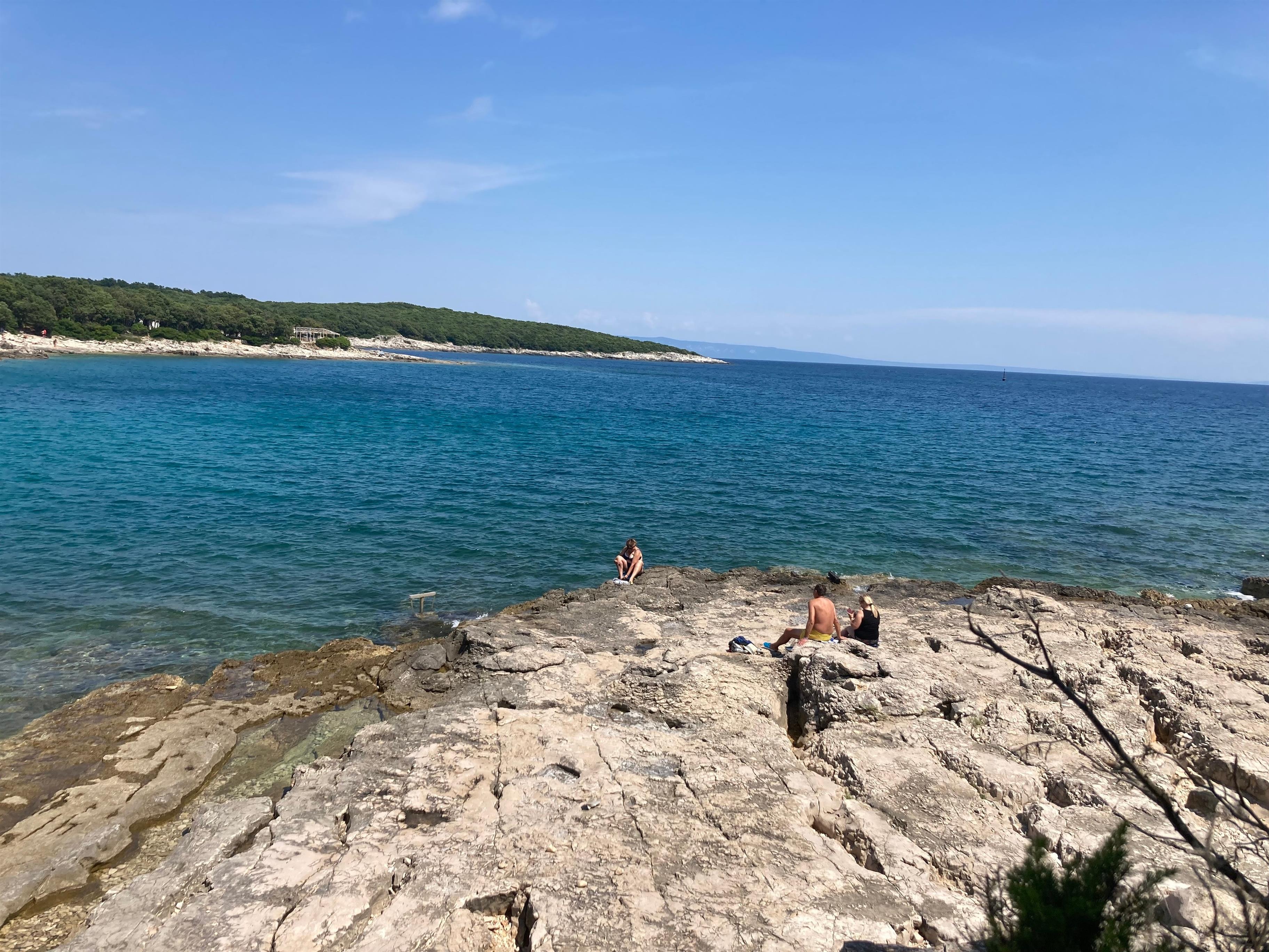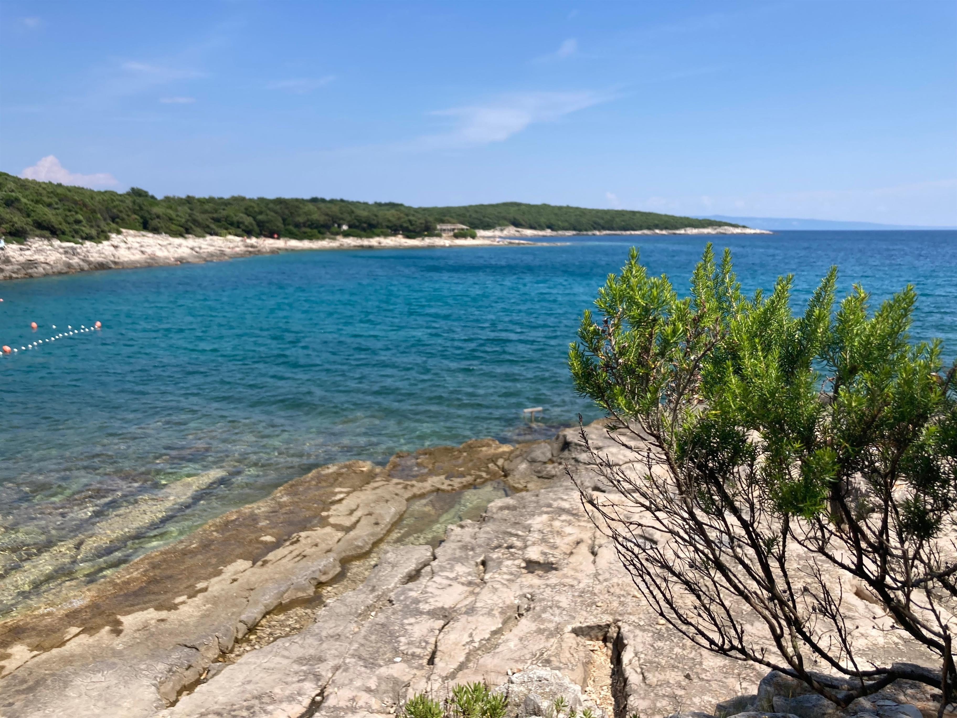 Zum berühmten Strand Duga Uvala, mit seinem kristallklarem Wasser, an der istrischen Ostküste,