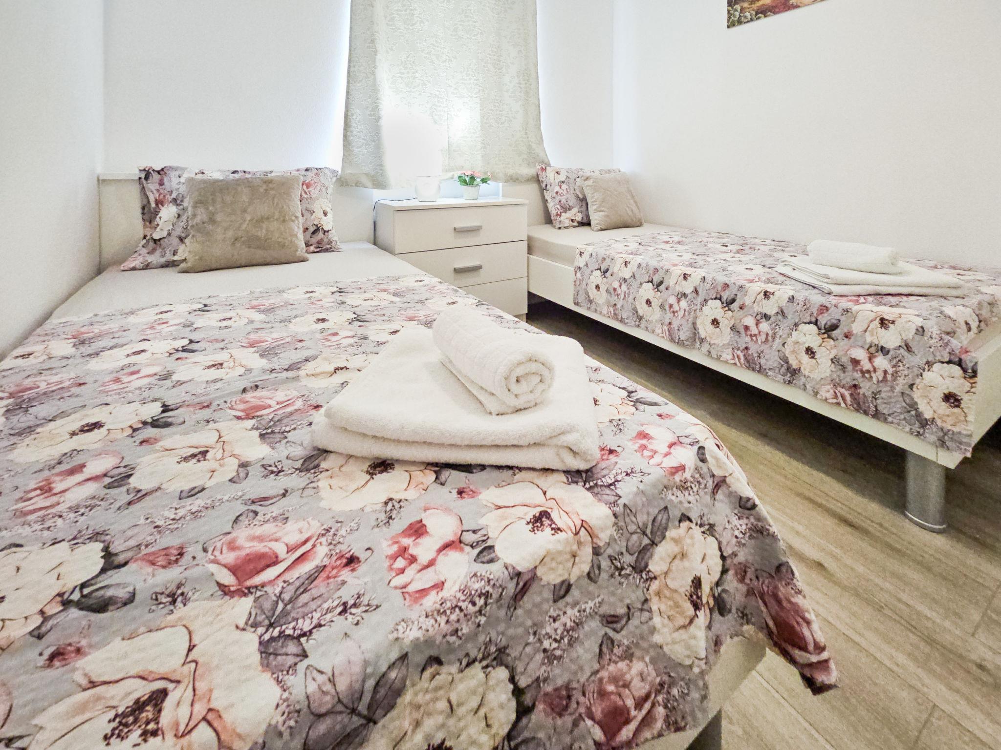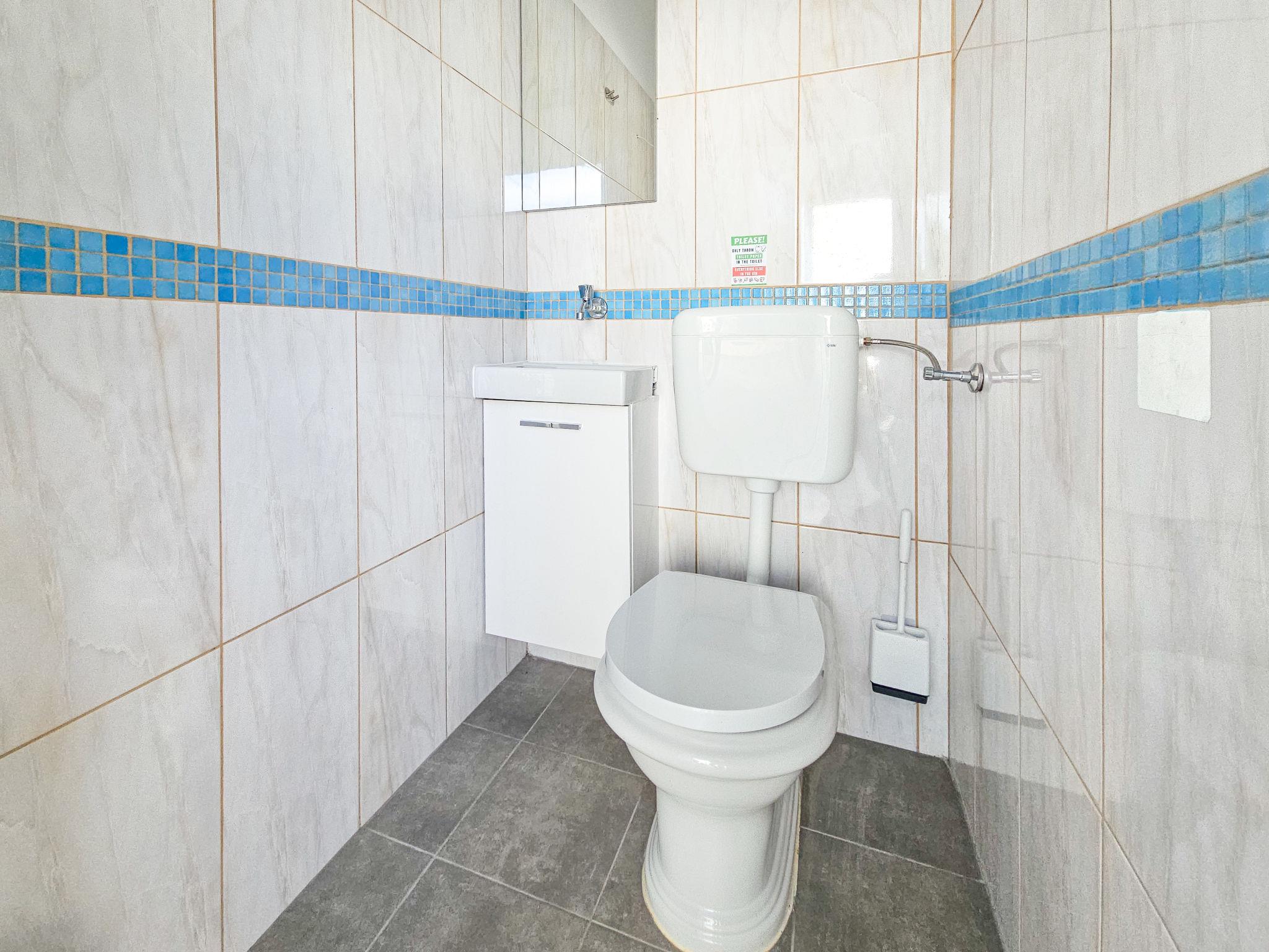 4-room house 75 m2, on the ground floor. Living/dining room with satellite TV (flat screen), air conditioning. Exit to the terrace. 1 room with 1 french bed (160 cm, length 200 cm), separate WC. 1 room with 1 french bed (160 cm, length 200 cm). 1 room with 2 beds (90 cm, length 200 cm). Open kitchen (4 hot plates, oven, dishwasher, microwave, freezer). Shower/WC. No heating option. Terrace 16 m2, roofed. Terrace furniture, deck chairs (4). Facilities: Internet (WiFi, free). Please note: 1 pet/ dog allowed. Smoke alarm, fire extinguisher.