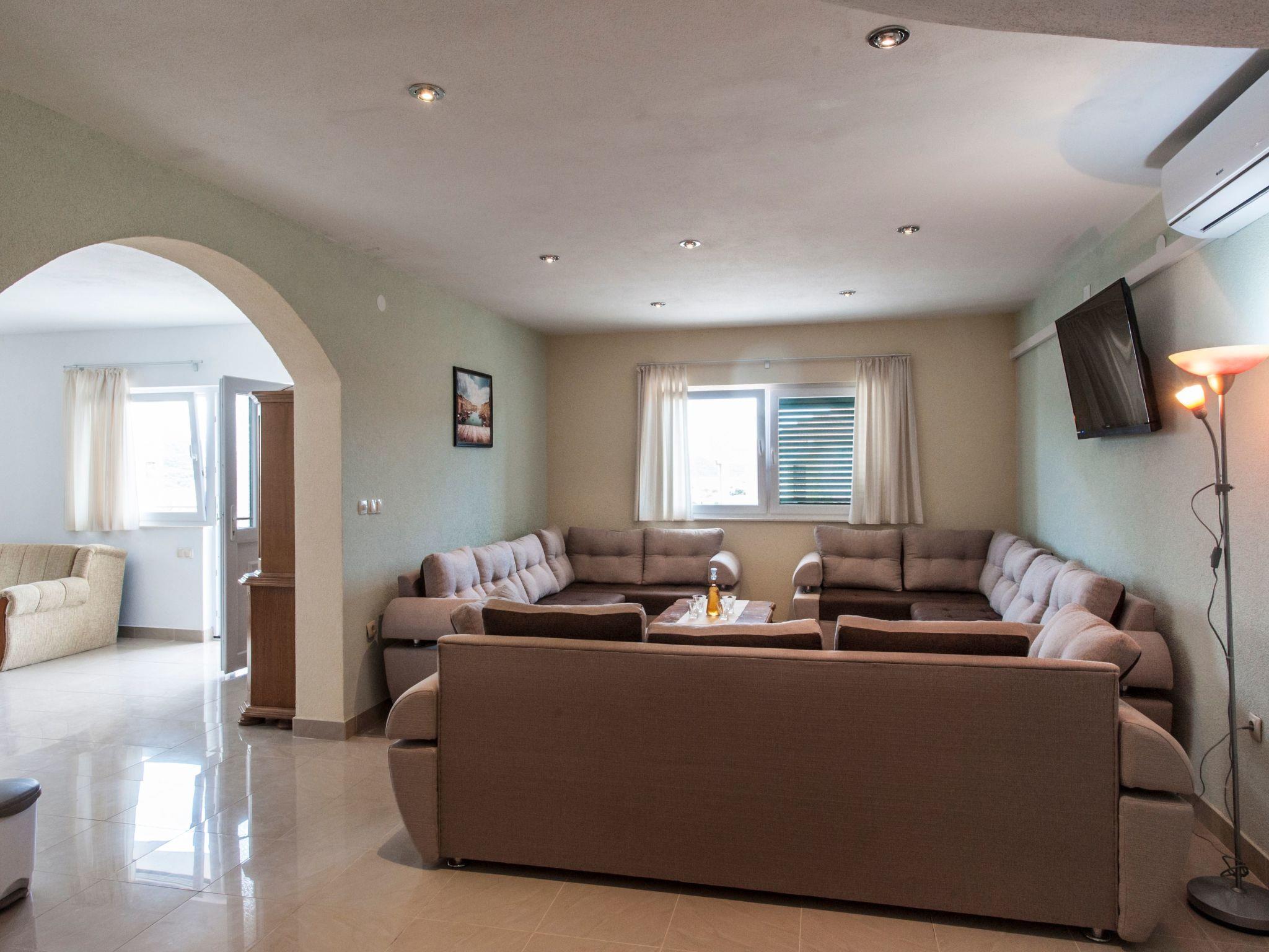 The interior of Villa Katy is designed to cater to the needs of a large group. Each of the 6 bedrooms is complemented by its own bathroom, ensuring privacy and comfort for all guests. The villa is equipped with an array of modern amenities, including a fully furnished kitchen for those who love to cook, and a cozy living room that invites you to relax. Additionally, convenience is at your fingertips with a coffee machine, air conditioning throughout for those warm Dalmatian days, a dishwasher for hassle-free clean-up, and a washing machine for communal use within the building.