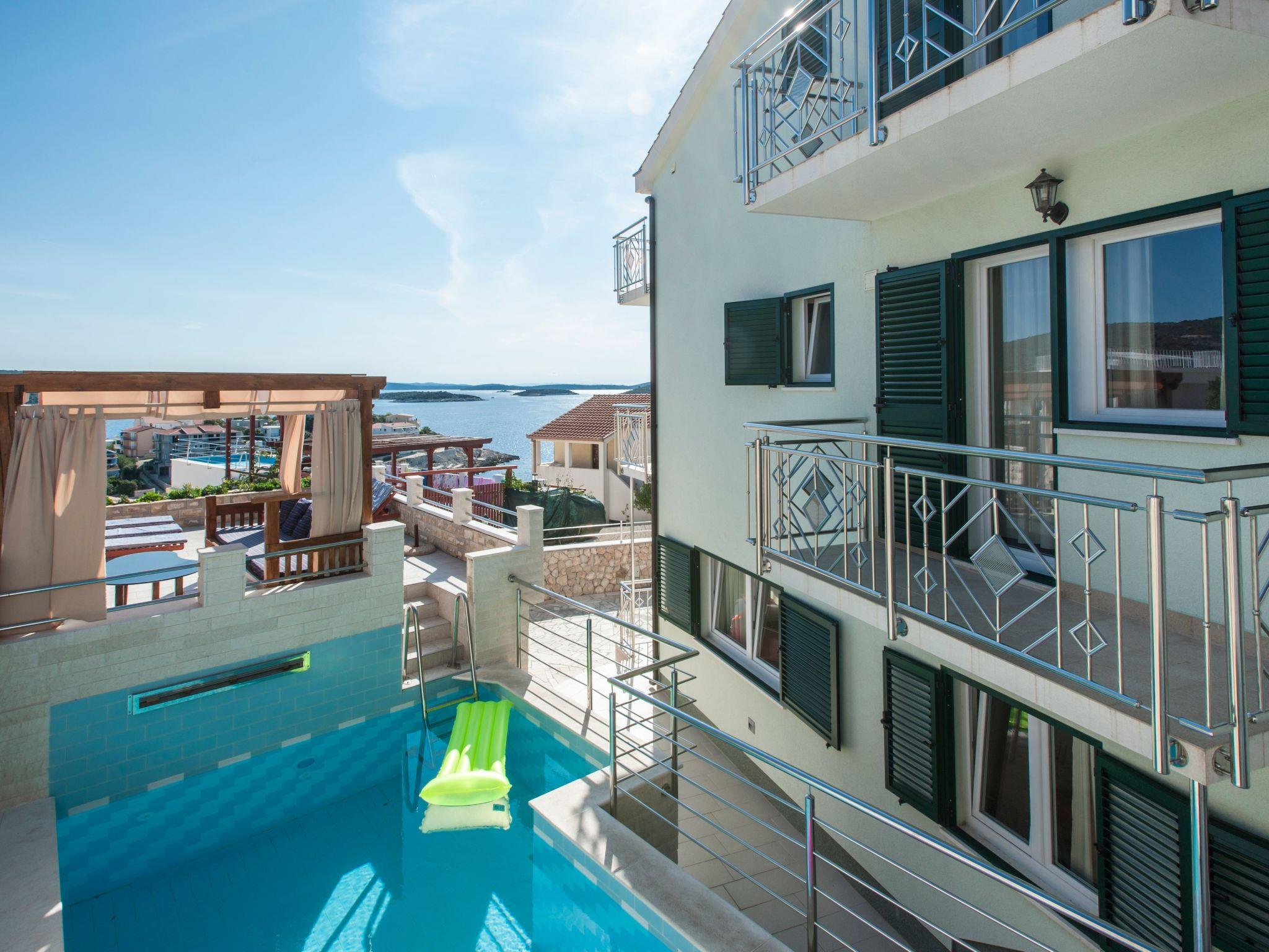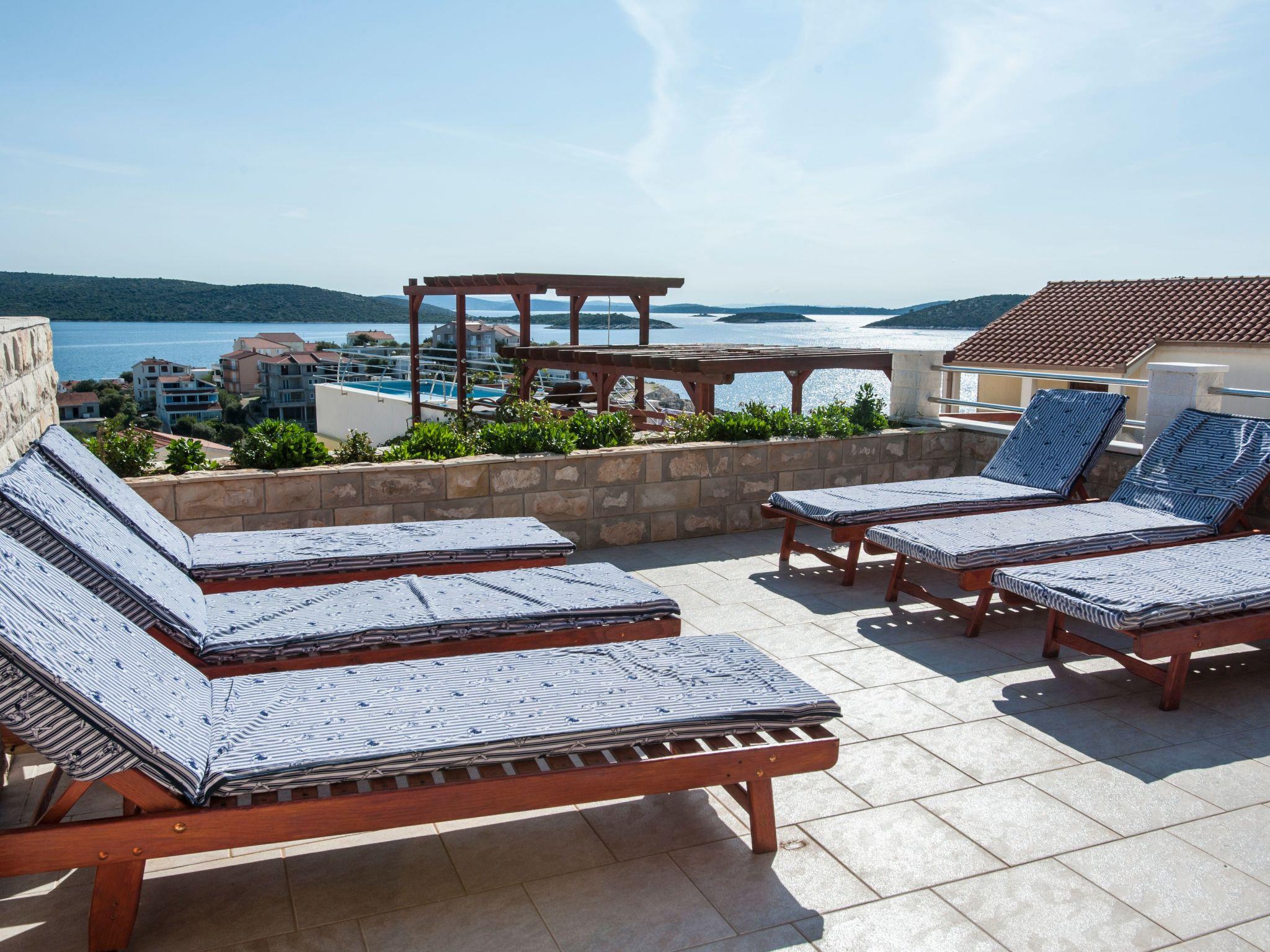 The outdoor area of Villa Katy is just as impressive as its interior. Enjoy exclusive access to a sparkling pool where you can bask in the sun or take a refreshing swim. The surrounding terrace offers a splendid sea view, providing the perfect backdrop for relaxation or dining al fresco. For the ultimate in leisure, the villa boasts a roof terrace where privacy and scenic vistas come together. Also, an outdoor grill is available for guests looking to showcase their barbecue skills.