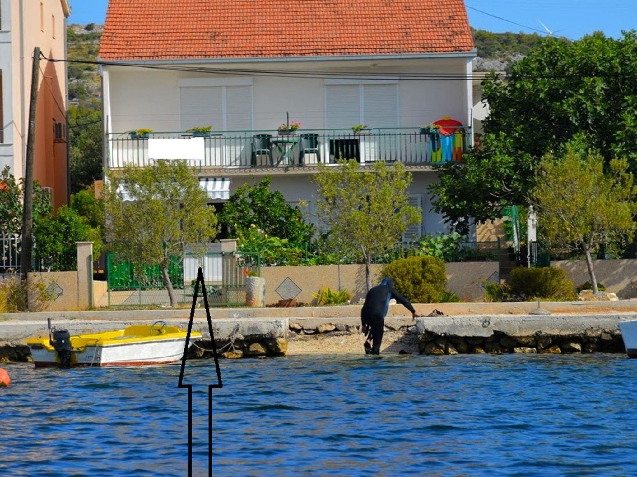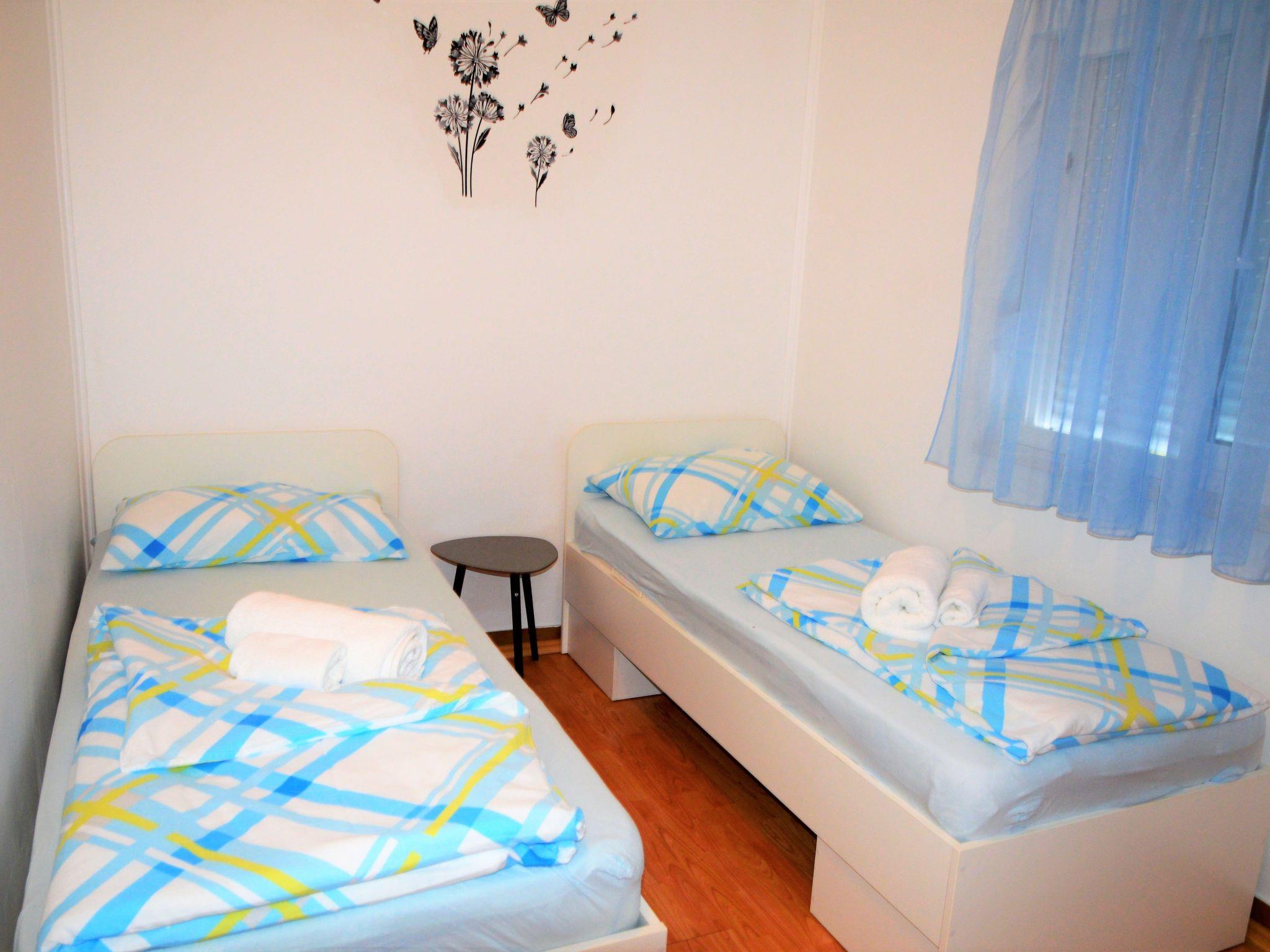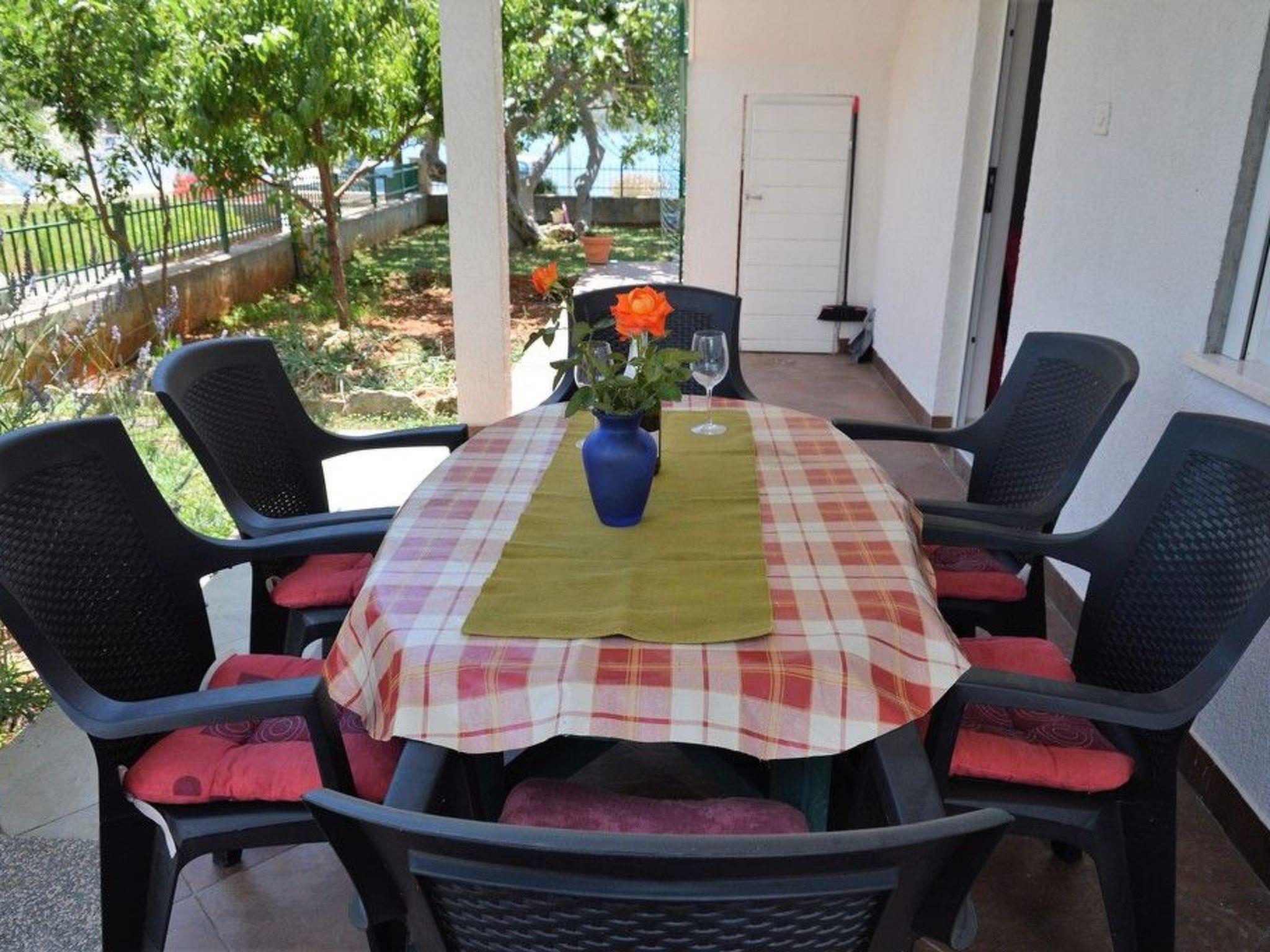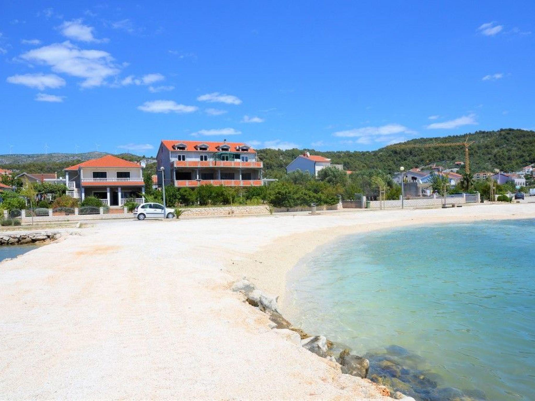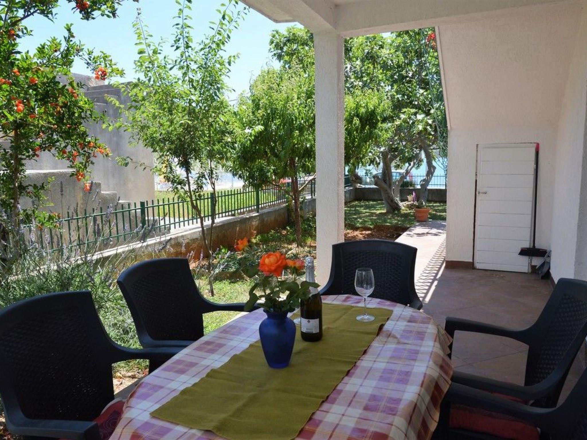 This house is situated directly on sea and only 50 m from nice pebble beach. It has 2 apartments on ground floor. A1 apartment consists of 2 bedrooms, kitchen with dining area and sofa, bathroom, terrace with grill, seating area and sea view. The apartment has air conditioning, internet, bed linen and towels and other things you might need. It's close to all services and children's playground is only 20 m from house. The apartment is great for family vacation.