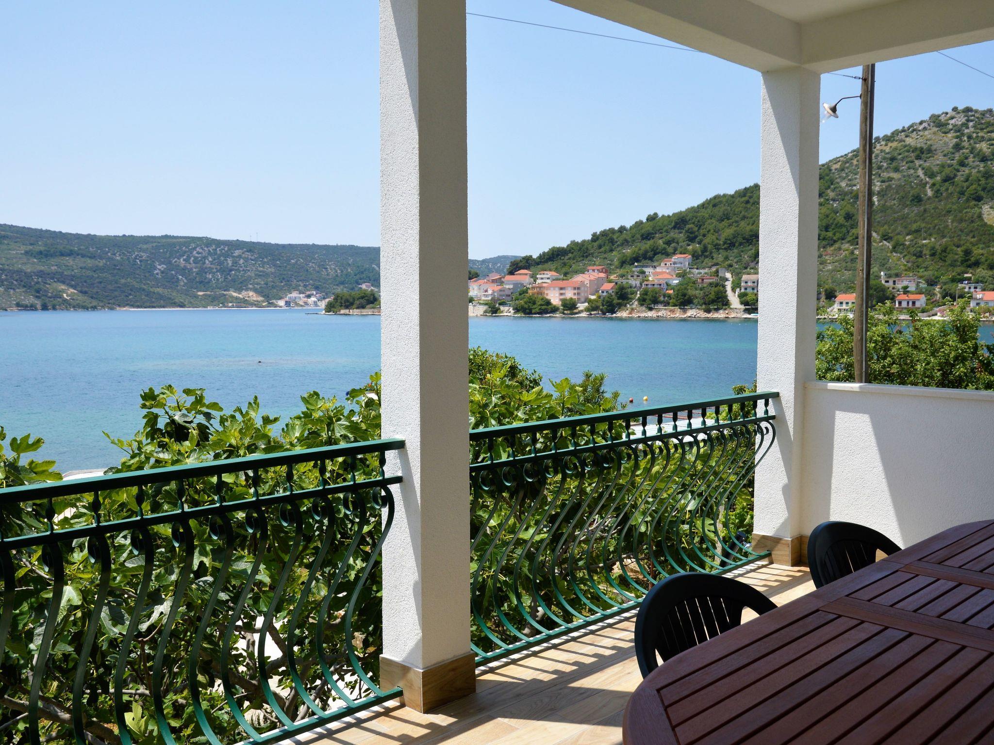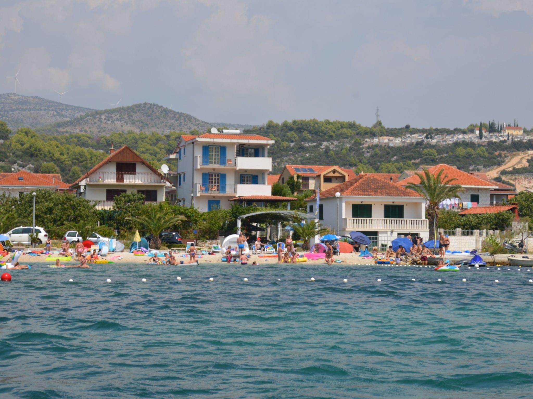 This apartment is situated on the first floor of a family house in small quiet place Poljica near Trogir. It's only 30 m from the sea and pebble beach with shallow waters suitable for children.It's 100 qm big and you'll have a whole house floor on your disposal. It consists of 4 bedrooms, 3 of them have exit to balconies with seating area and sea views, separate living room also with a balcony, kitchen with dining area and balcony, bathroom with bathtub and small toilet. There's a closed barbicue area, big shared yard with garden and parking lot for 2 cars.