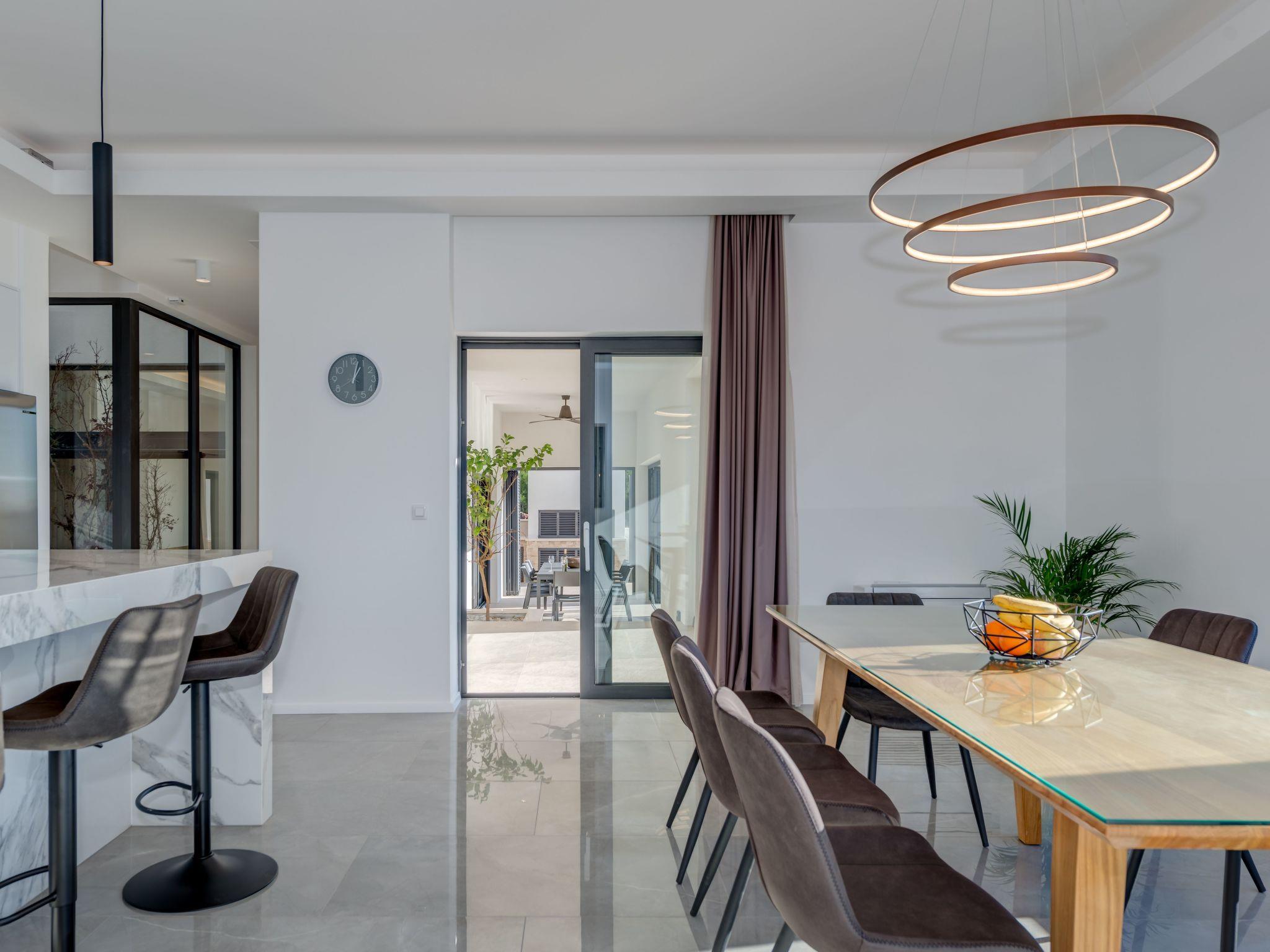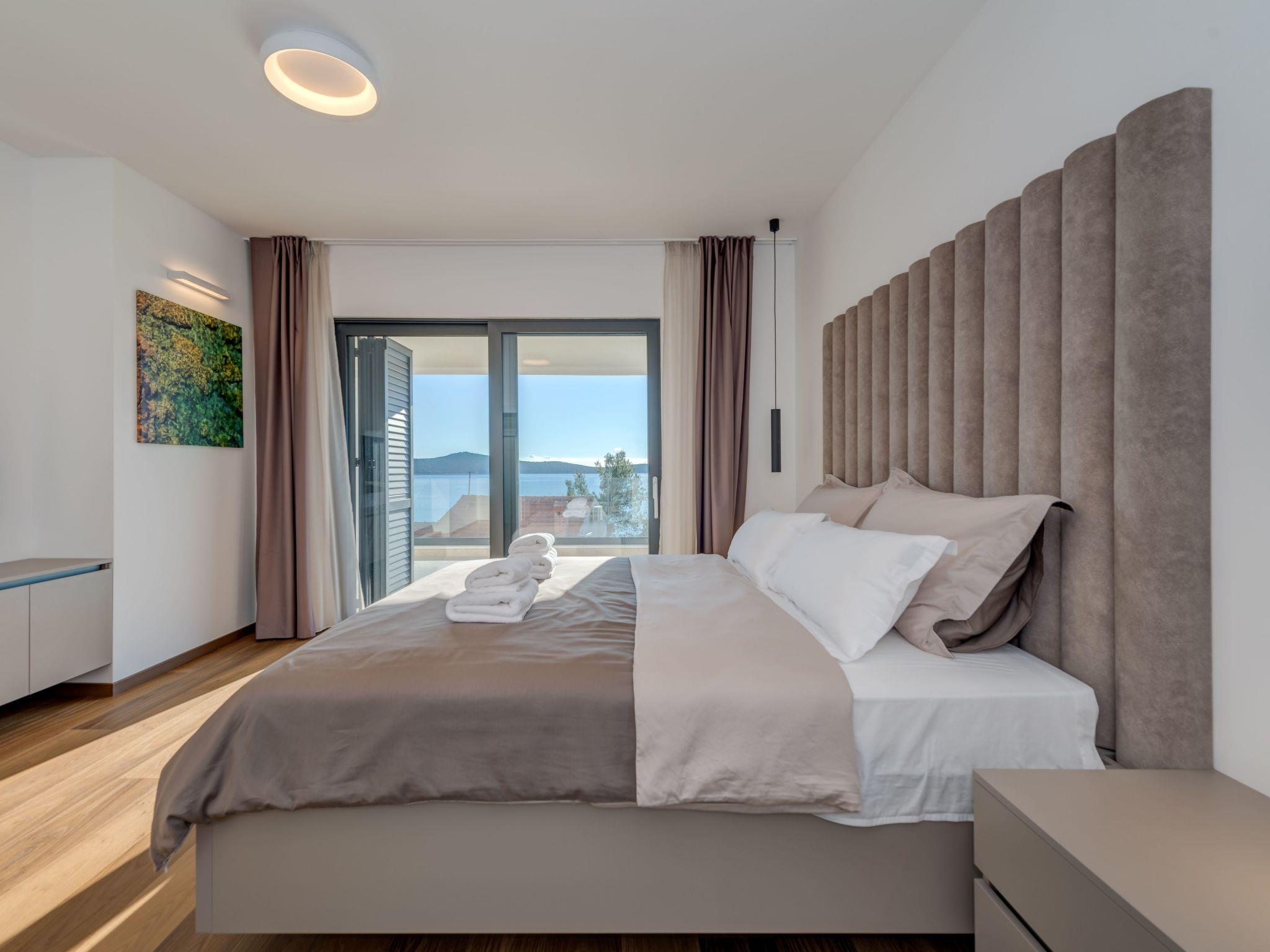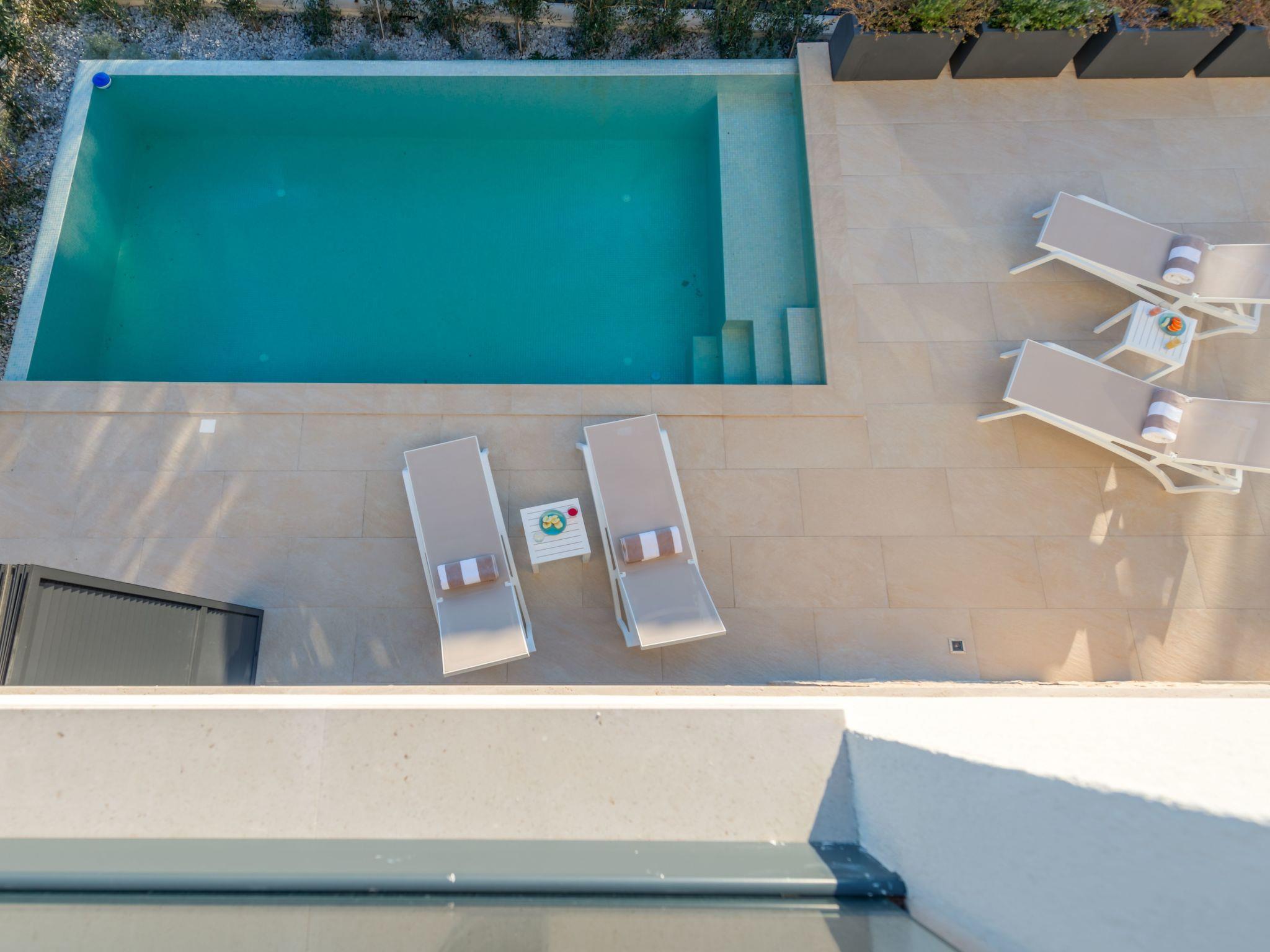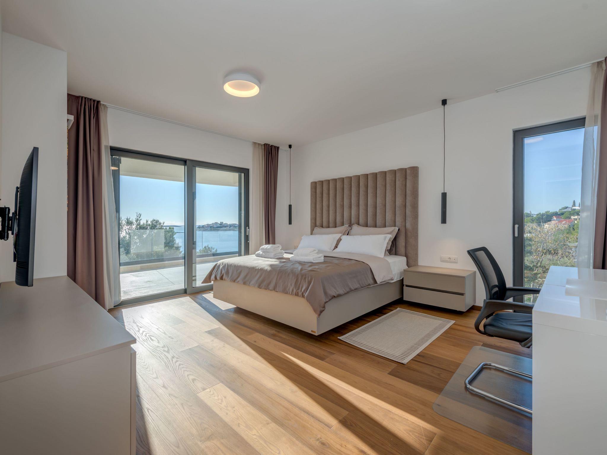 Sea Bliss Luxury Villa in Sevid is a prestigious holiday property built in an elevated position for the utmost enjoyment of the spectacular sea views and scenic Mediterranean landscape. This charming touristic area is 20 km & 45 km away from UNESCO-protected towns of Trogir and Split. Both destinations to the numerous historical and cultural sights and plenty of entertainment options or excursions to choose from. Below the villa, there is a private beach area with deck chairs and barbecue equipment. All rooms have a garden and sea view. The villa is a short drive from the center of Sevid or a 15-minute walk. Given the rurality of the area, we recommend our guests to come primarily by car or organize a car rental.