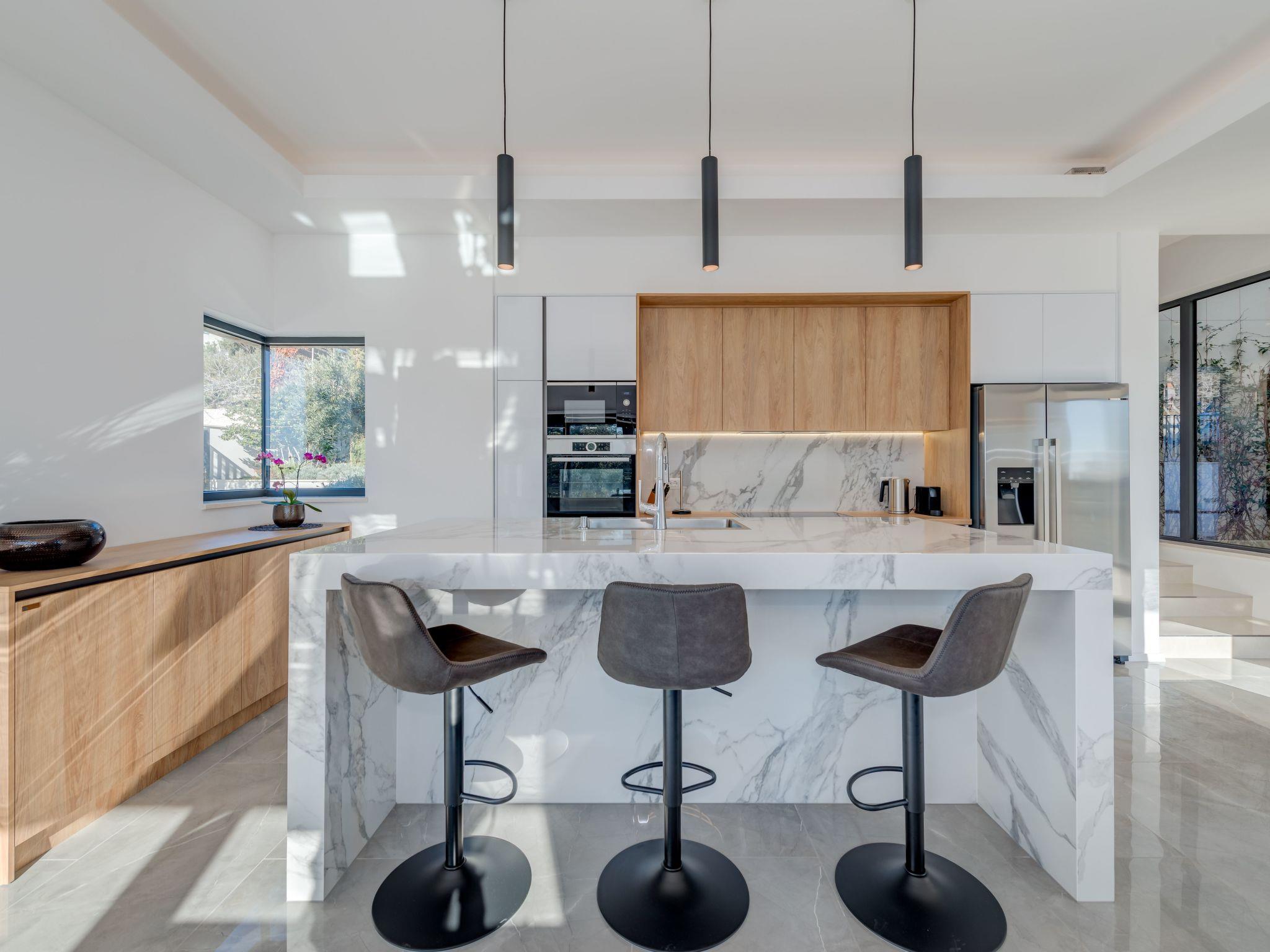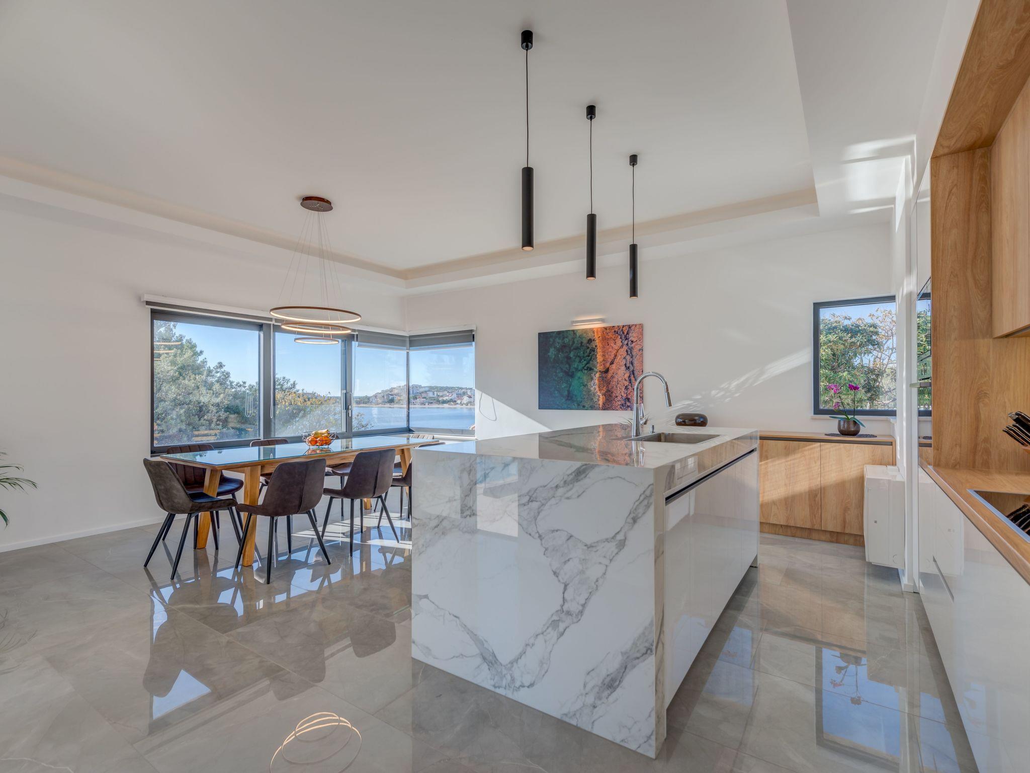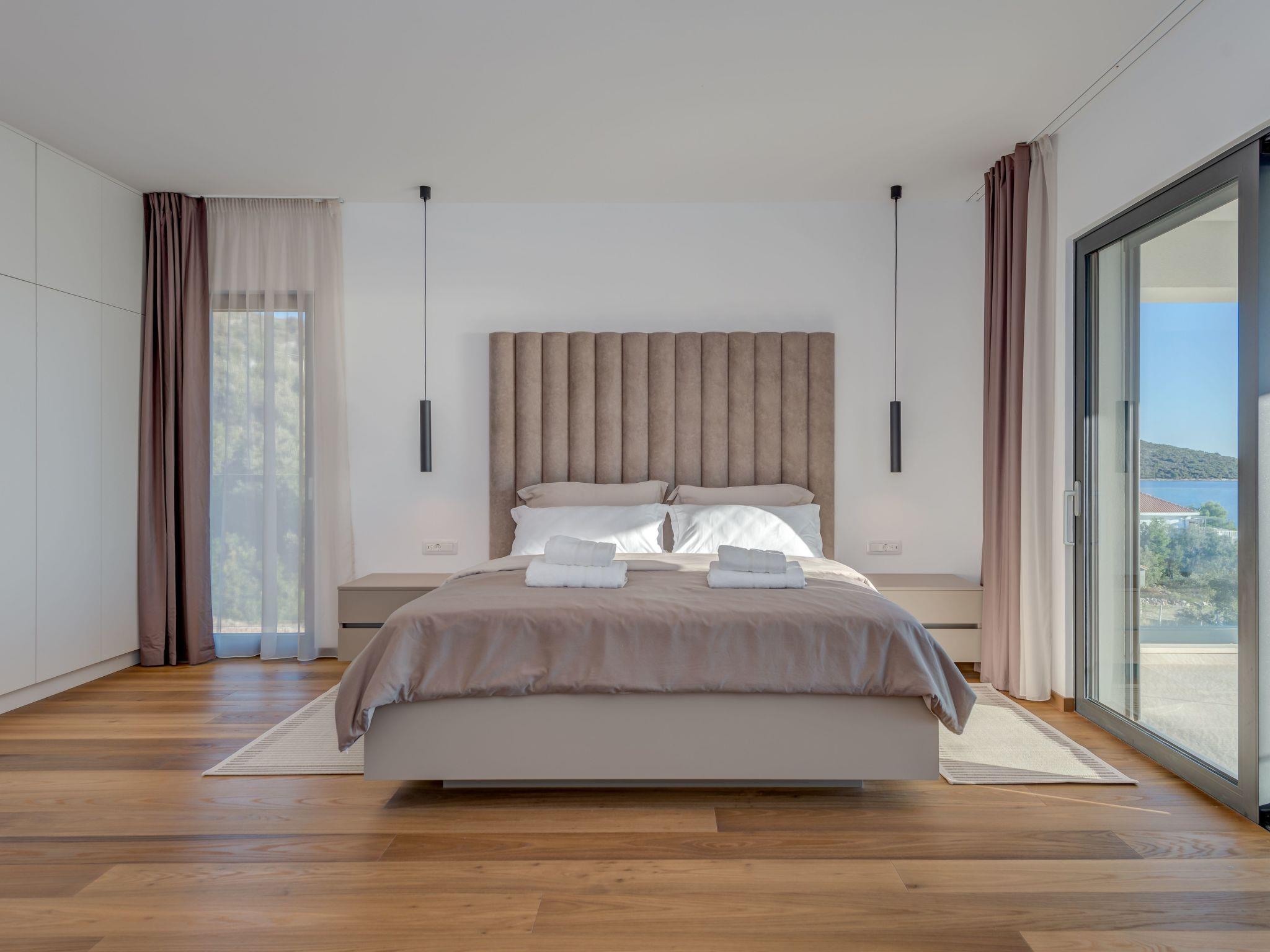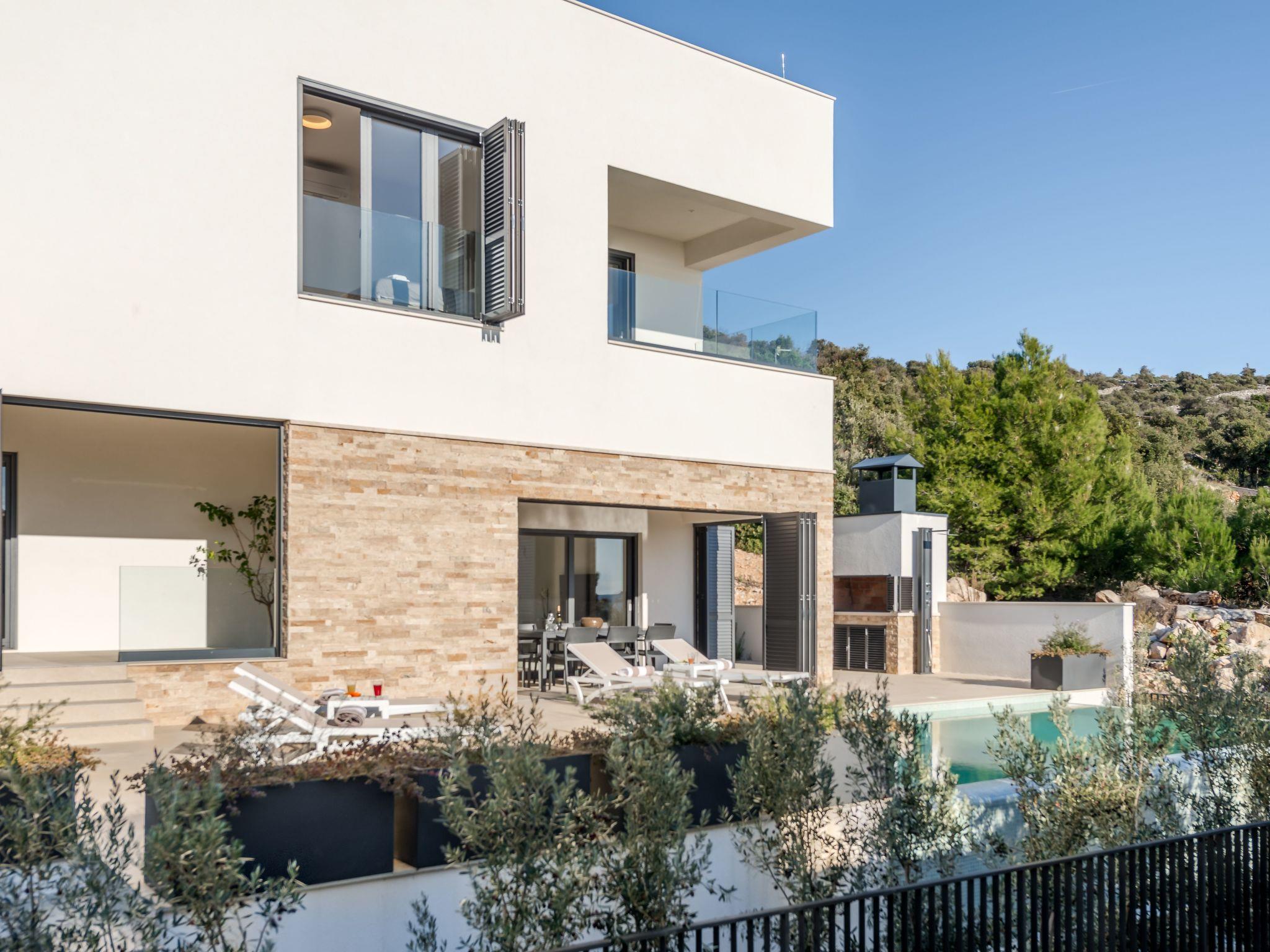 Sea Bliss Luxury Villa in Sevid is a prestigious holiday property built in an elevated position for the utmost enjoyment of the spectacular sea views and scenic Mediterranean landscape. This charming touristic area is 20 km & 45 km away from UNESCO-protected towns of Trogir and Split. Both destinations to the numerous historical and cultural sights and plenty of entertainment options or excursions to choose from. Below the villa, there is a private beach area with deck chairs and barbecue equipment. All rooms have a garden and sea view. The villa is a short drive from the center of Sevid or a 15-minute walk. Given the rurality of the area, we recommend our guests to come primarily by car or organize a car rental.