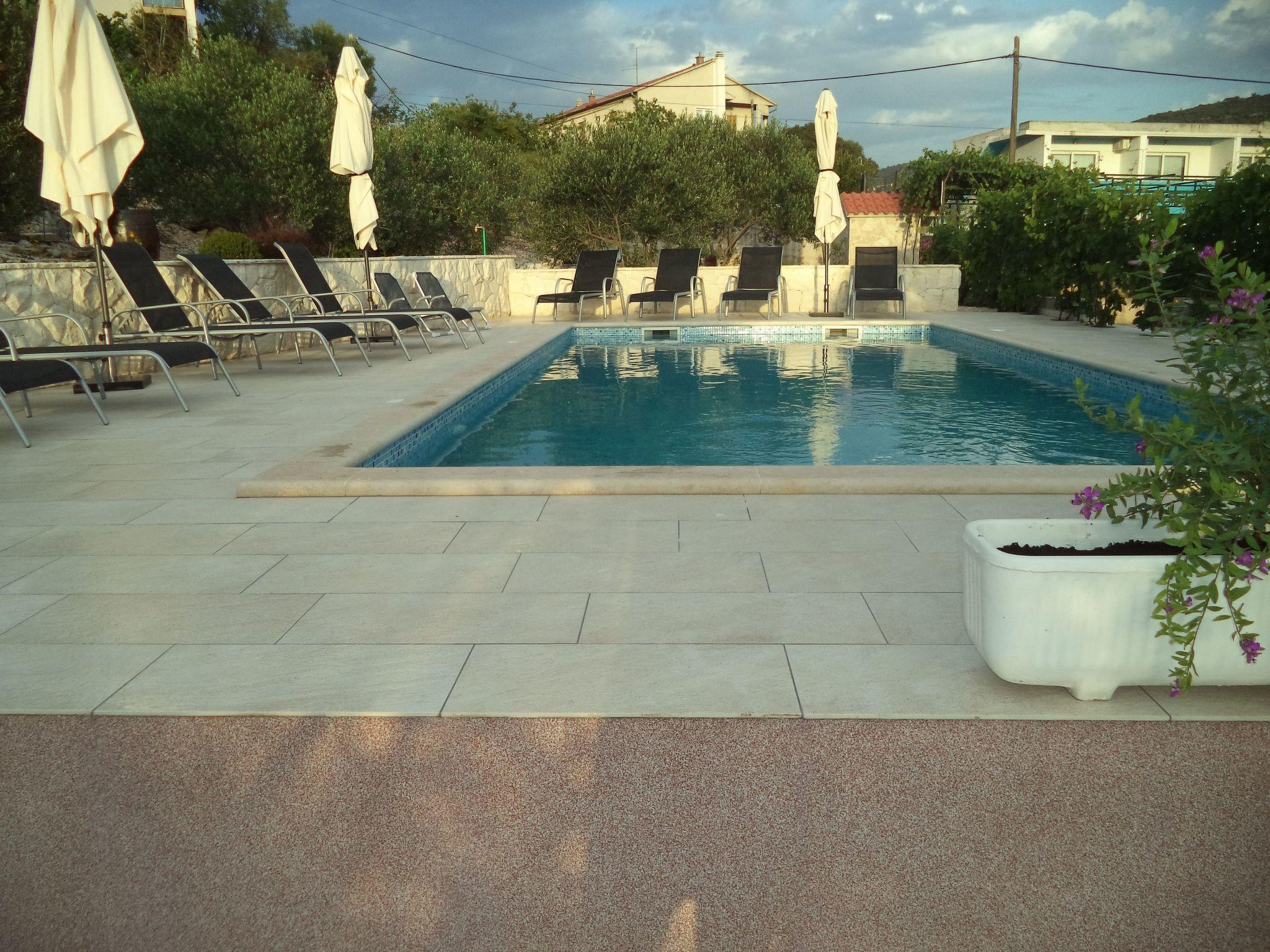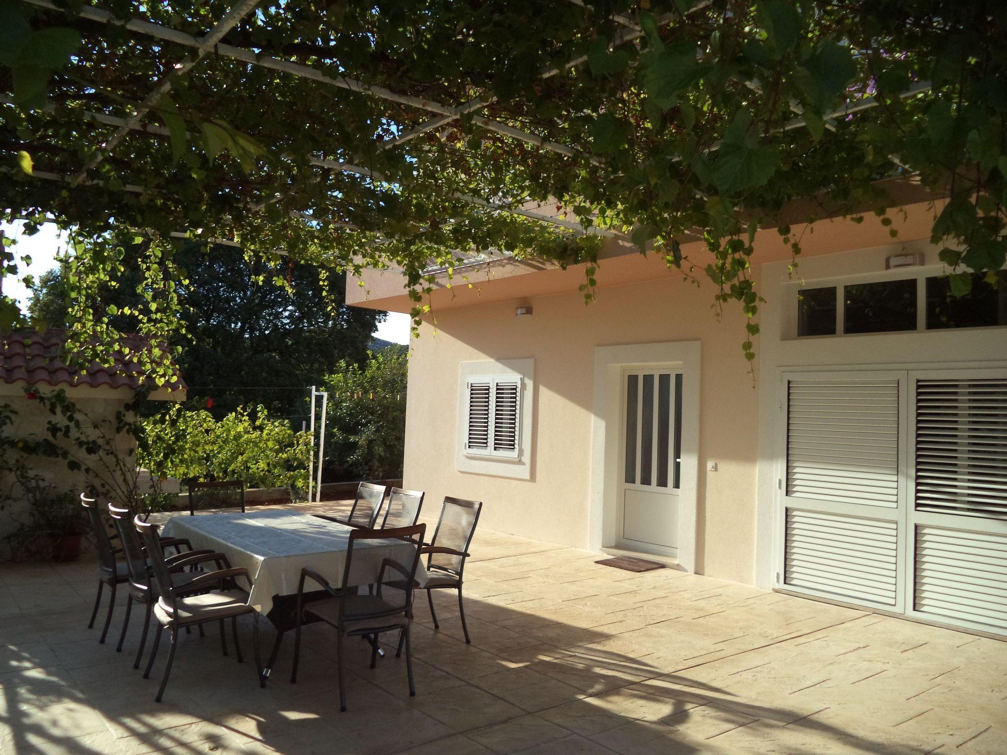 Holiday flat with shared pool, children's playground and barbecue area, close to the beach near the UNESCO cities of Split and Trogir