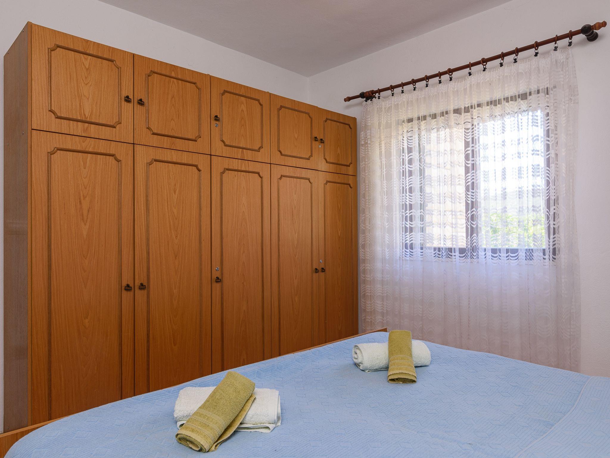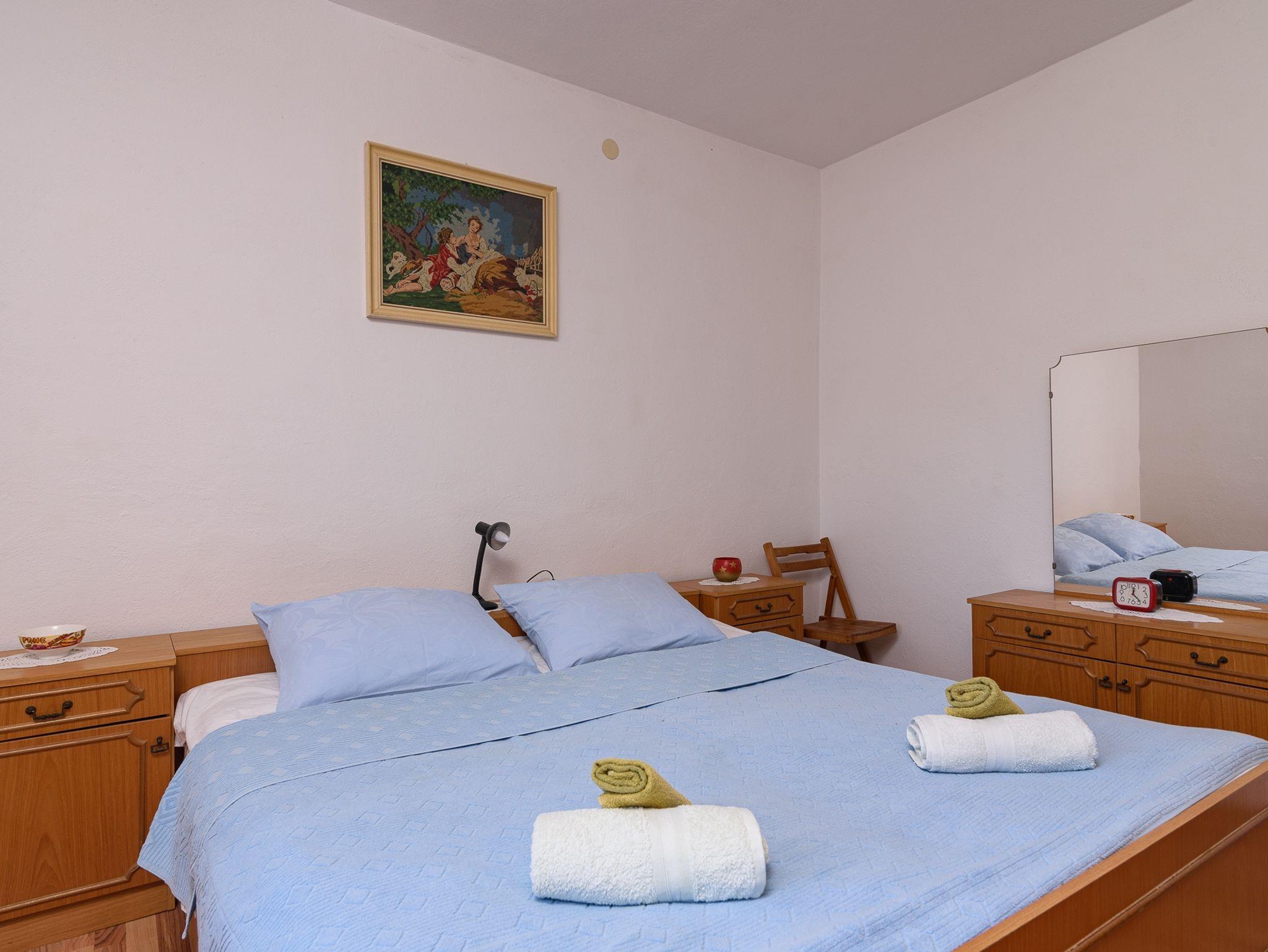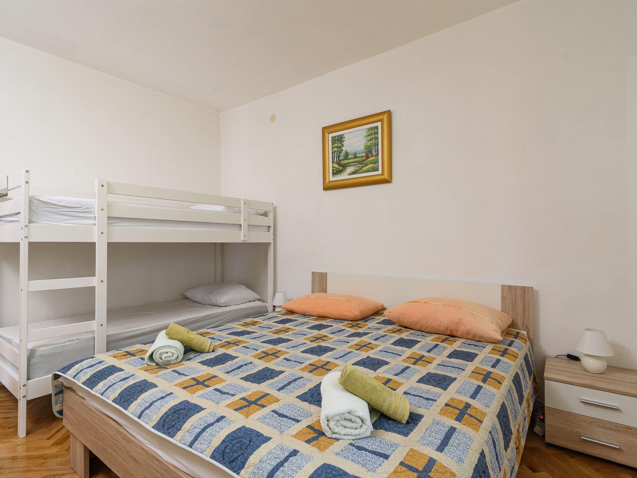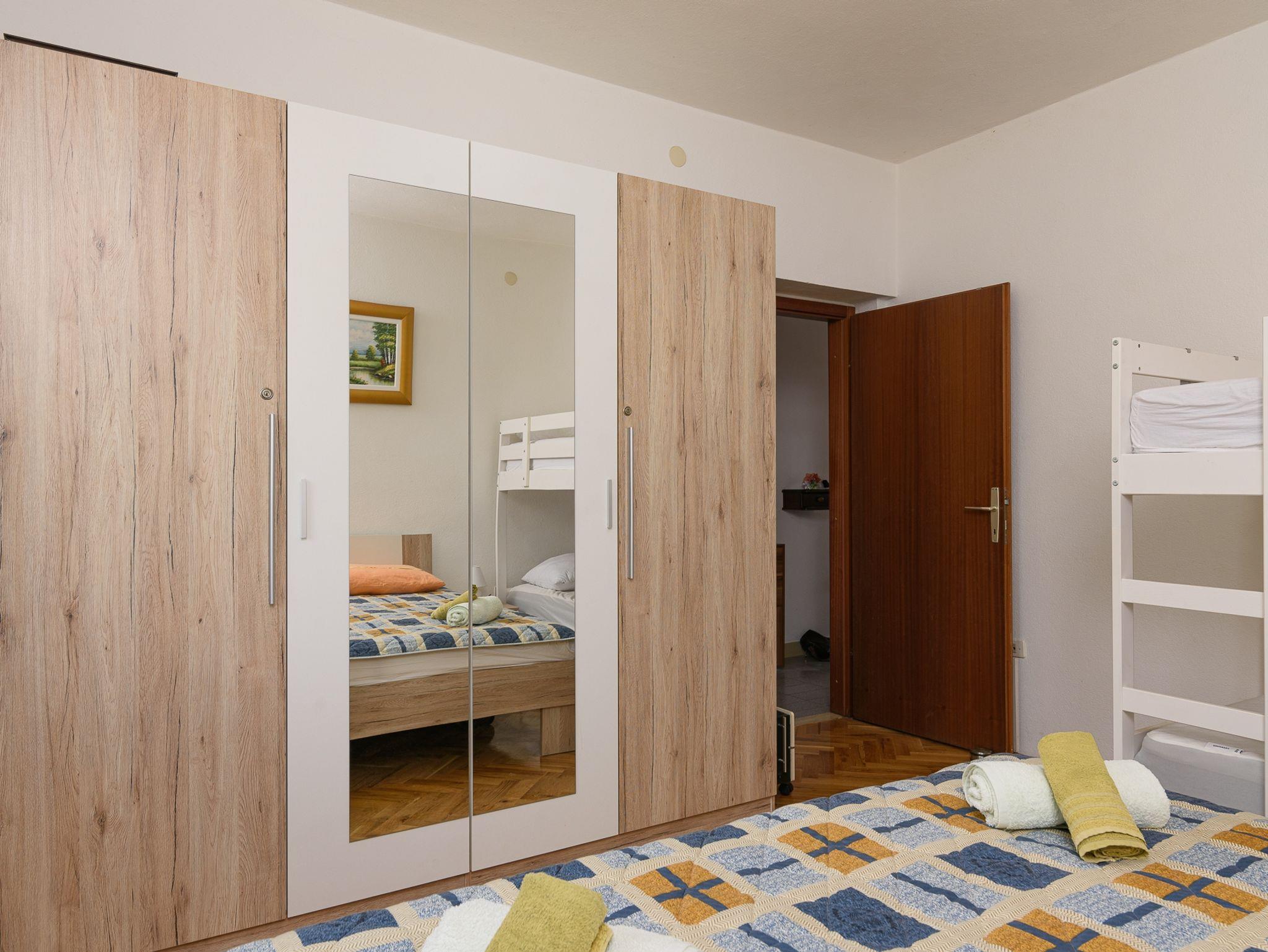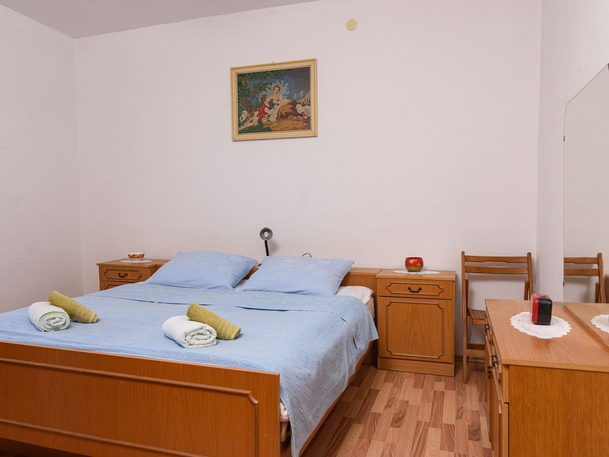 Ferienwohnung bietet Platz für 8 Gäste. Die Betten sind in Schlafzimmern, die es 3 gibt, innerhalb einer Gesamtfläche von 75m2, angeordnet. Die Gäste haben eine eigene Terrasse zur Verfügung, auf der sie in warmen Sommernächten genießen können. Das Apartment bietet Meerblick. Für vollen Genuss und Entspannung gibt es einen privaten Grill für Gäste dieser Unterkunft. IM PREIS INBEGRIFFEN: Kurtaxe, Endreinigung, Klimatisierung, Parkplatz, Internet, Bügeleisen, Bügelbrett, Föhn. Die Verfügbarkeit zusätzlicher Dienstleistungen in Ihrem reservierten Termin und die Preise derselben (falls nicht aufgeführt) müssen im Voraus überprüft werden. Zusätzliche Dienstleistungen die in der Zahlungsaufforderung nicht aufgeführt sind werden direkt beim Vermieter bezahlt, angenommen der Gast nutzt auch diese.