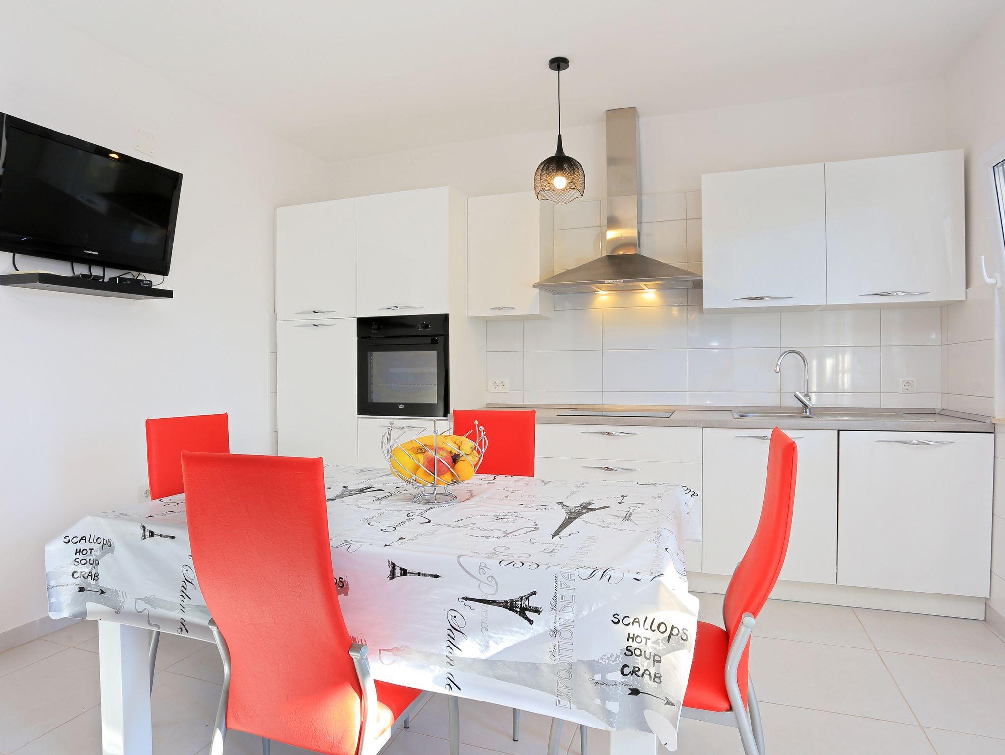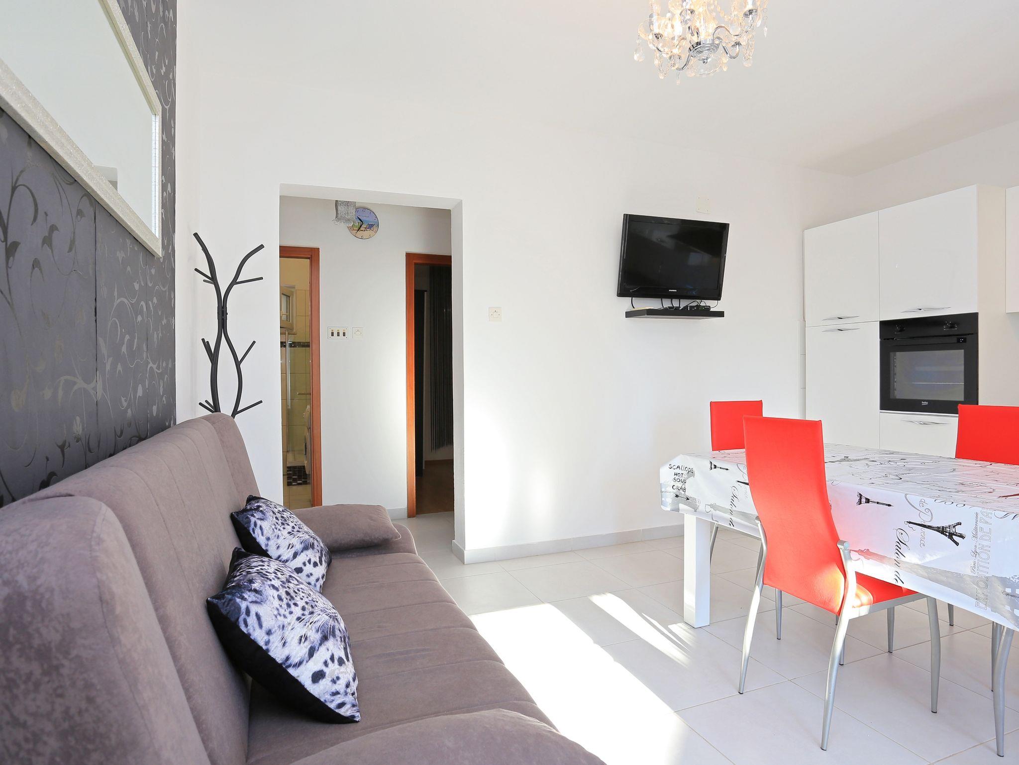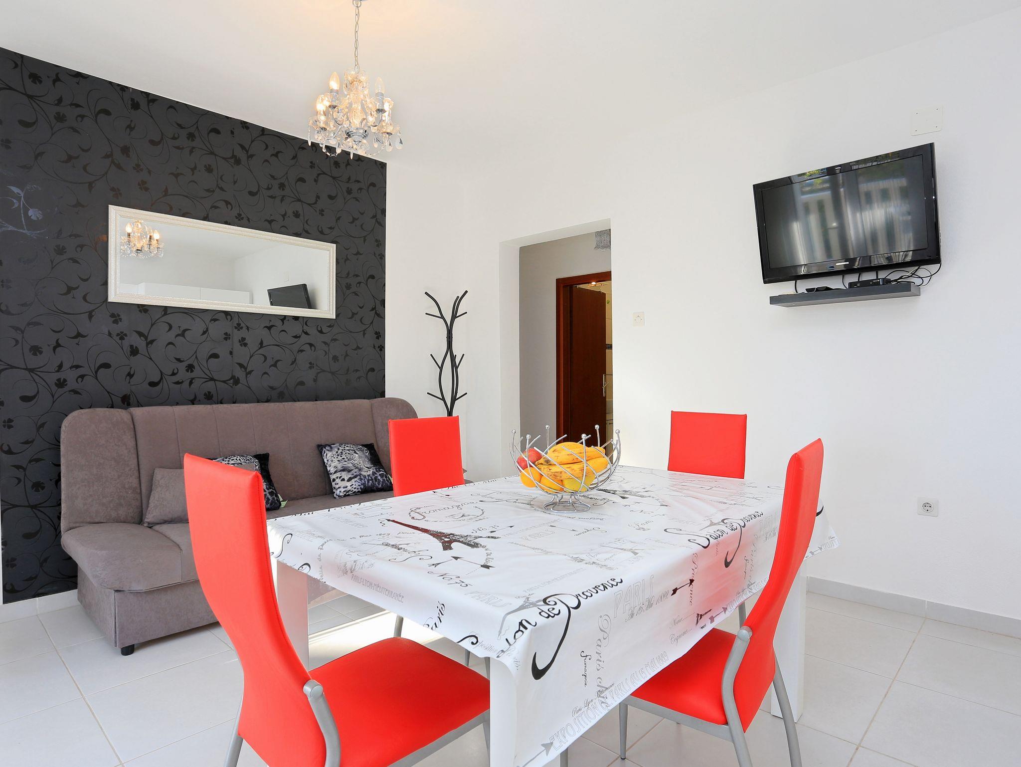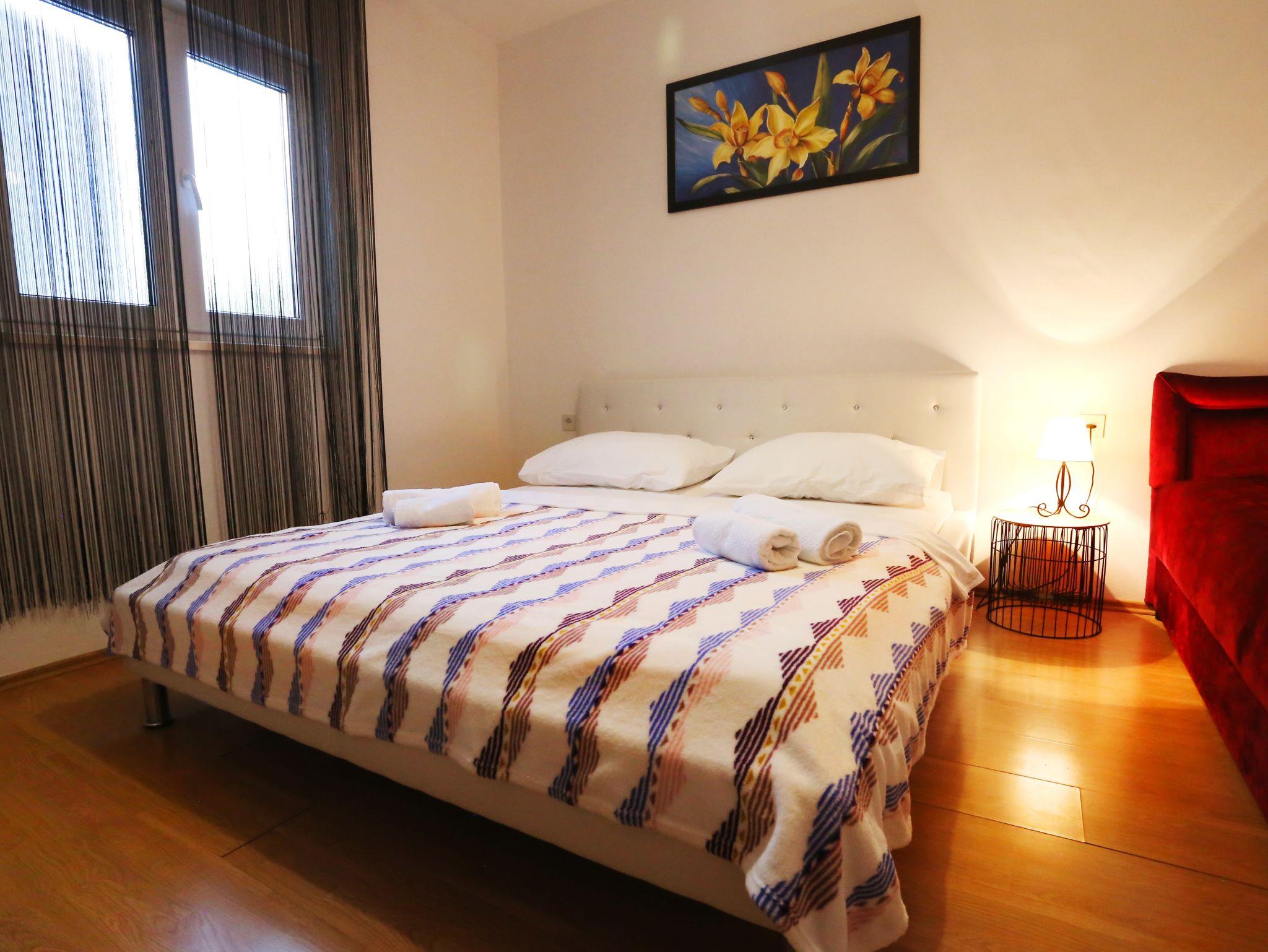 Ferienwohnung bietet Platz für 5 Gäste. Die Betten sind in Schlafzimmern, die es 2 gibt, innerhalb einer Gesamtfläche von 50m2, angeordnet. Die Gäste haben eine eigene Terrasse zur Verfügung, auf der sie in warmen Sommernächten genießen können. Das Apartment bietet Meerblick. Es ist erlaubt, Speisen auf dem Gemeinschafts-Grill vorzubereiten. IM PREIS INBEGRIFFEN: Kurtaxe, Endreinigung, Klimatisierung, Parkplatz, Internet, Bootsanlegeplatz, Kinderbett. Die Verfügbarkeit zusätzlicher Dienstleistungen in Ihrem reservierten Termin und die Preise derselben (falls nicht aufgeführt) müssen im Voraus überprüft werden. Zusätzliche Dienstleistungen die in der Zahlungsaufforderung nicht aufgeführt sind werden direkt beim Vermieter bezahlt, angenommen der Gast nutzt auch diese.
