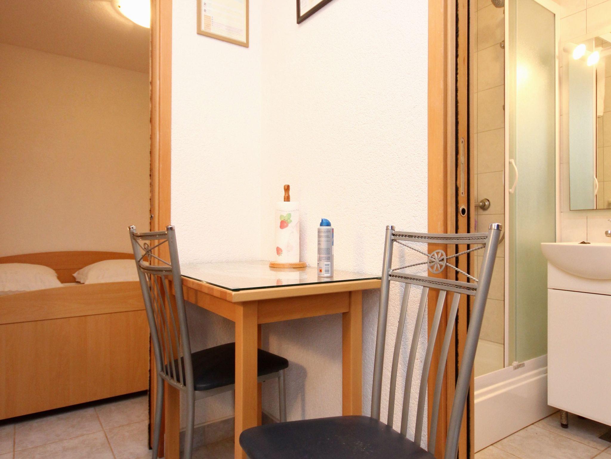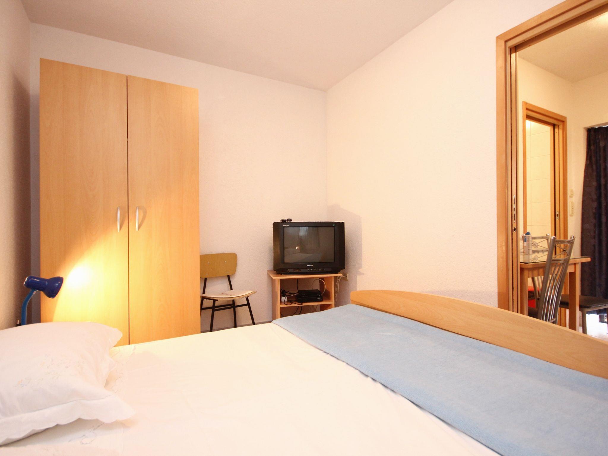 Studio bietet Platz für 2 Gäste. Die Betten sind in Schlafzimmern, die es 1 gibt, innerhalb einer Gesamtfläche von 14m2, angeordnet. Die Gäste haben eine eigene Terrasse zur Verfügung, auf der sie in warmen Sommernächten genießen können. Das Studio-Apartment bietet Meerblick. Es ist erlaubt, Speisen auf dem Gemeinschafts-Grill vorzubereiten. Durch die Terrasse der gebuchten Unterkunftseinheit gehen auch andere Gäste oder Vermieter. IM PREIS INBEGRIFFEN: Kurtaxe, Endreinigung, Klimatisierung, Parkplatz, Internet, Kinderbett, Bügeleisen, Bügelbrett, Föhn. VERBINDLICHE ZUSÄTZLICHE KOSTEN: Aufzahlung für Kurzaufenthalte (prozentualer Zuschlag pro Nächtigungsanzahl: 30% - 1, 20% - 2, 10% - 3). UNVERBINDLICHE ZUSÄTZLICHE KOSTEN: Wäschewaschen (5,00 € Waschen). Die Verfügbarkeit zusätzlicher Dienstleistungen in Ihrem reservierten Termin und die Preise derselben (falls nicht aufgeführt) müssen im Voraus überprüft werden. Zusätzliche Dienstleistungen die in der Zahlungsaufforderung nicht aufgeführt sind werden direkt beim Vermieter bezahlt, angenommen der Gast nutzt auch diese.