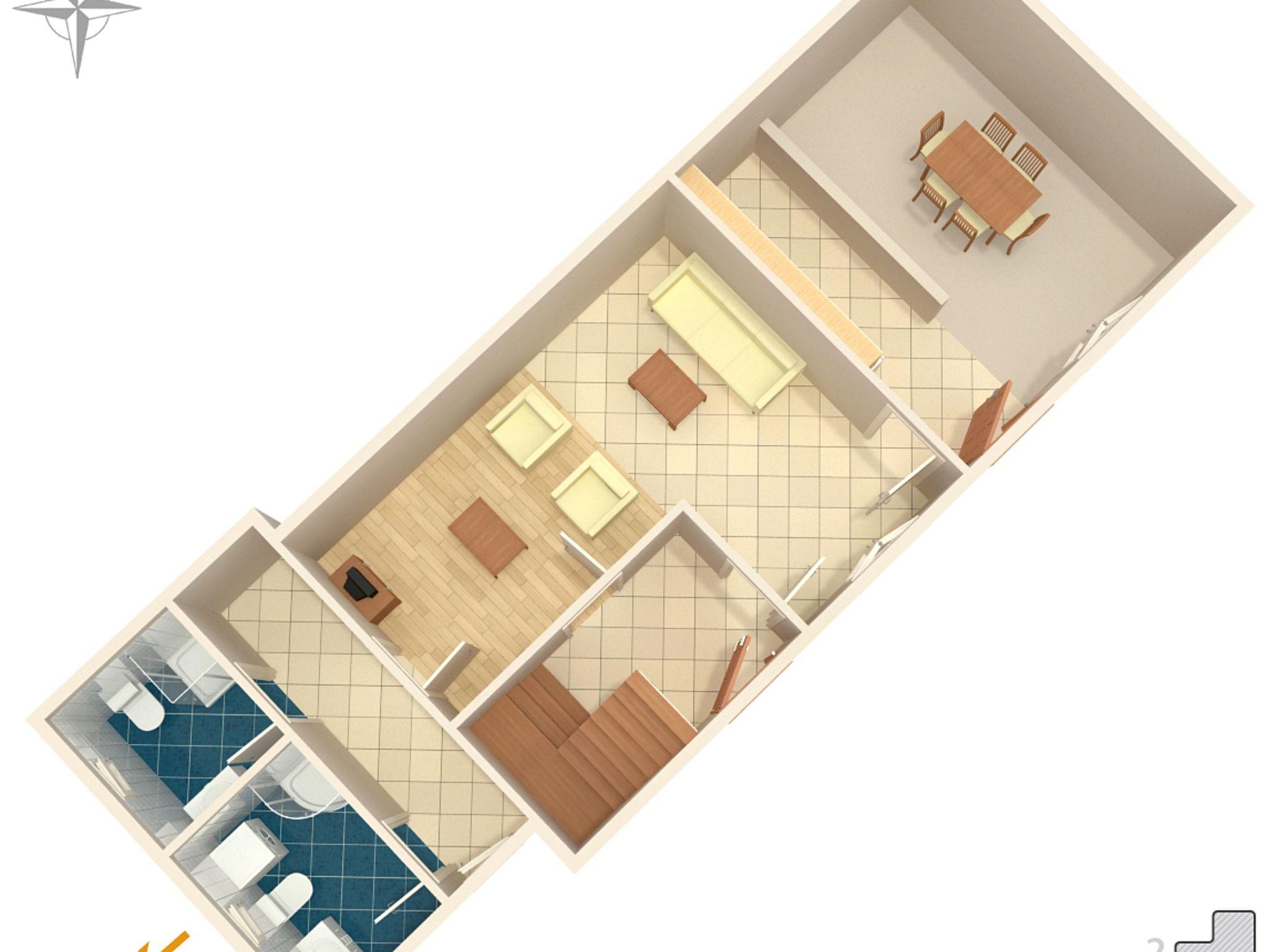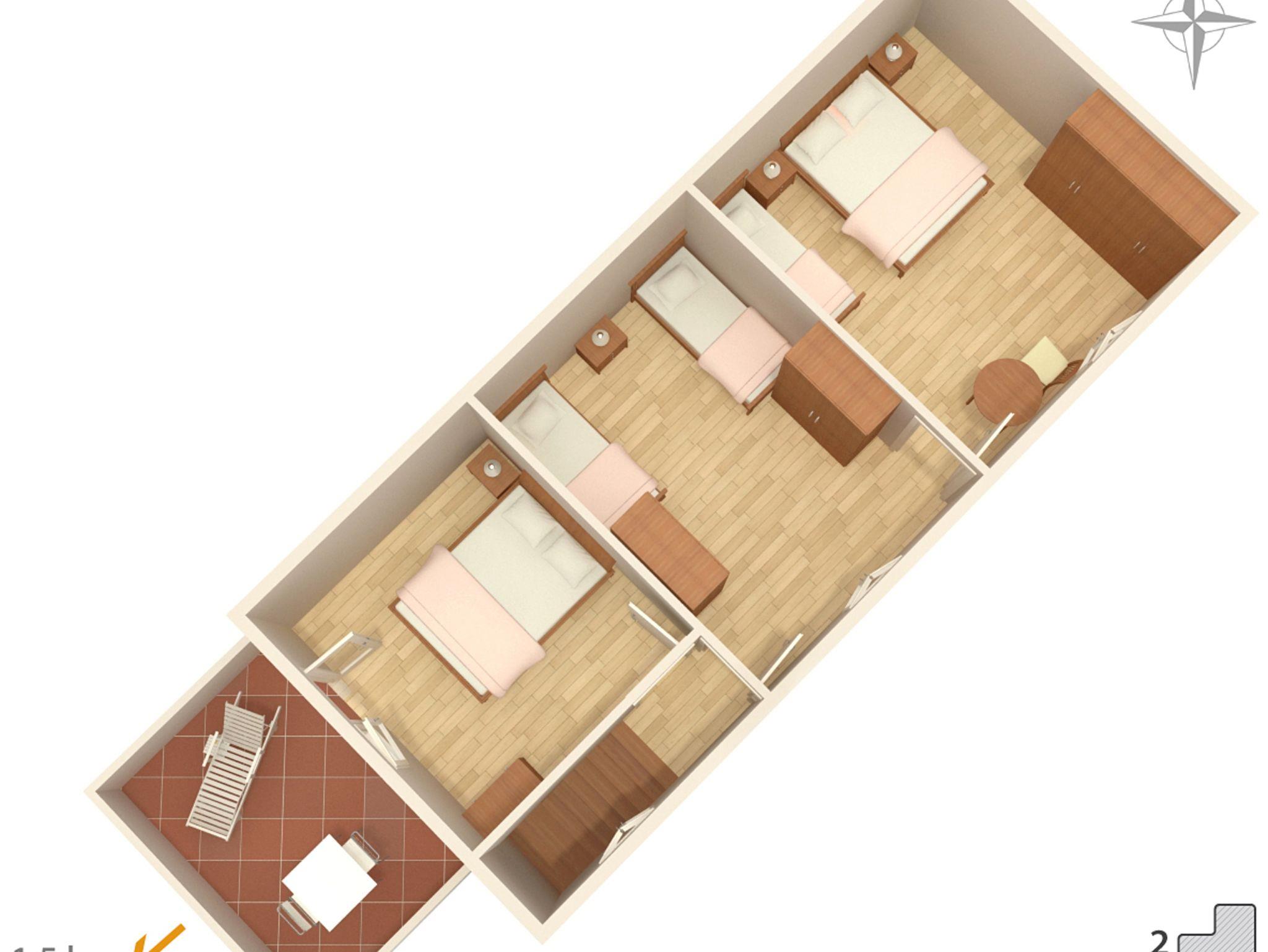 Haus bietet Platz für 6 Gäste. Die Betten sind in Schlafzimmern, die es 3 gibt, innerhalb einer Gesamtfläche von 98m2, angeordnet. Die Gäste haben eine eigene Terrasse zur Verfügung, auf der sie in warmen Sommernächten genießen können. Für vollen Genuss und Entspannung gibt es einen privaten Grill für Gäste dieser Unterkunft. In der Unterkunftseinheit besteht die Möglichkeit des Mitbringens von Haustieren gegen Aufpreis. Durch das Schlafzimmer der gebuchten Unterkunftseinheit geht man in die andere Räume der Einheit. IM PREIS INBEGRIFFEN: Kurtaxe, Endreinigung, Klimatisierung, Garage, Internet, Bügeleisen, Bügelbrett, Sonnenschirm. VERBINDLICHE ZUSÄTZLICHE KOSTEN: Aufzahlung für Kurzaufenthalte (prozentualer Zuschlag pro Nächtigungsanzahl: 30% - 1, 20% - 2, 10% - 3). UNVERBINDLICHE ZUSÄTZLICHE KOSTEN: Haustiere (9,00 € pro Nacht). Die Verfügbarkeit zusätzlicher Dienstleistungen in Ihrem reservierten Termin und die Preise derselben (falls nicht aufgeführt) müssen im Voraus überprüft werden. Zusätzliche Dienstleistungen die in der Zahlungsaufforderung nicht aufgeführt sind werden direkt beim Vermieter bezahlt, angenommen der Gast nutzt auch diese.