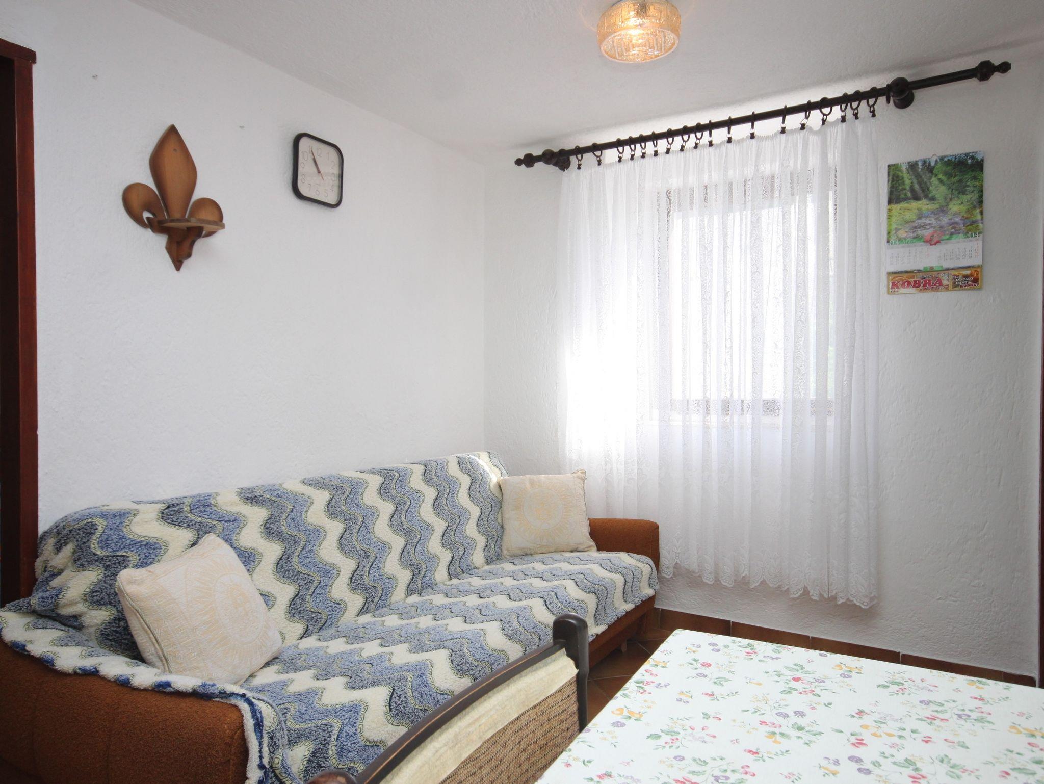 Ferienwohnung bietet Platz für 3 Gäste. Die Betten sind in Schlafzimmern, die es 1 gibt, und in Wohnzimmer, innerhalb einer Gesamtfläche von 29m2, angeordnet. Die Gäste haben eine eigene Terrasse zur Verfügung, auf der sie in warmen Sommernächten genießen können. Es ist erlaubt, Speisen auf dem Gemeinschafts-Grill vorzubereiten. Durch die Terrasse der gebuchten Unterkunftseinheit gehen auch andere Gäste oder Vermieter. IM PREIS INBEGRIFFEN: Kurtaxe, Endreinigung, Internet, Wäschewaschen, Bügeleisen, Bügelbrett, Föhn. VERBINDLICHE ZUSÄTZLICHE KOSTEN: Aufzahlung für Kurzaufenthalte (prozentualer Zuschlag pro Nächtigungsanzahl: 30% - 1, 20% - 2, 10% - 3). Die Verfügbarkeit zusätzlicher Dienstleistungen in Ihrem reservierten Termin und die Preise derselben (falls nicht aufgeführt) müssen im Voraus überprüft werden. Zusätzliche Dienstleistungen die in der Zahlungsaufforderung nicht aufgeführt sind werden direkt beim Vermieter bezahlt, angenommen der Gast nutzt auch diese.