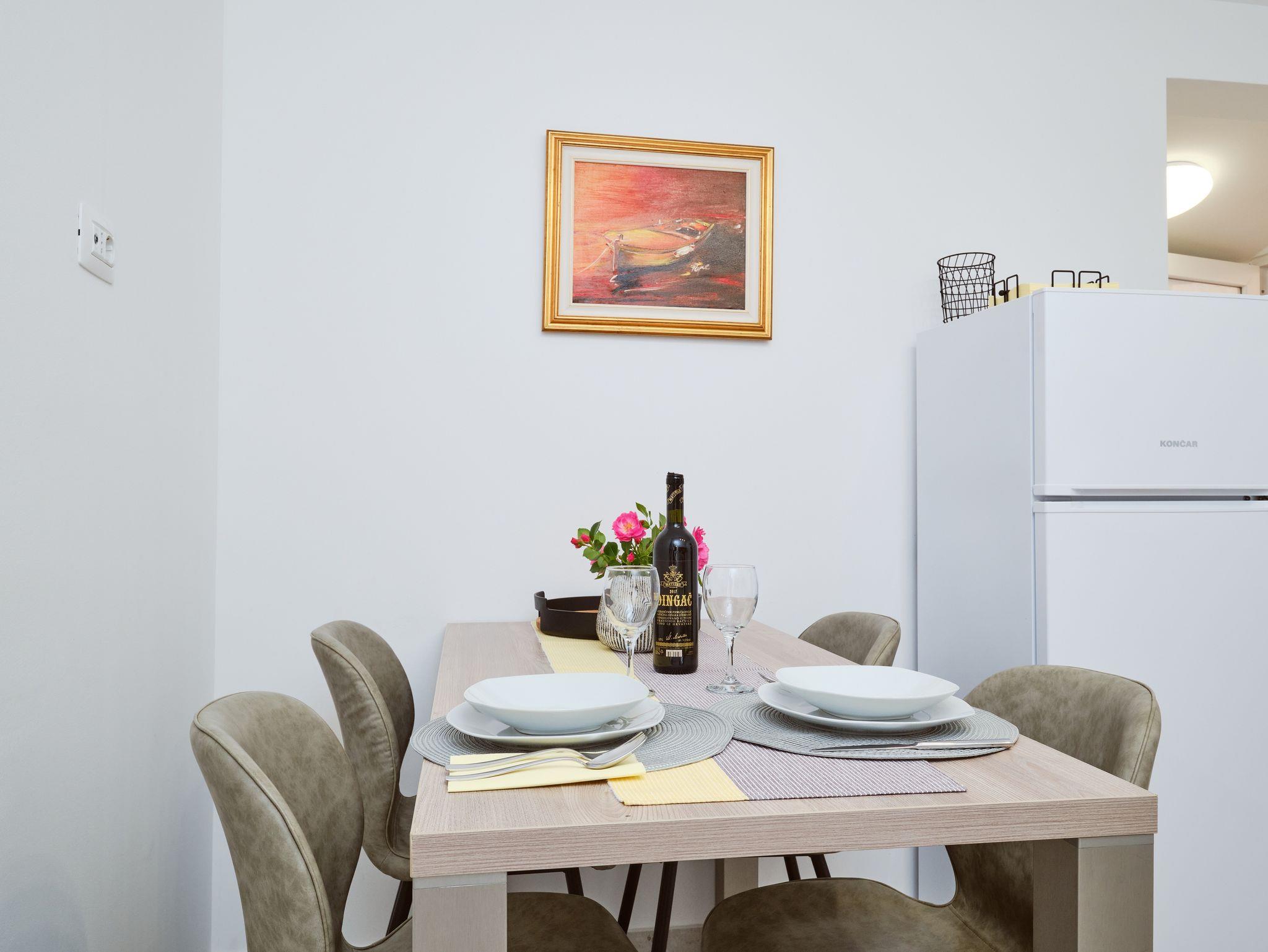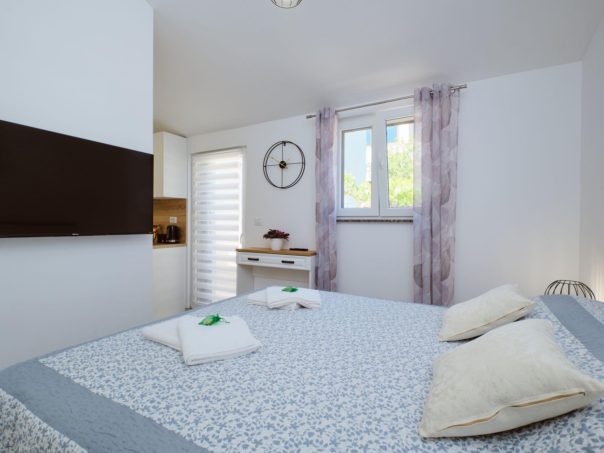 Studio bietet Platz für 2 Gäste. Die Betten sind in Schlafzimmern, die es 1 gibt, innerhalb einer Gesamtfläche von 28m2, angeordnet. Die reservierte Unterkunftseinheit verfügt über einen gemeinsame Terrasse. IM PREIS INBEGRIFFEN: Kurtaxe, Endreinigung, Klimatisierung, Parkplatz, Internet, Föhn. VERBINDLICHE ZUSÄTZLICHE KOSTEN: Aufzahlung für Kurzaufenthalte (prozentualer Zuschlag pro Nächtigungsanzahl: 30% - 1, 20% - 2, 10% - 3). Die Verfügbarkeit zusätzlicher Dienstleistungen in Ihrem reservierten Termin und die Preise derselben (falls nicht aufgeführt) müssen im Voraus überprüft werden. Zusätzliche Dienstleistungen die in der Zahlungsaufforderung nicht aufgeführt sind werden direkt beim Vermieter bezahlt, angenommen der Gast nutzt auch diese. Ermäßigung auf den Grundpreis: Gratistag 14=13 (bei einem Aufenthalt von 14 Tagen oder mehr erhalten Sie einen Gratistag für den Aufenthalt bis 31.12.26).