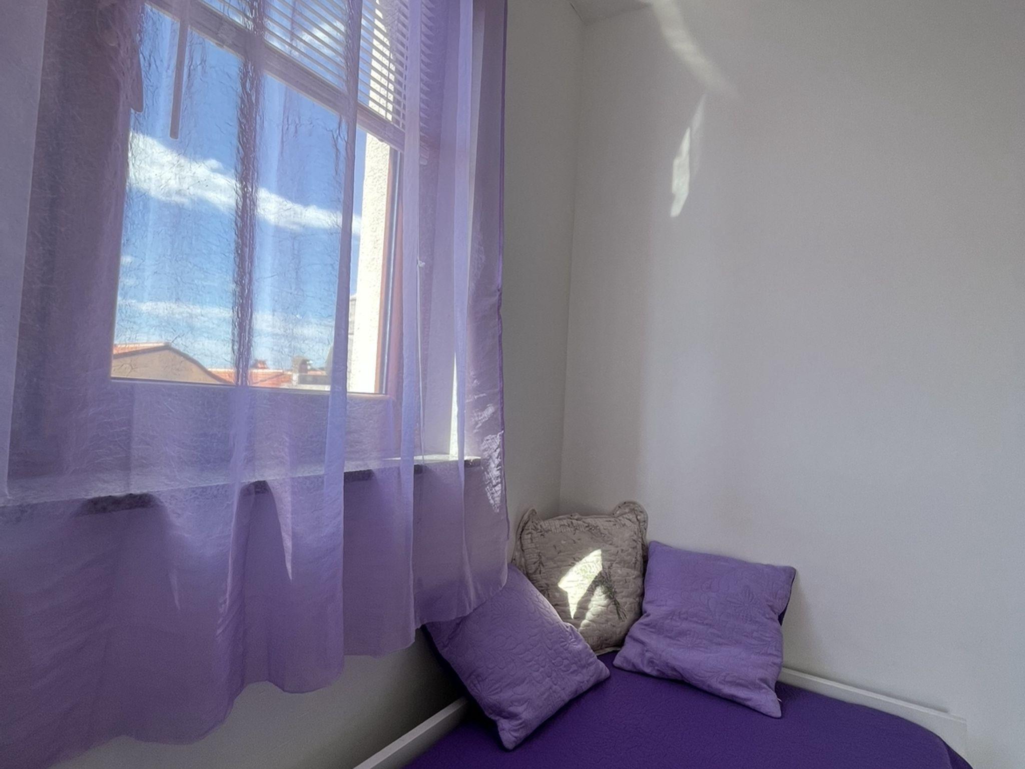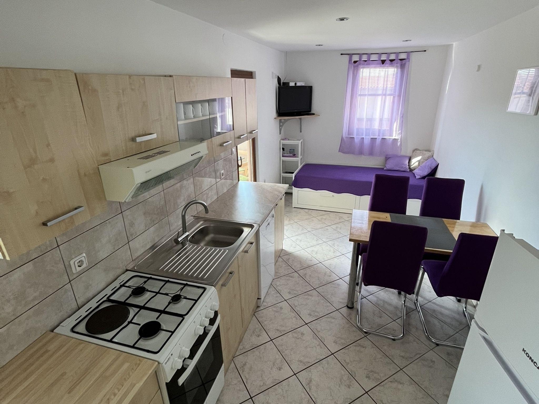 Studio bietet Platz für 4 Gäste. Die Betten sind in Schlafzimmern, die es 1 gibt, und in Wohnzimmer, innerhalb einer Gesamtfläche von 40m2, angeordnet. Die Gäste haben einen eigenen Balkon zur Verfügung, auf der sie in warmen Sommernächten genießen können. Das Studio-Apartment bietet Meerblick. Es ist erlaubt, Speisen auf dem Gemeinschafts-Grill vorzubereiten. In der Unterkunftseinheit besteht die Möglichkeit des Mitbringens von Haustieren gegen Aufpreis. IM PREIS INBEGRIFFEN: Kurtaxe, Endreinigung, Klimatisierung, Internet, Kinderbett, Zusatzbett, Bügeleisen, Föhn. VERBINDLICHE ZUSÄTZLICHE KOSTEN: Aufzahlung für Kurzaufenthalte (prozentualer Zuschlag pro Nächtigungsanzahl: 30% - 1, 20% - 2, 10% - 3). UNVERBINDLICHE ZUSÄTZLICHE KOSTEN: Haustiere (10,00 € pro Nacht). Die Verfügbarkeit zusätzlicher Dienstleistungen in Ihrem reservierten Termin und die Preise derselben (falls nicht aufgeführt) müssen im Voraus überprüft werden. Zusätzliche Dienstleistungen die in der Zahlungsaufforderung nicht aufgeführt sind werden direkt beim Vermieter bezahlt, angenommen der Gast nutzt auch diese.