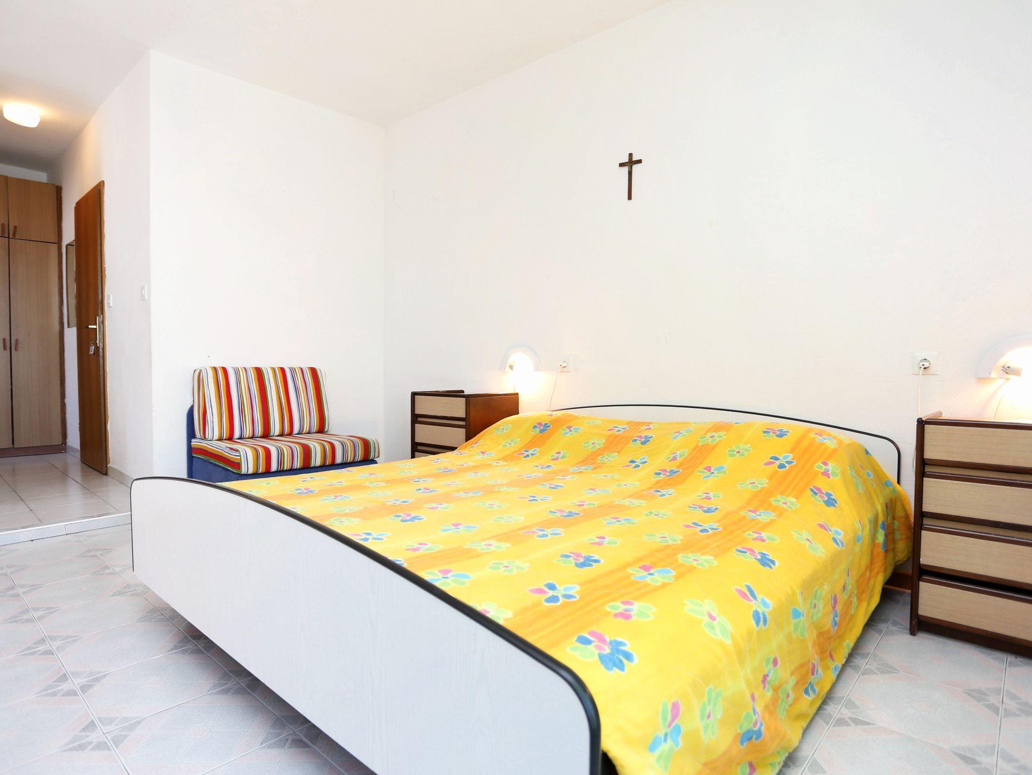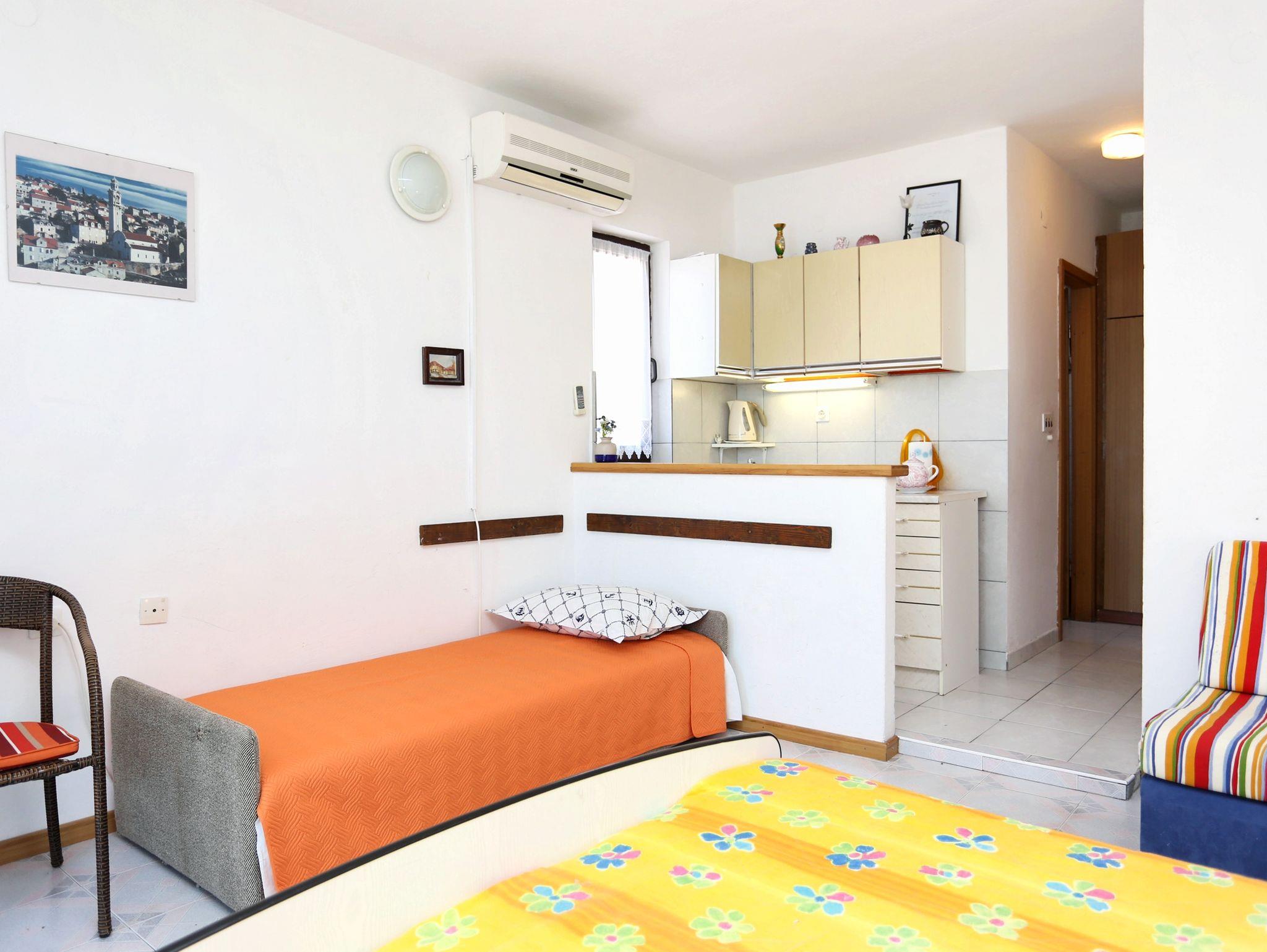 Studio bietet Platz für 3 Gäste. Die Betten sind in Schlafzimmern, die es 1 gibt, innerhalb einer Gesamtfläche von 24m2, angeordnet. Die Gäste haben einen eigenen Balkon zur Verfügung, auf der sie in warmen Sommernächten genießen können. Das Studio-Apartment bietet Meerblick. Es ist erlaubt, Speisen auf dem Gemeinschafts-Grill vorzubereiten. IM PREIS INBEGRIFFEN: Kurtaxe, Endreinigung, Klimatisierung, Parkplatz, Internet, Wäschewaschen, Bügeleisen, Bügelbrett, Föhn. VERBINDLICHE ZUSÄTZLICHE KOSTEN: Aufzahlung für Kurzaufenthalte (prozentualer Zuschlag pro Nächtigungsanzahl: 30% - 1, 20% - 2, 10% - 3). Die Verfügbarkeit zusätzlicher Dienstleistungen in Ihrem reservierten Termin und die Preise derselben (falls nicht aufgeführt) müssen im Voraus überprüft werden. Zusätzliche Dienstleistungen die in der Zahlungsaufforderung nicht aufgeführt sind werden direkt beim Vermieter bezahlt, angenommen der Gast nutzt auch diese. Ermäßigung auf den Grundpreis: Gratistag 14=13 (bei einem Aufenthalt von 14 Tagen oder mehr erhalten Sie einen Gratistag für den Aufenthalt bis 31.12.26).