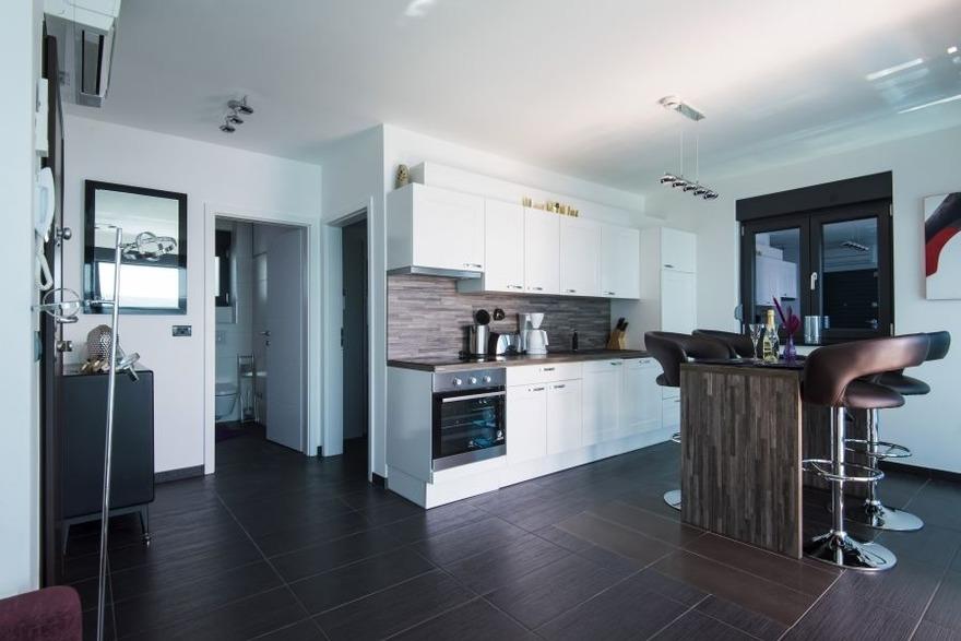 Traumhafte Design Luxus Ferienwohnungen, sowie beste Ausstattungen erwarten Sie. Der Strand befindet sich direkt vor dem Haus. Die Luxuswohnungen Nahe Zadar weisen jeweils eine Wohnfläche von 58m2