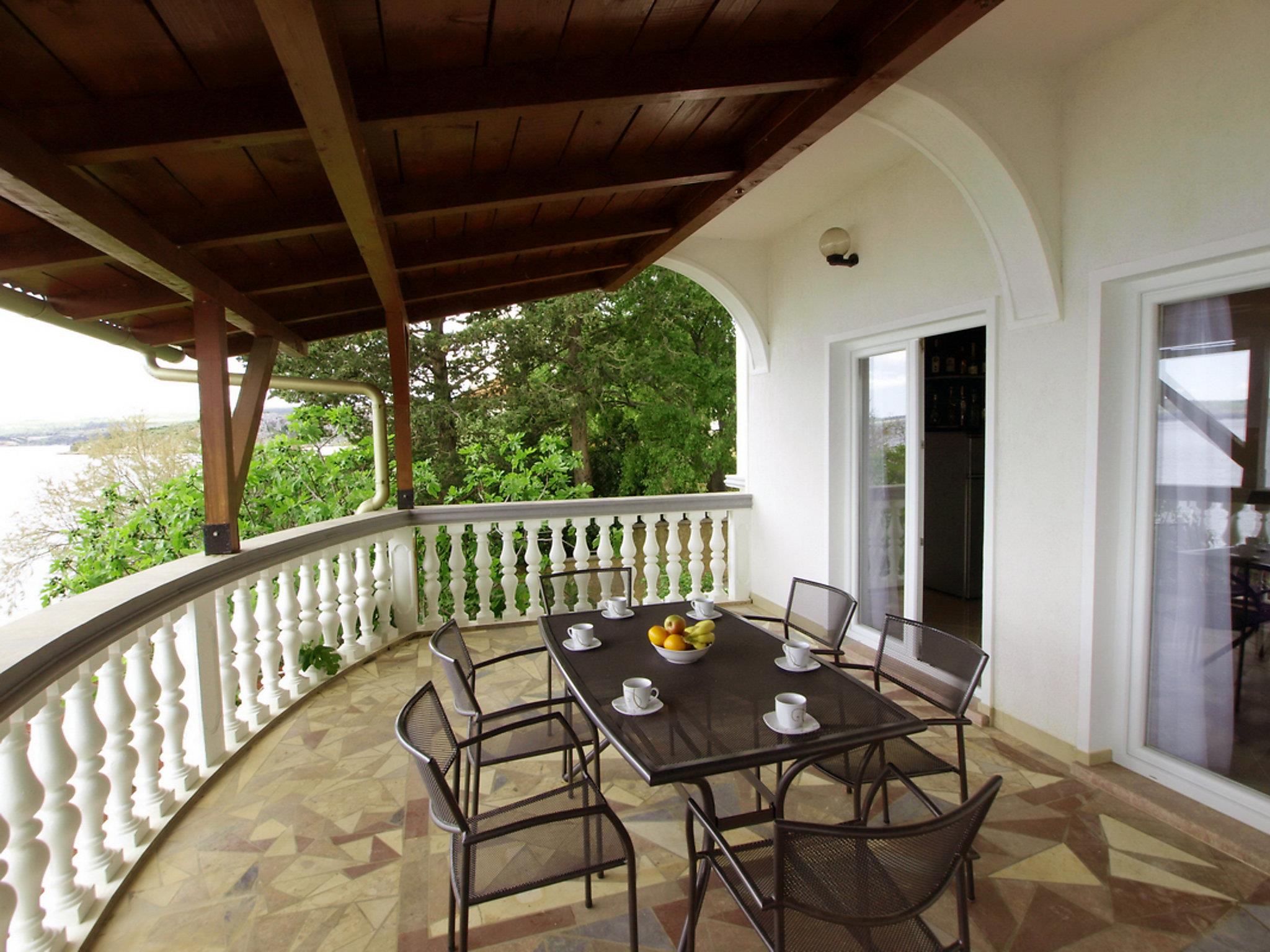 4-room apartment 80 m2 on 1st floor, south-west facing position. Living/dining room with satellite TV (flat screen), air conditioning. Exit to the terrace. 3 rooms, each room with 1 double bed (2 x 80 cm, length 200 cm). Open kitchen (4 hot plates, oven, dishwasher, microwave, freezer). Shower/WC. No heating option. Terrace 30 m2, roofed. Terrace furniture. View of the sea. Facilities: washing machine. Internet (WiFi, free).