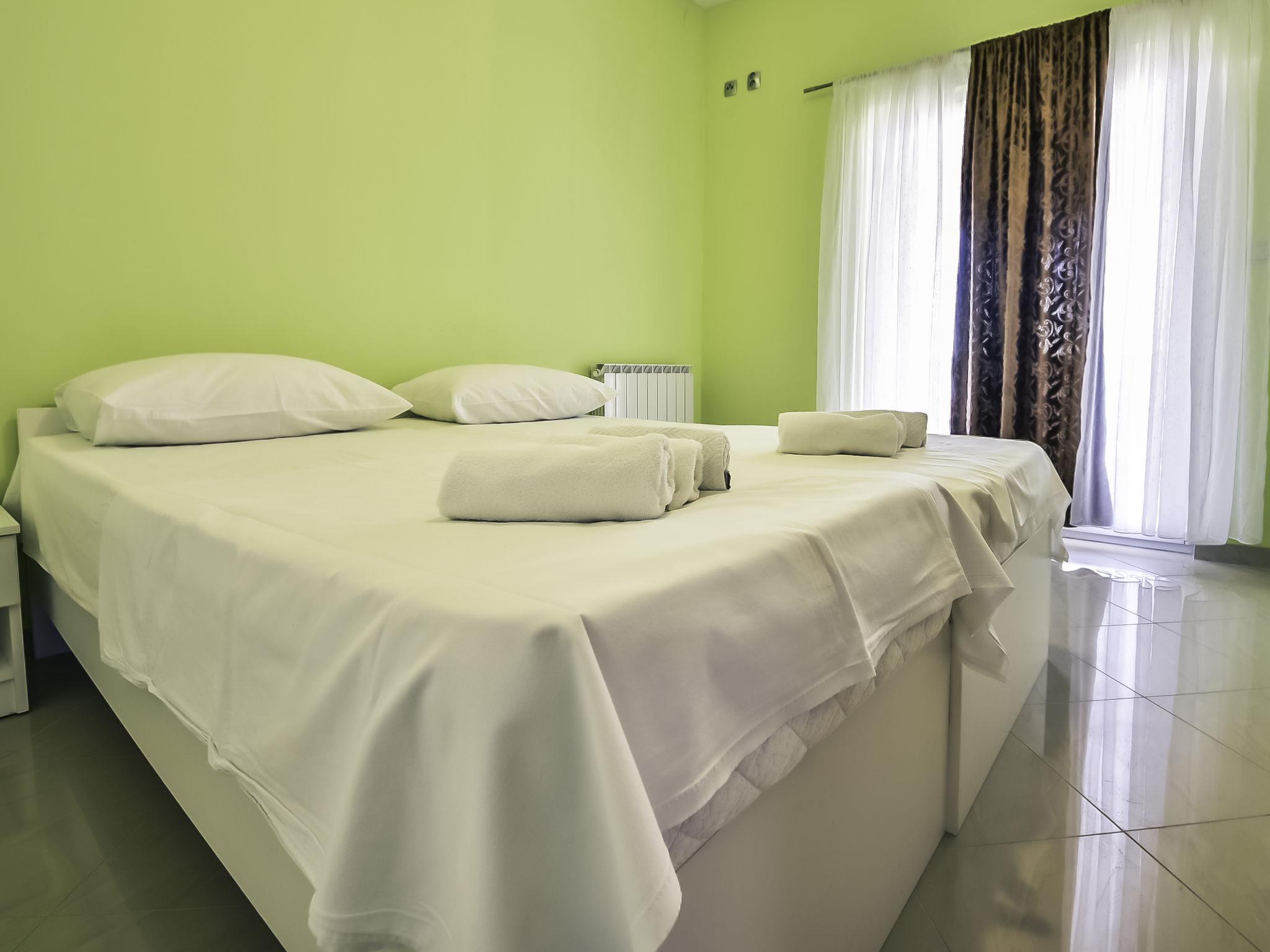 Apartment house "Škroco". 17 km from the centre of Obrovac, 25 km from the centre of Zadar, in a sunny position, at the seaside, 10 m from the beach. In the house: bar, internet access, central heating system. Parking at the house on the premises. Shop, restaurant 500 m, bus stop 1.2 km, pebble beach, shingle beach, concrete beach 10 m. On the ground floor: café.