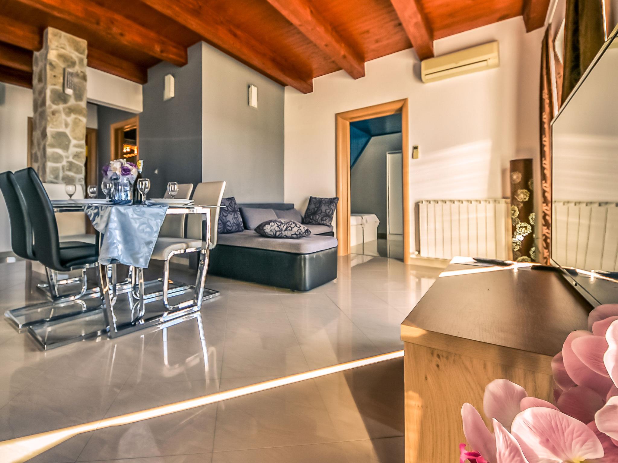 Apartment house "Škroco". 17 km from the centre of Obrovac, 25 km from the centre of Zadar, in a sunny position, at the seaside, 10 m from the beach. In the house: bar, internet access, central heating system. Parking at the house on the premises. Shop, restaurant 500 m, bus stop 1.2 km, pebble beach, shingle beach, concrete beach 10 m. On the ground floor: café.