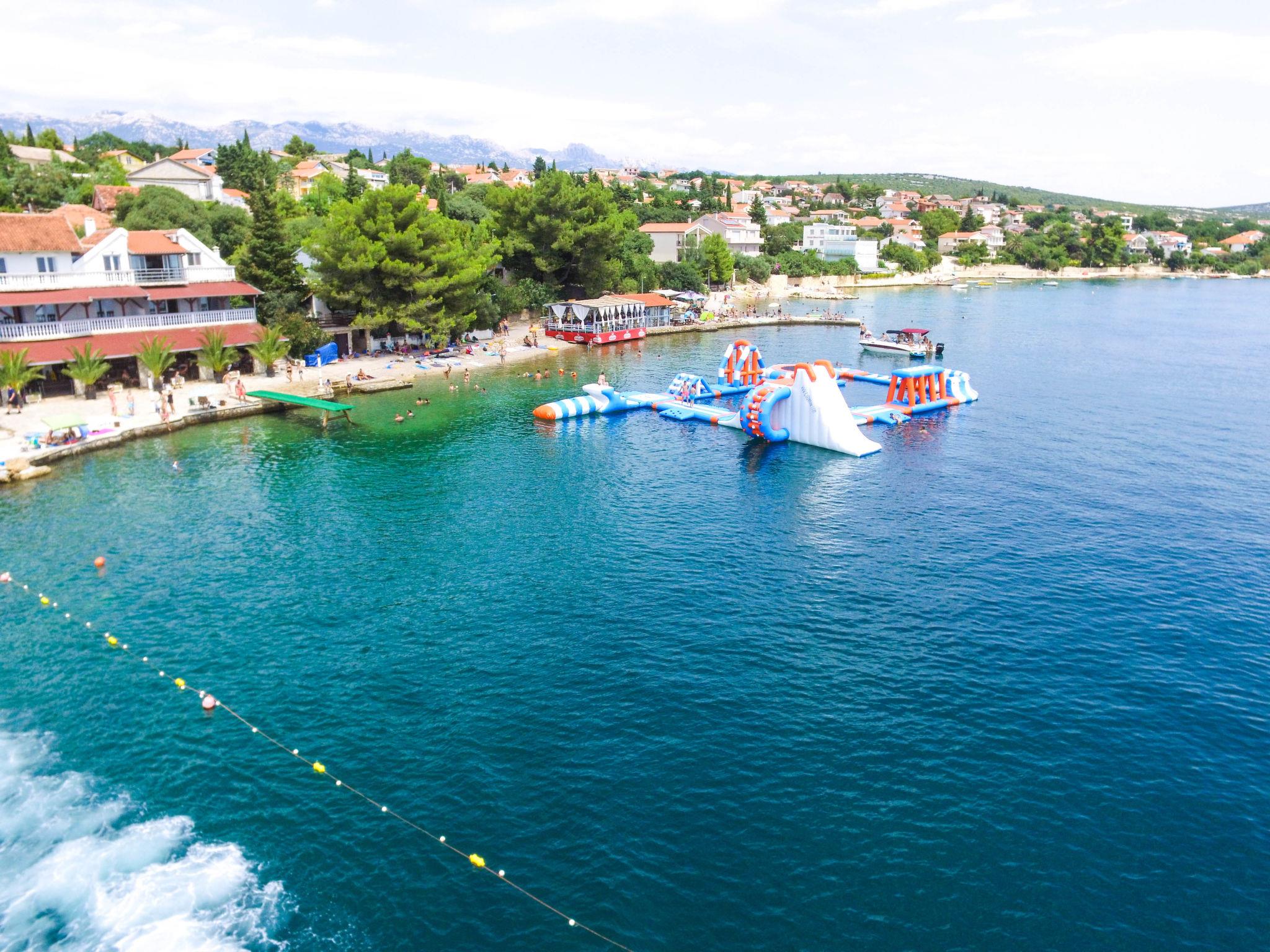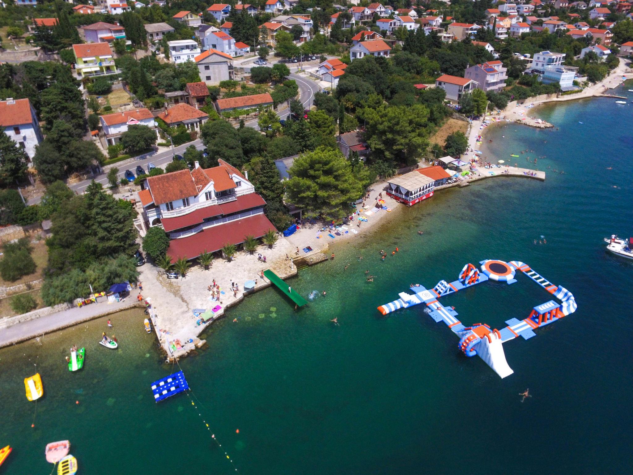 Apartment house "Škroco". 17 km from the centre of Obrovac, 25 km from the centre of Zadar, in a sunny position, at the seaside, 10 m from the beach. In the house: bar, internet access, central heating system. Parking at the house on the premises. Shop, restaurant 500 m, bus stop 1.2 km, pebble beach, shingle beach, concrete beach 10 m. On the ground floor: café.