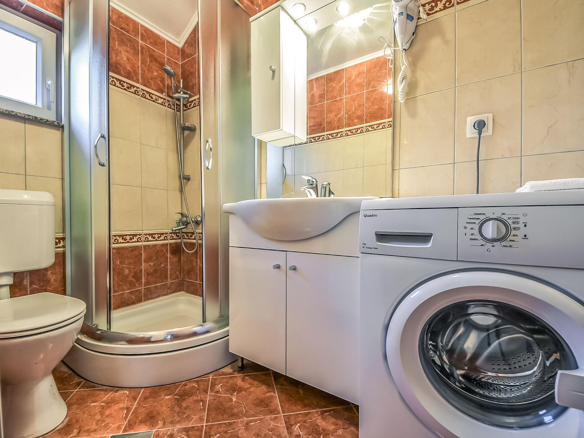 Apartment house "Škroco". 17 km from the centre of Obrovac, 25 km from the centre of Zadar, in a sunny position, at the seaside, 10 m from the beach. In the house: bar, internet access, central heating system. Parking at the house on the premises. Shop, restaurant 500 m, bus stop 1.2 km, pebble beach, shingle beach, concrete beach 10 m. On the ground floor: café.