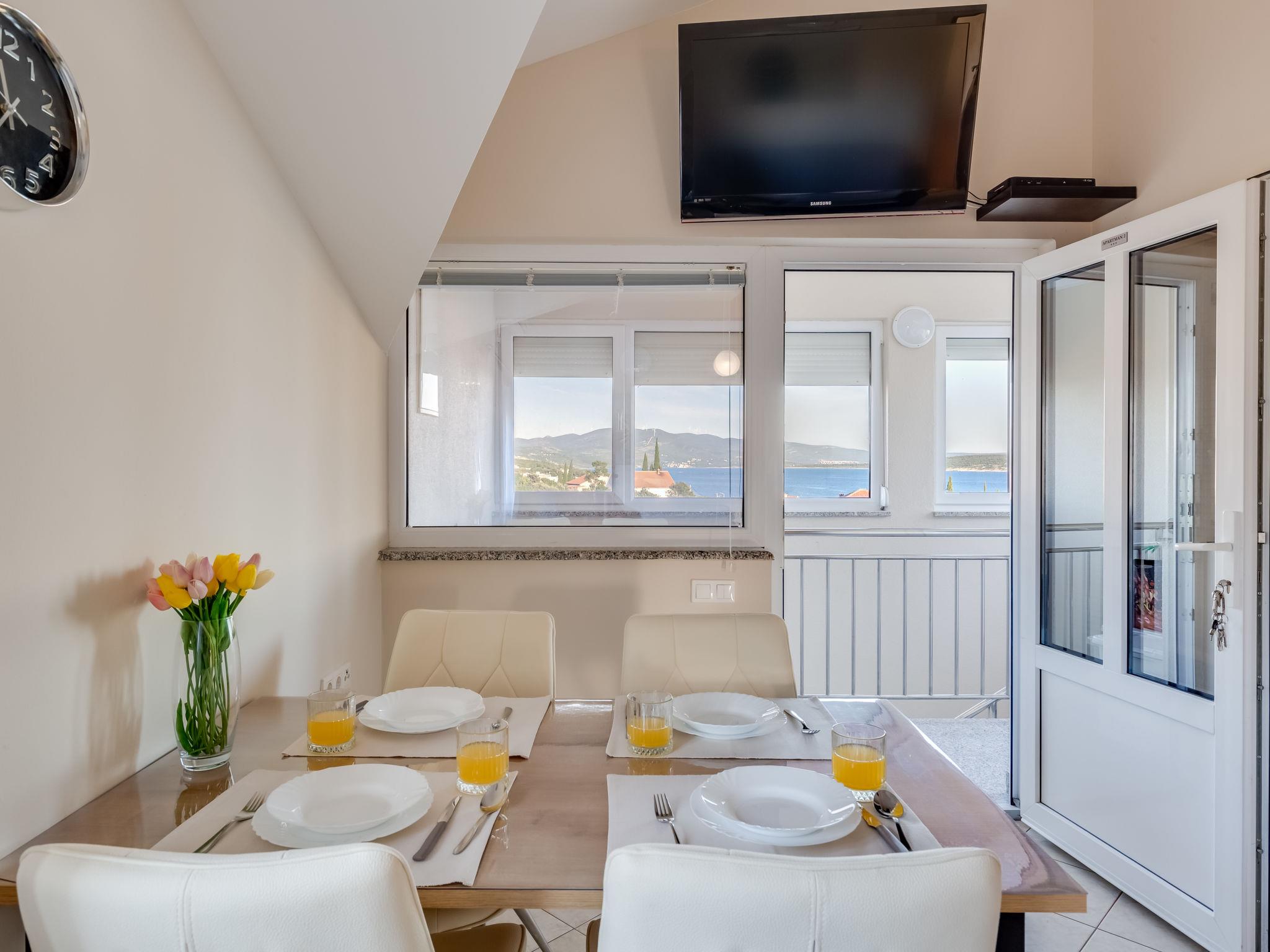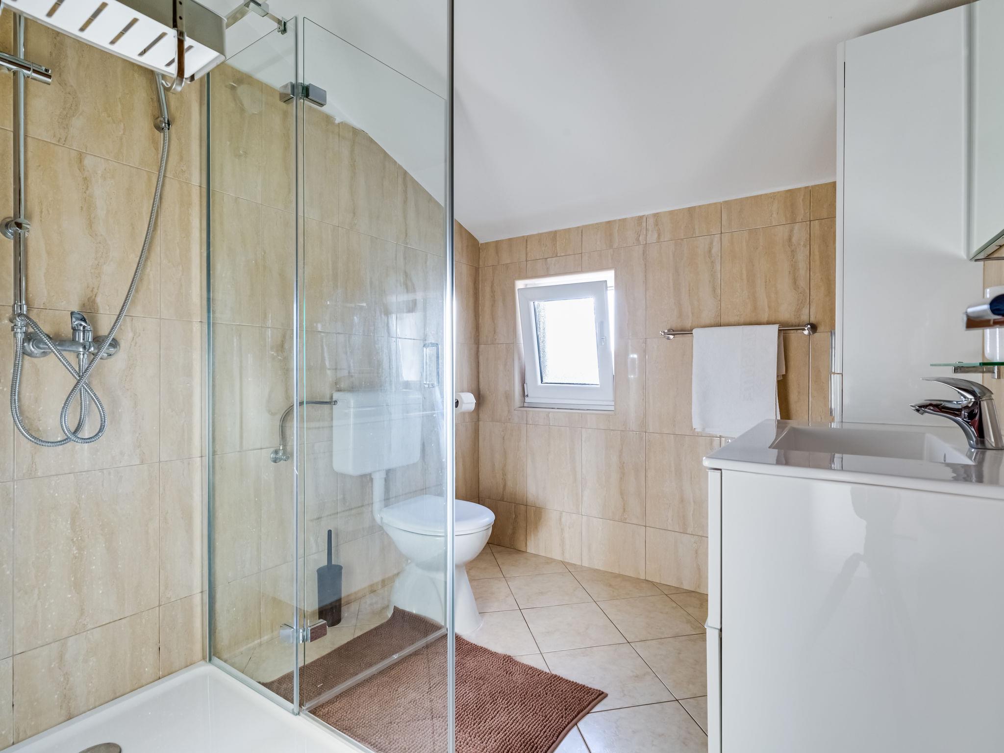 2-room apartment 45 m2, on the top floor, north facing position. Living/dining room 13 m2, with sloping ceilings, ceiling height 110 - 230 cm with 1 double sofabed (140 cm, length 200 cm), satellite TV (flat screen), air conditioning. 1 room with sloping ceilings, ceiling height 120 - 230 cm with 1 french bed (160 cm, length 200 cm). Open kitchen (2 ceramic glass hob hotplates, microwave). Shower/WC. Forced-air heating. Facilities: Internet (WiFi, free). Bedroom with smaller windows.