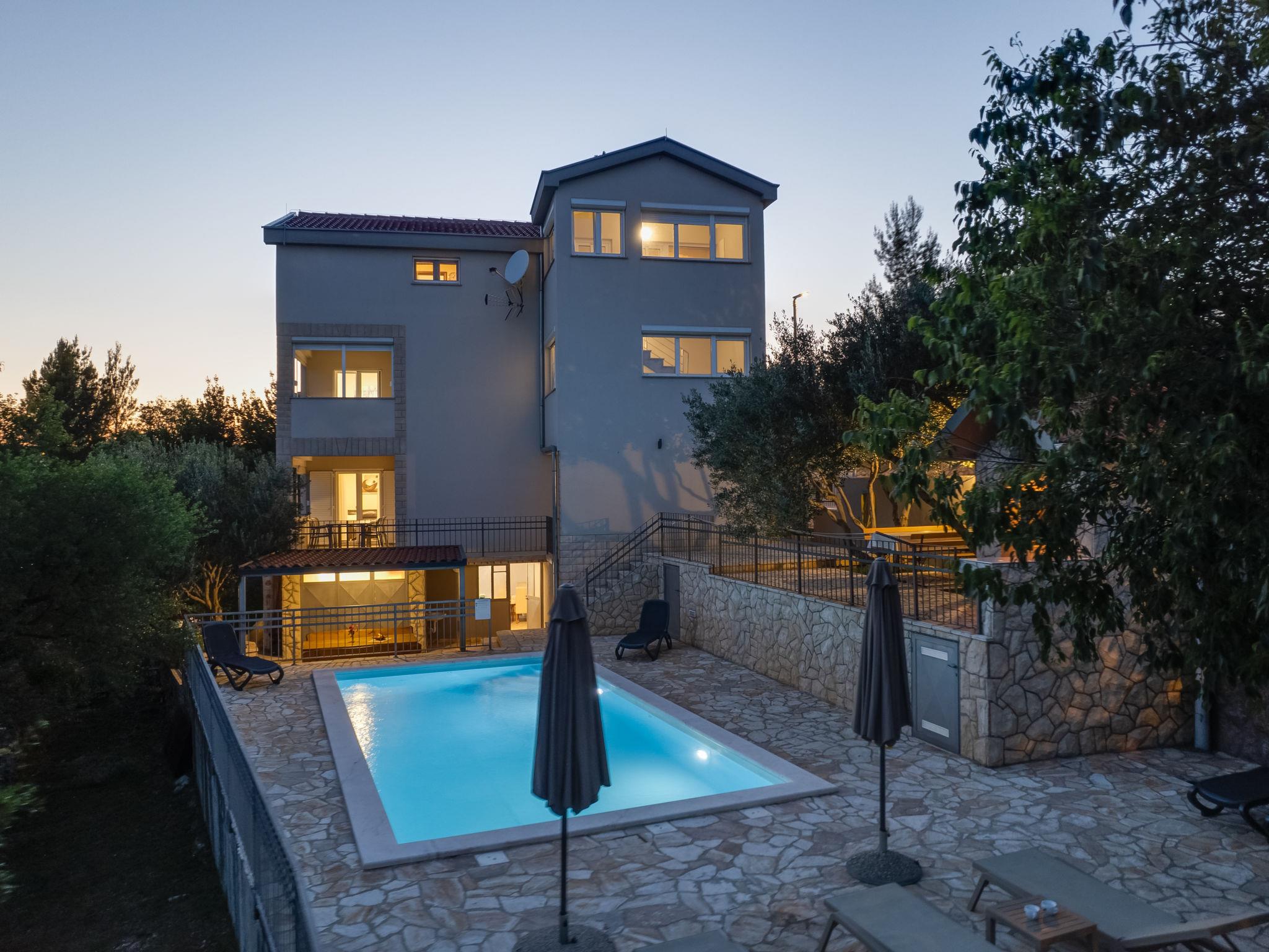 Apartment house "Relax". 16 km from the centre of Obrovac, in a sunny, elevated position, 150 m from the sea, 150 m from the beach, located by a road. For shared use: property 300 m2 (fenced), swimming pool angular (8 x 4 m, depth 150 cm, seasonal availability: 02.May. - 26.Sep.). Garden furniture, barbecue. In the house: internet access, washing machine (for shared use). Parking at the house on the premises. Shop 10 m, restaurant 100 m, bus stop 1 km, pebble beach 150 m. Nearby attractions: NP Paklenica 17 km, rafting Zrmanja 35 km.