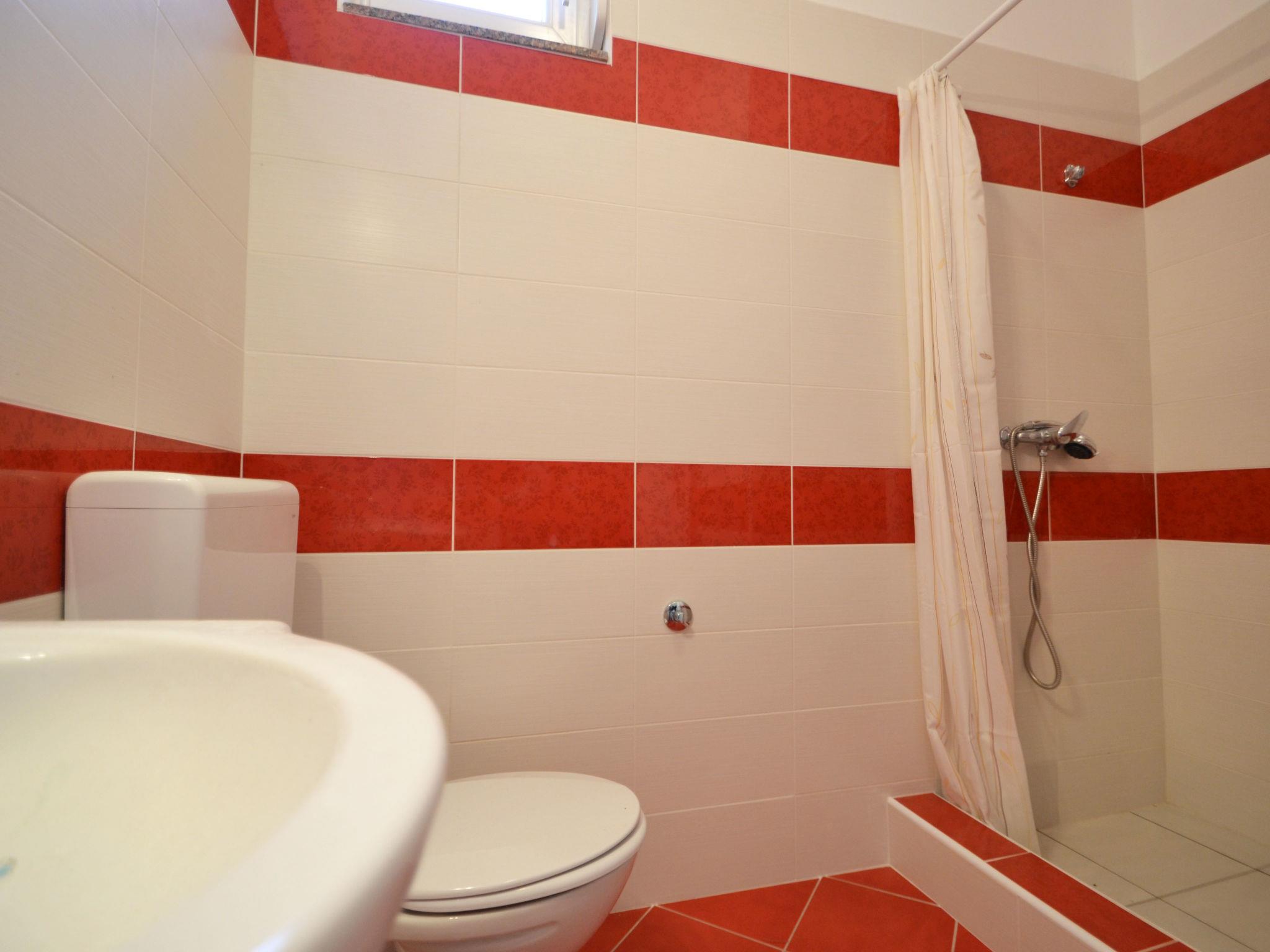 3-room apartment 70 m2, on the ground floor, south-west facing position. Living/dining room 14 m2 with satellite TV (flat screen), air conditioning. Exit to the terrace. 1 room with 1 double bed (2 x 80 cm, length 200 cm). 1 room with 2 beds (90 cm, length 200 cm). Exit to the terrace. Open kitchen (4 hot plates, oven, freezer). Shower/WC. No heating option. Terrace 6 m2, roofed, terrace 4 m2. Terrace furniture. Facilities: washing machine. Internet (WiFi, free).