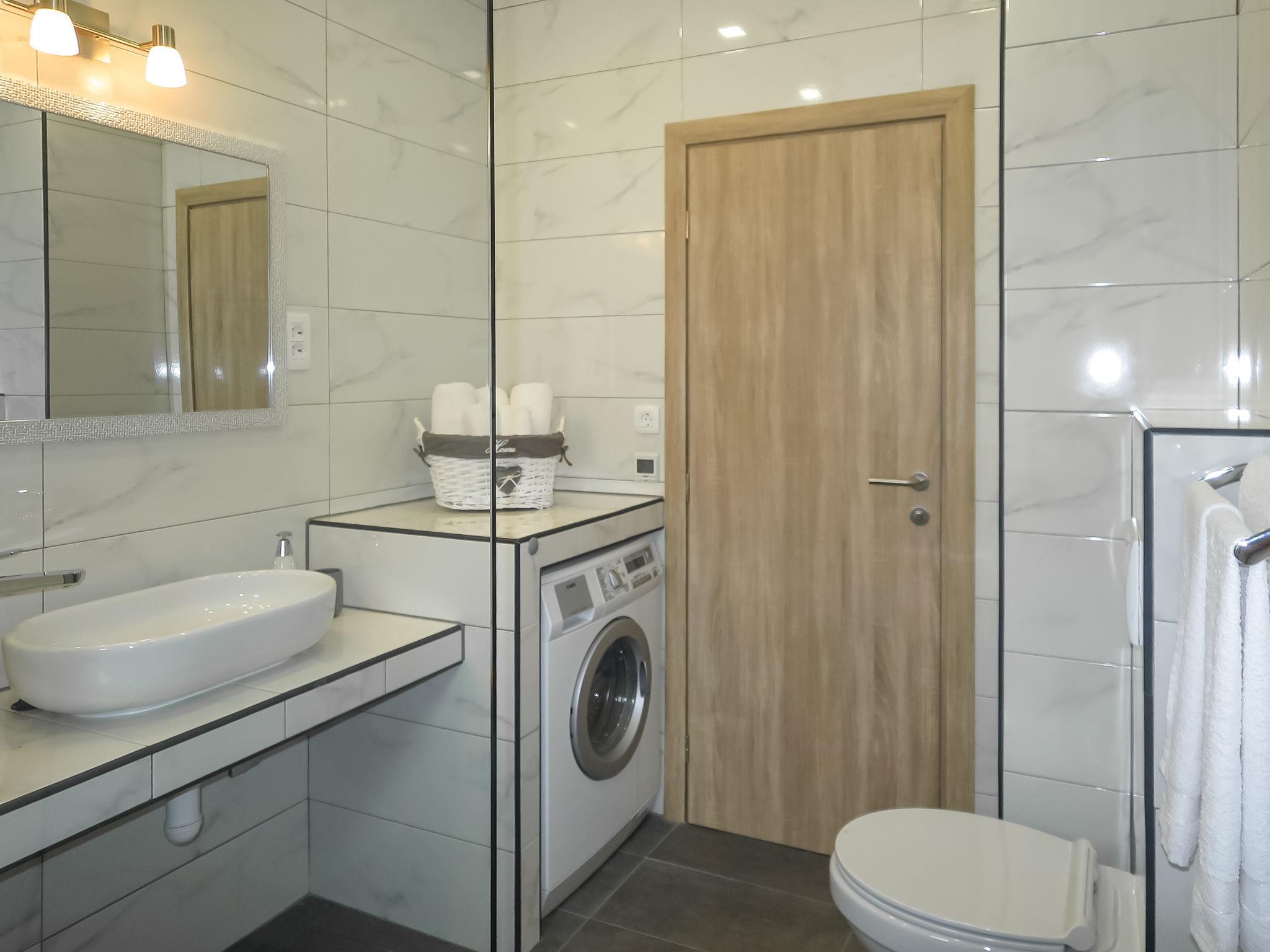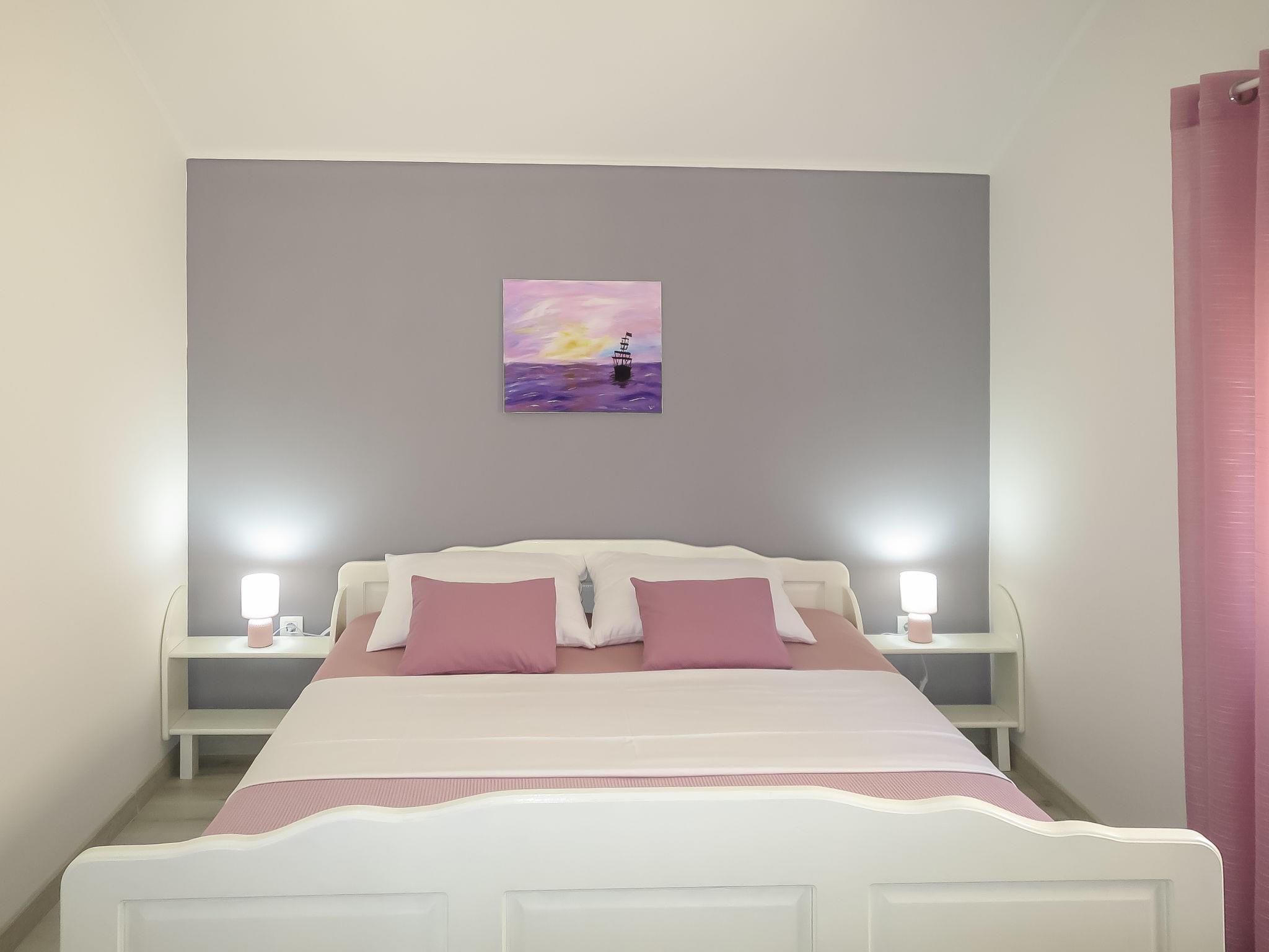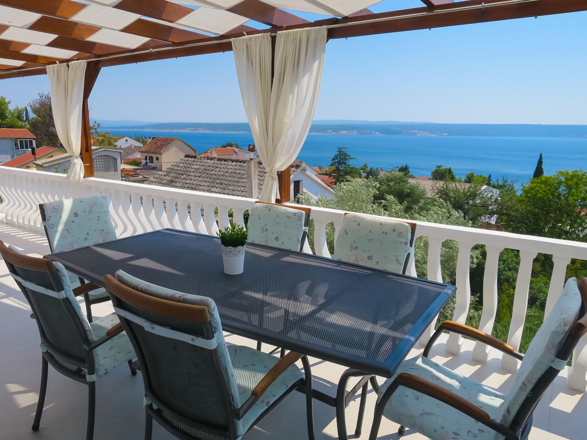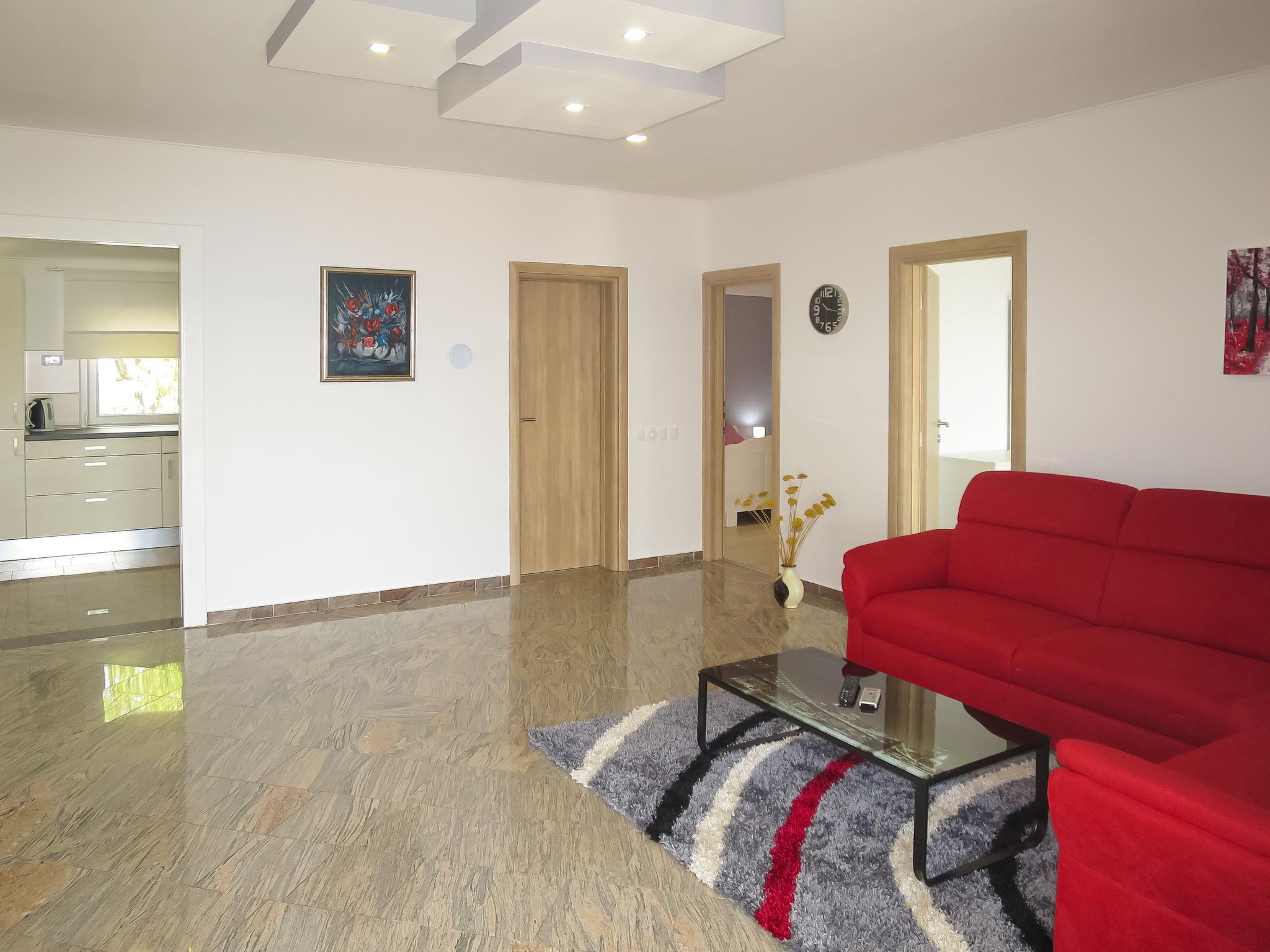 "Andrijana", 3-room apartment 80 m2 on 1st floor. Living/dining room with 1 double sofabed (120 cm, length 200 cm), satellite TV and air conditioning. Exit to the balcony. 1 room with 1 french bed (180 cm, length 200 cm). Exit to the balcony. 1 room with 1 double bed (2 x 90 cm, length 200 cm). Open kitchen (4 hot plates, oven, dishwasher, toaster, kettle, freezer, electric coffee machine). Shower/WC. No heating option. Balcony 30 m2. Balcony furniture, deck chairs (2). View of the sea. Facilities: Internet (WiFi, free). Please note: non-smoking house.