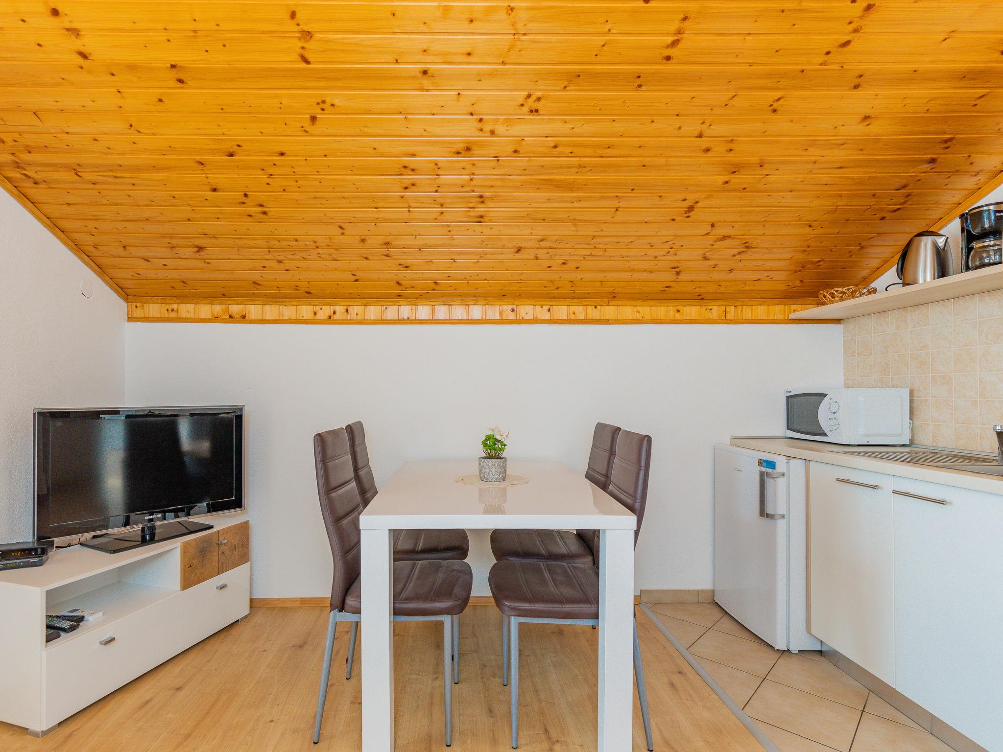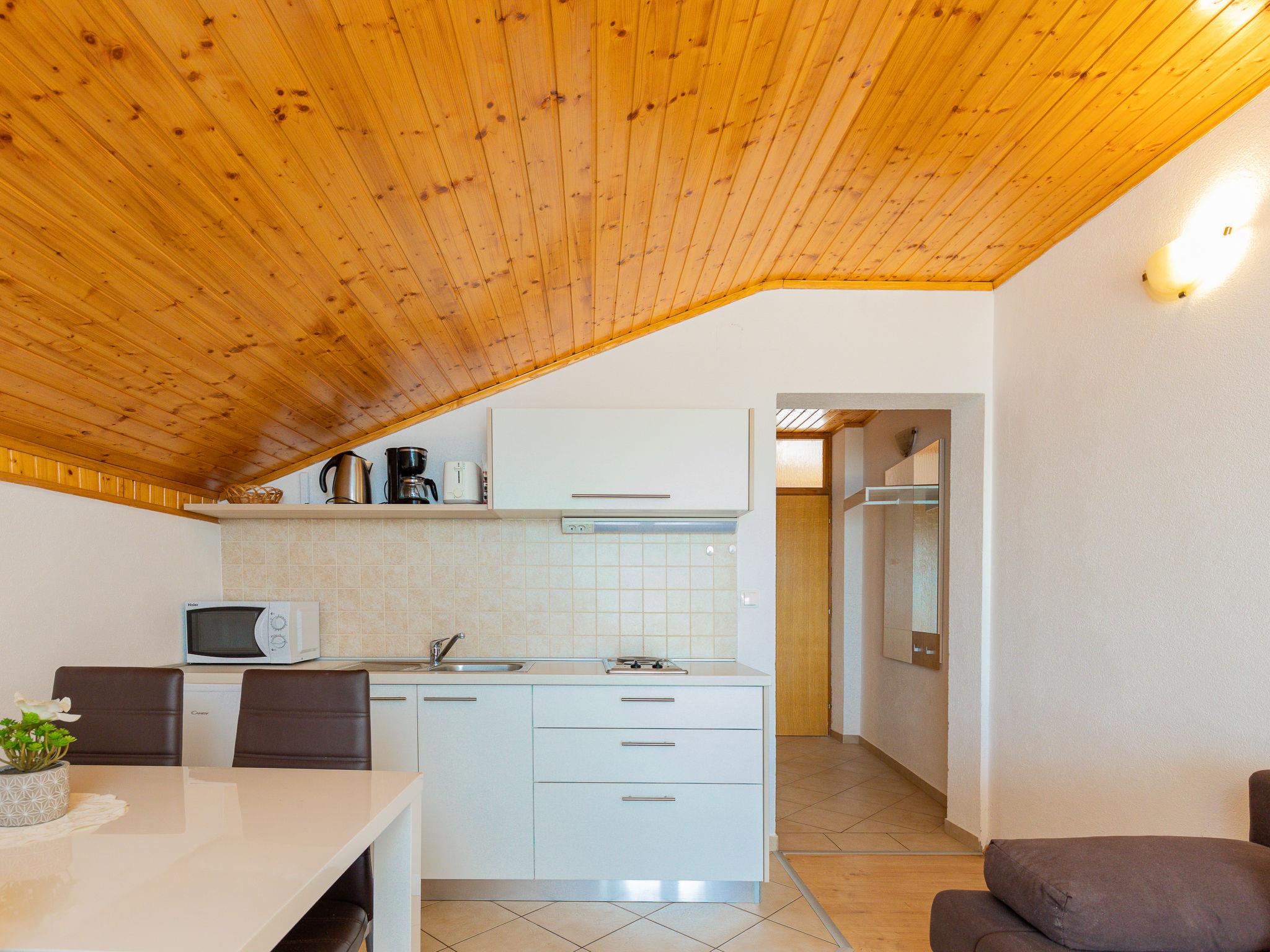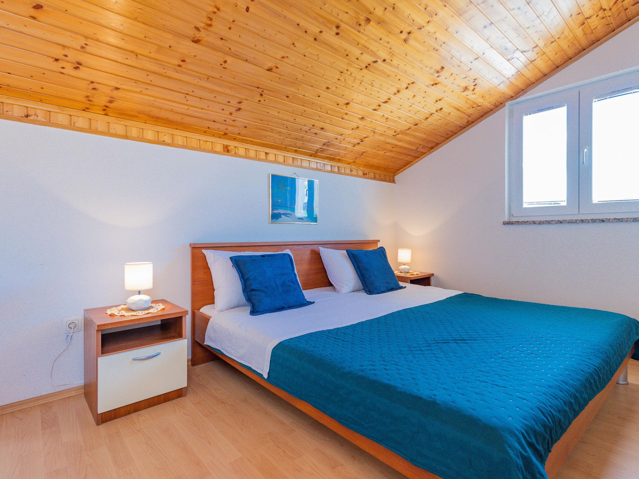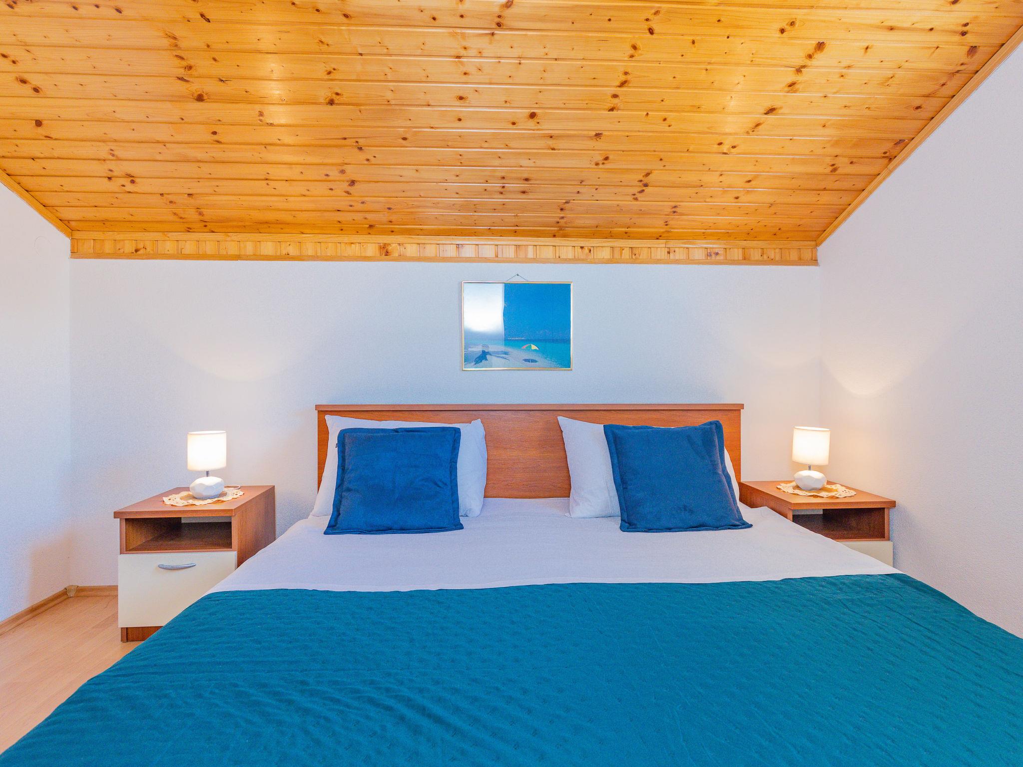 "Maja", 2-room apartment 34 m2, on the top floor. Living/dining room with sloping ceilings with 1 double sofabed (140 cm, length 190 cm), satellite TV and air conditioning. Exit to the balcony. 1 room with sloping ceilings with 1 double bed (2 x 90 cm, length 200 cm). With sloping ceilings, open kitchen (2 hot plates, toaster, kettle, microwave, electric coffee machine). Shower/WC. Electric heating. Balcony 17 m2. Balcony furniture, deck chairs. View of the sea. Facilities: washing machine. Internet (WiFi, free). Please note: non-smoking house. Private entrance.