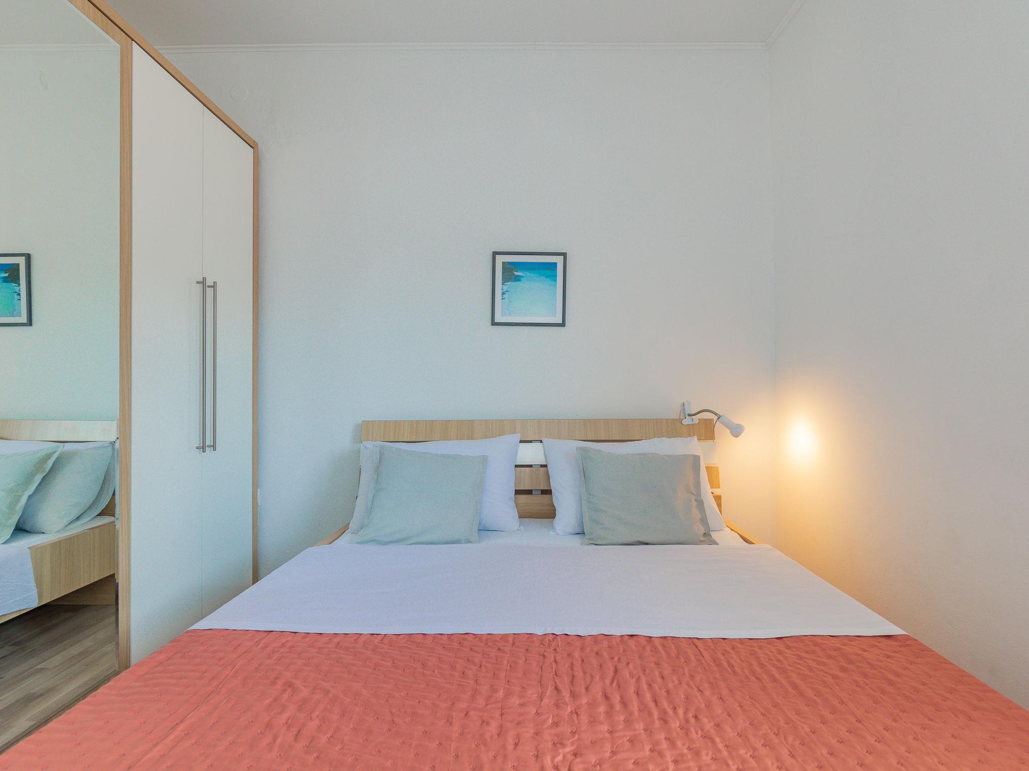 "Maja", 2-room apartment 40 m2 on 1st floor. Living/dining room with 1 double sofabed (155 cm, length 190 cm), satellite TV and air conditioning. Exit to the balcony. 1 room with 1 double bed (2 x 80 cm, length 200 cm). Open kitchen (2 hot plates, toaster, kettle, microwave, freezer, electric coffee machine). Shower/WC. Electric heating. Balcony 6 m2. Balcony furniture. View of the sea. Facilities: washing machine. Internet (WiFi, free). Please note: non-smoking house. Private entrance.