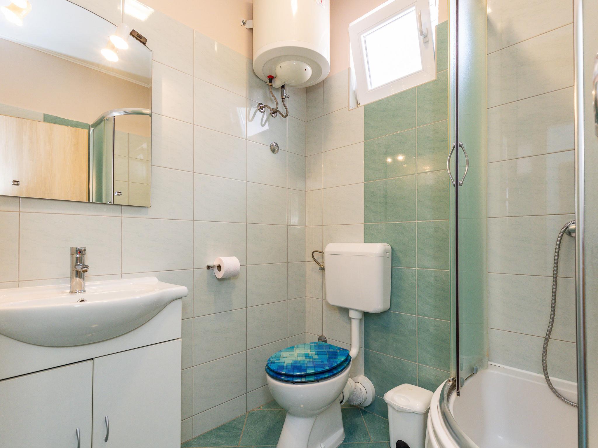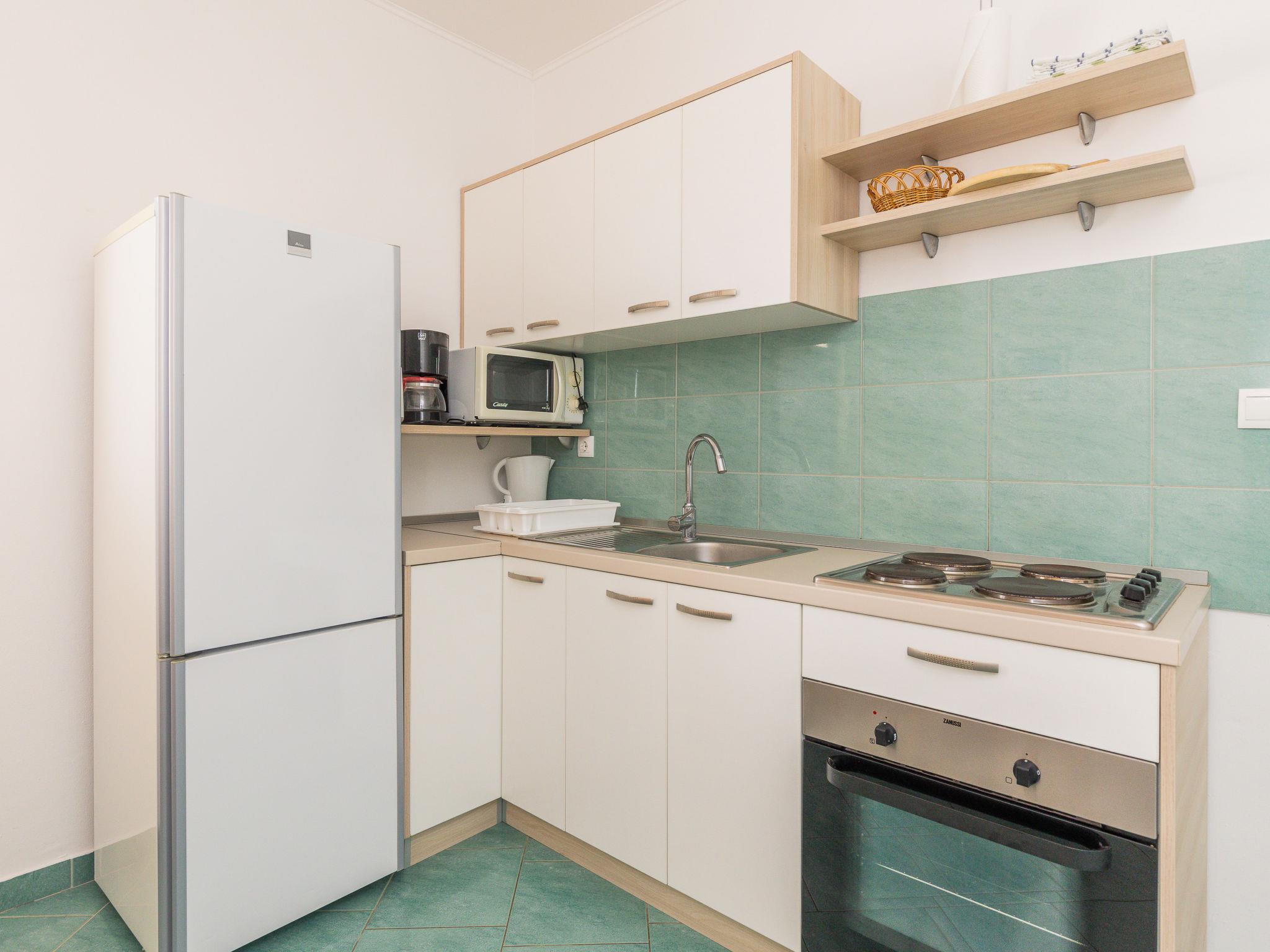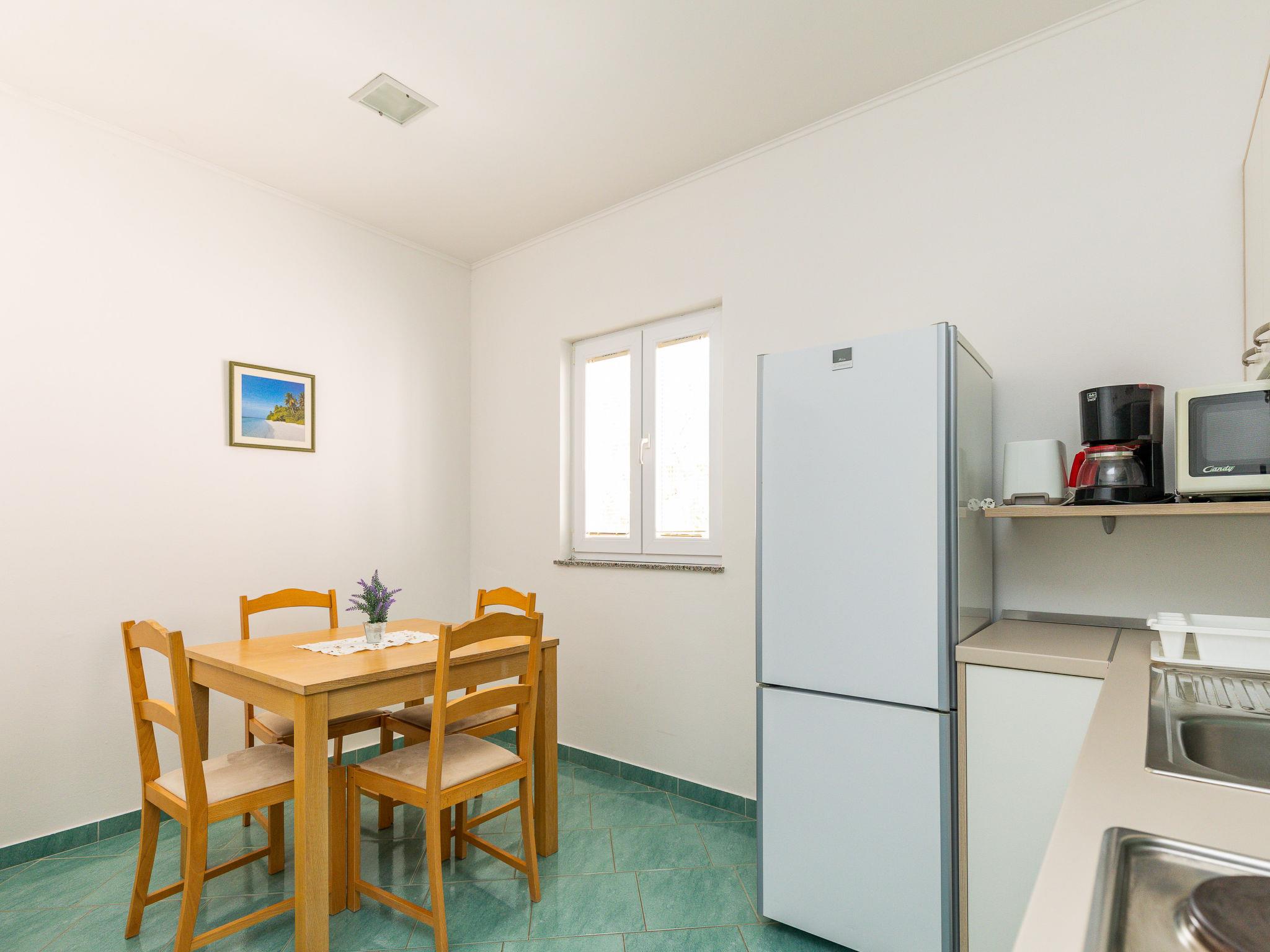 "Maja", 2-room apartment 40 m2 on 1st floor. Living/dining room with 1 double sofabed (155 cm, length 190 cm), satellite TV and air conditioning. Exit to the balcony. 1 room with 1 double bed (160 cm, length 200 cm). Open kitchen (4 hot plates, oven, toaster, kettle, microwave, freezer, electric coffee machine). Shower/WC. Electric heating. Balcony 6 m2. Balcony furniture. View of the sea. Facilities: washing machine. Internet (WiFi, free). Please note: non-smoking house. Private entrance.