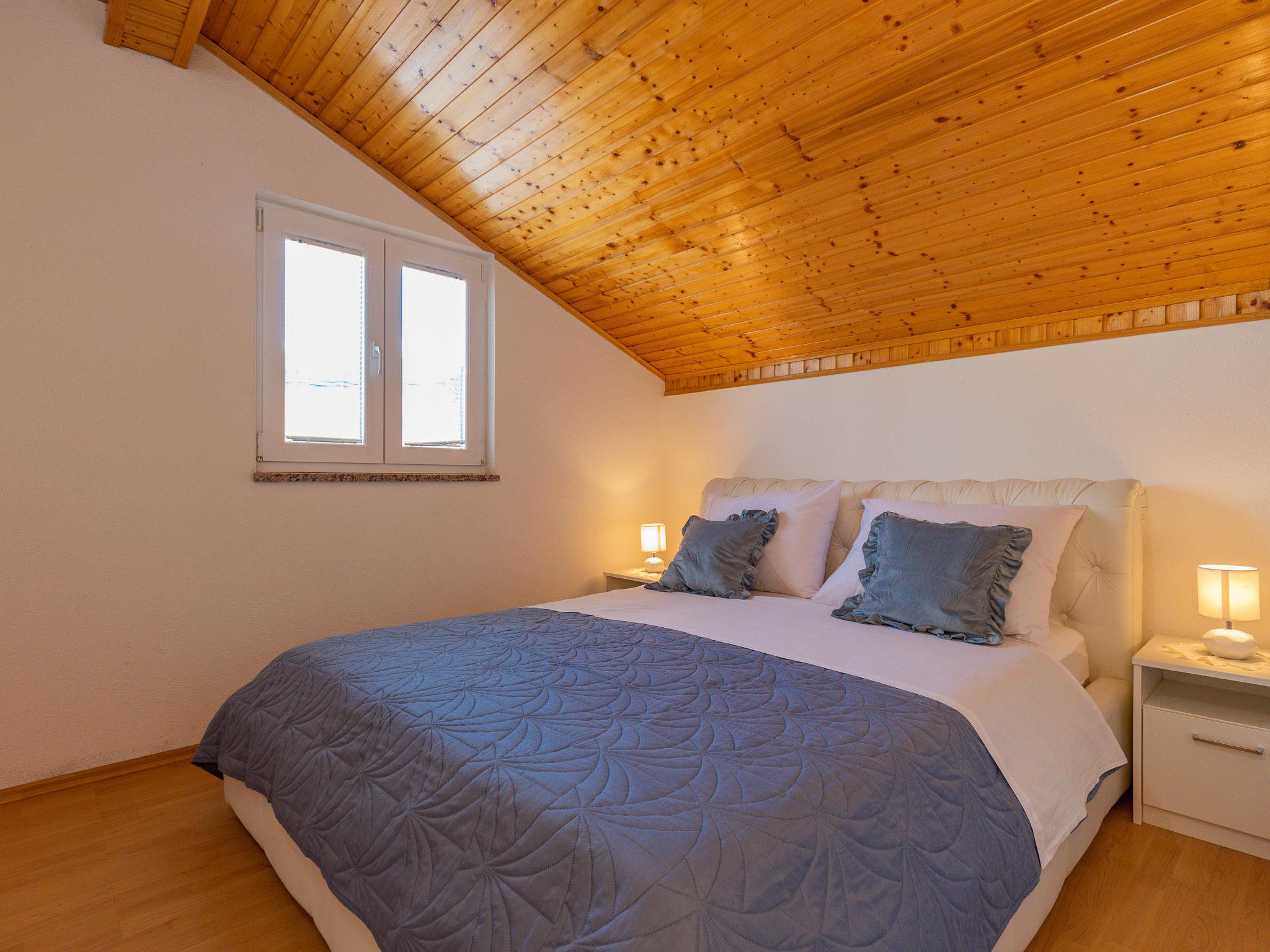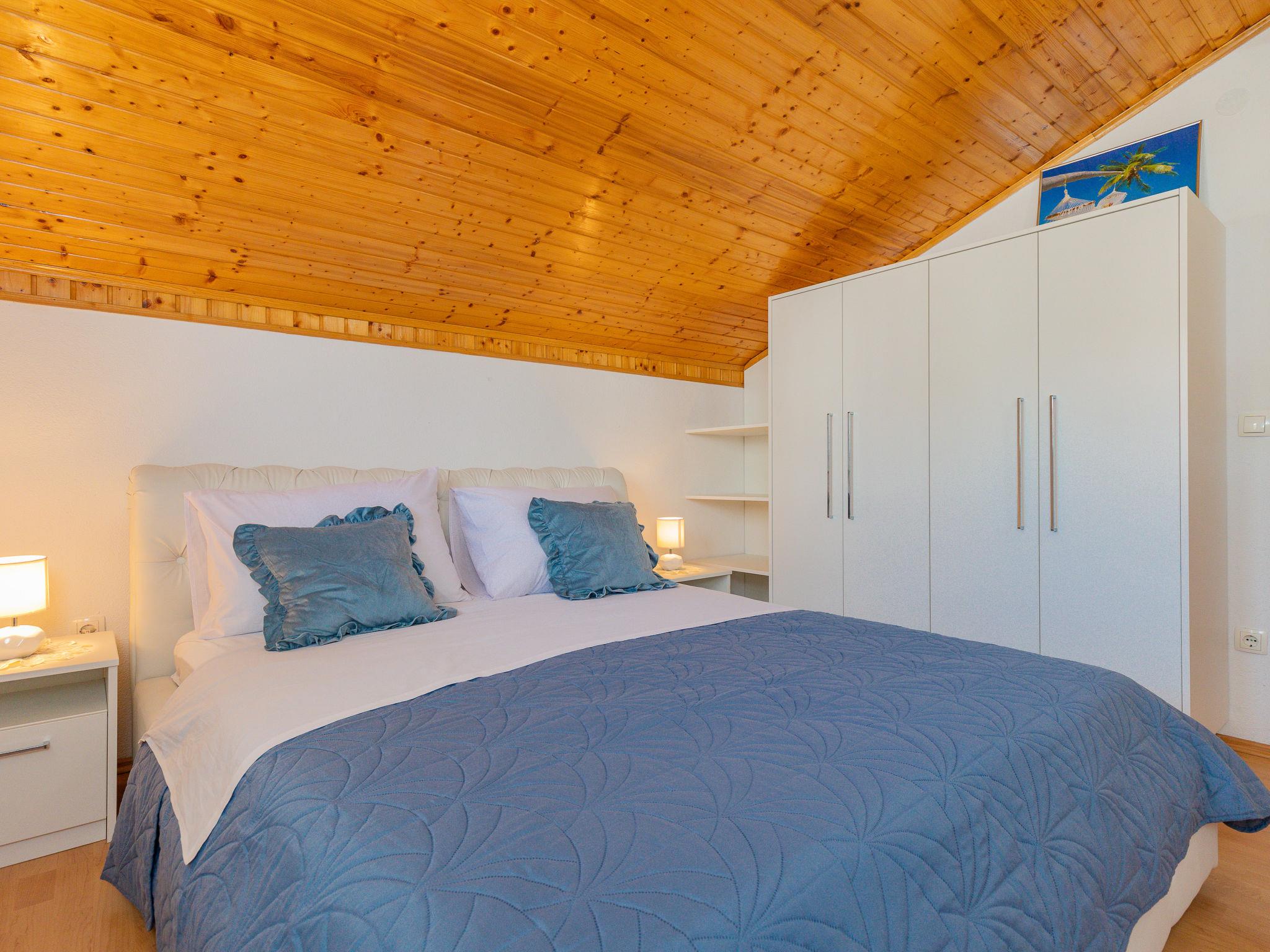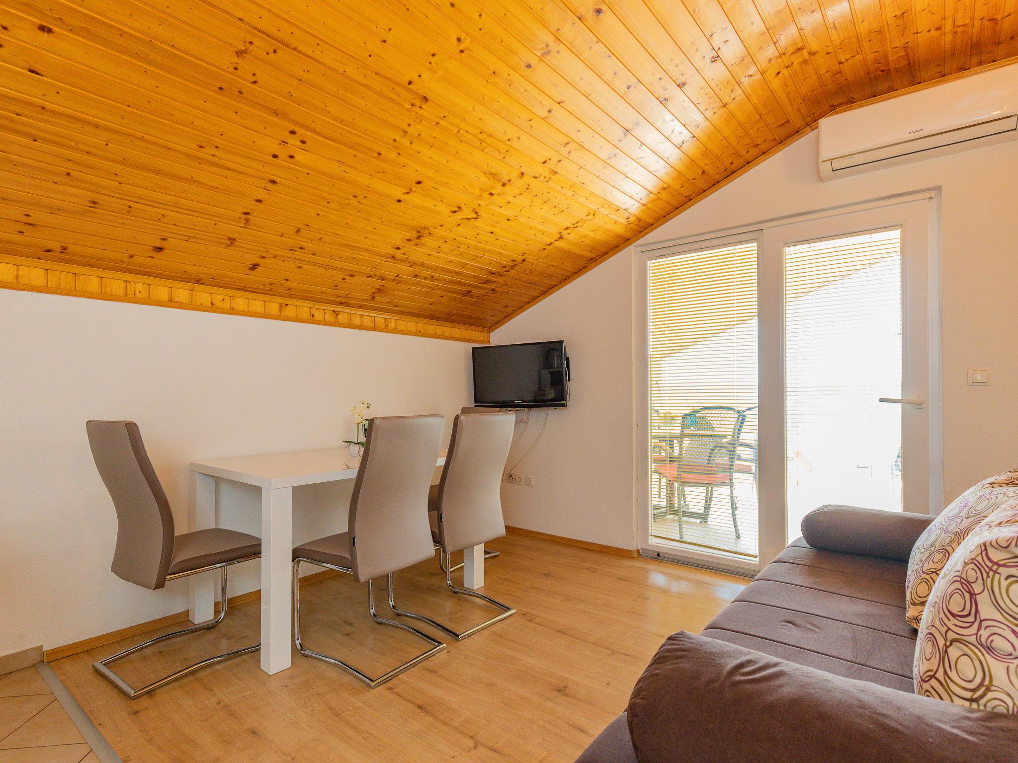 "Maja", 2-room apartment 34 m2, on the top floor. Living/dining room with sloping ceilings with 1 double sofabed (140 cm, length 190 cm), satellite TV and air conditioning. Exit to the balcony. 1 room with sloping ceilings with 1 french bed (160 cm, length 200 cm). With sloping ceilings, open kitchen (2 hot plates, toaster, kettle, microwave, electric coffee machine). Shower/WC. Electric heating. Balcony 17 m2. Balcony furniture, deck chairs. View of the sea. Facilities: washing machine. Internet (WiFi, free). Please note: non-smoking house. Private entrance.