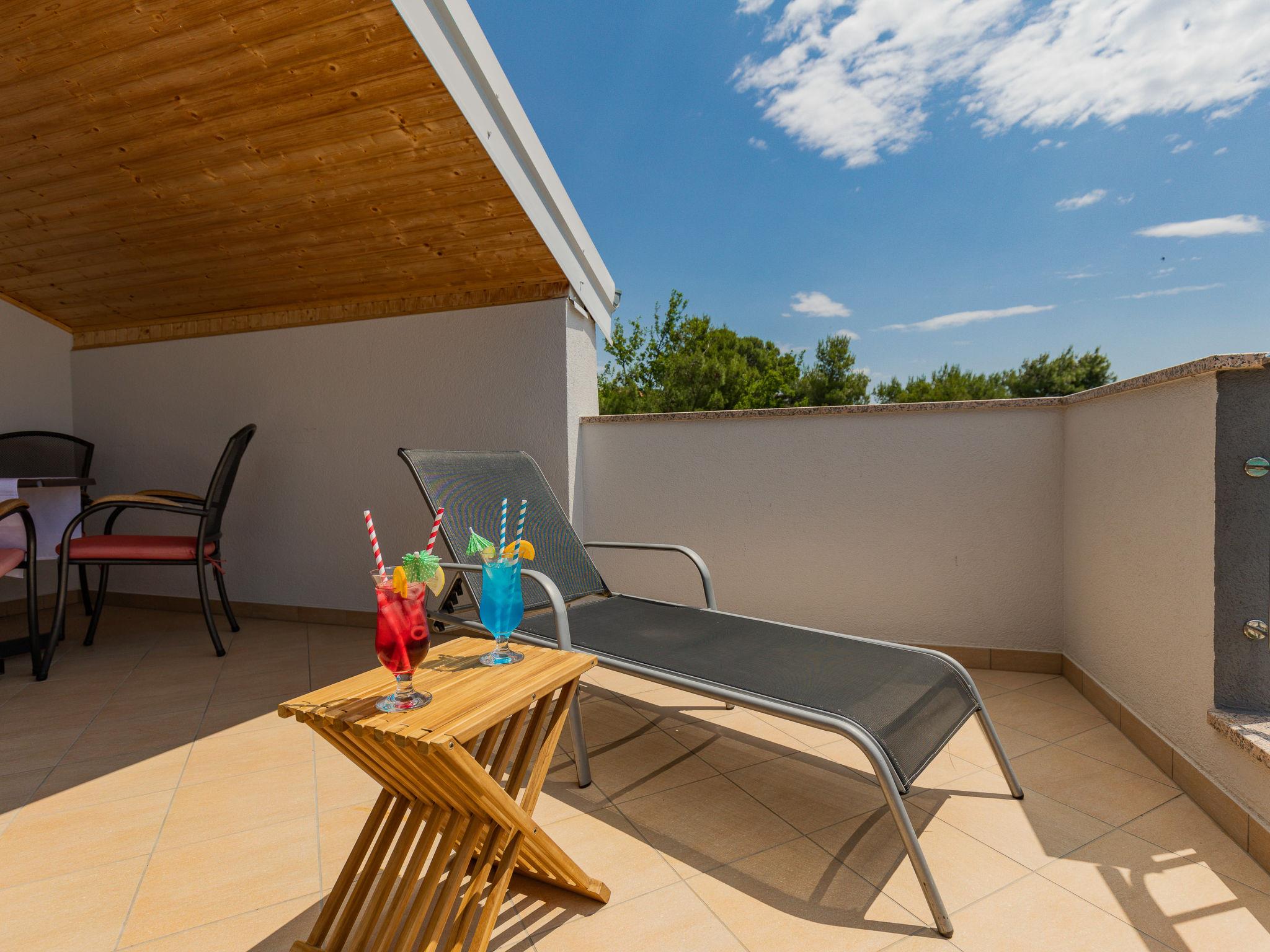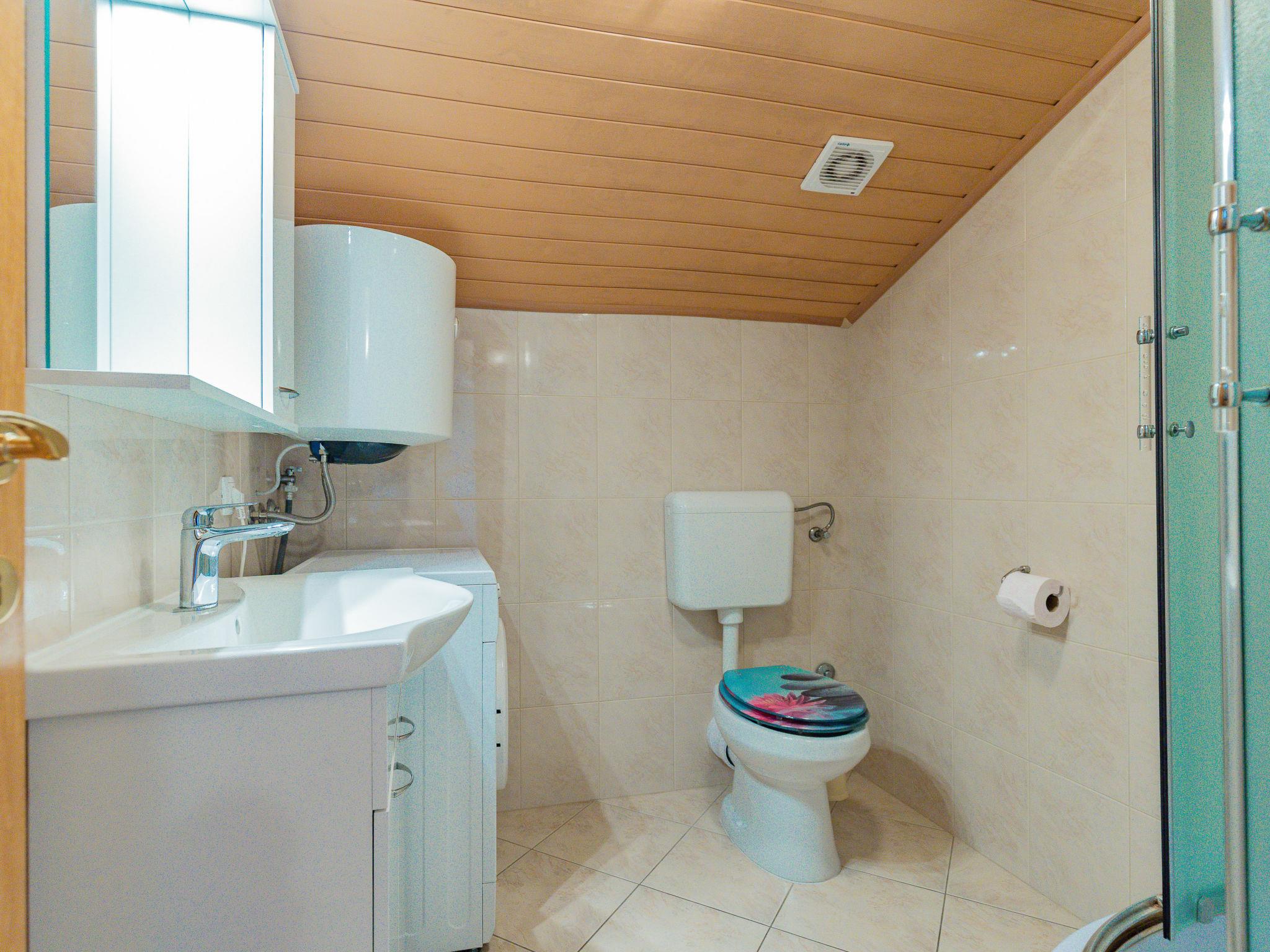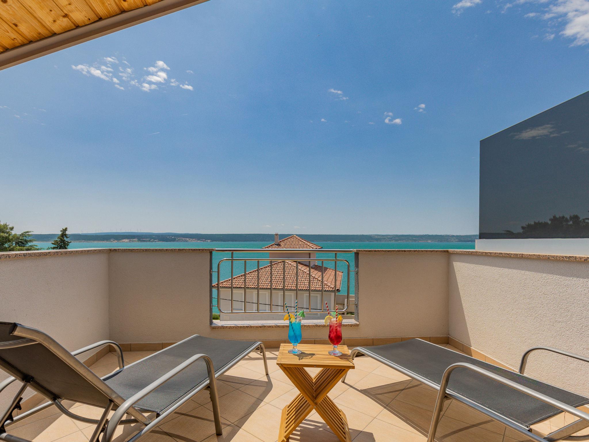 "Maja", 2-room apartment 34 m2, on the top floor. Living/dining room with sloping ceilings with 1 double sofabed (140 cm, length 190 cm), satellite TV and air conditioning. Exit to the balcony. 1 room with sloping ceilings with 1 french bed (160 cm, length 200 cm). With sloping ceilings, open kitchen (2 hot plates, toaster, kettle, microwave, electric coffee machine). Shower/WC. Electric heating. Balcony 17 m2. Balcony furniture, deck chairs. View of the sea. Facilities: washing machine. Internet (WiFi, free). Please note: non-smoking house. Private entrance.
