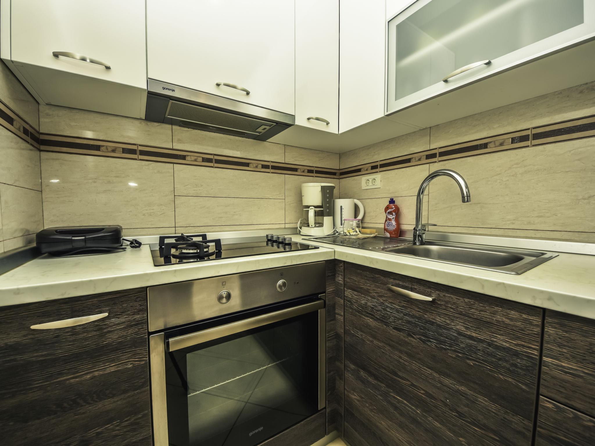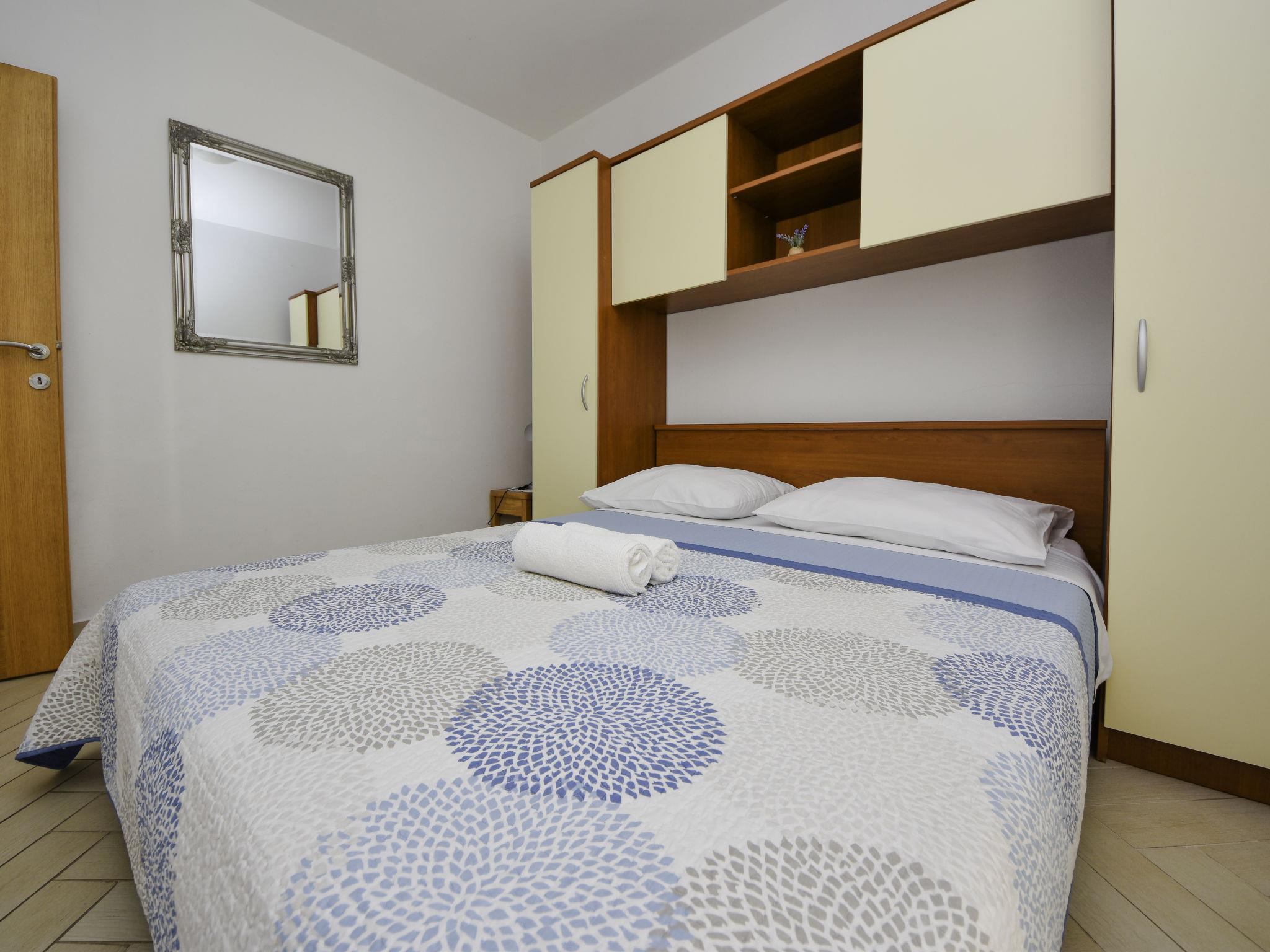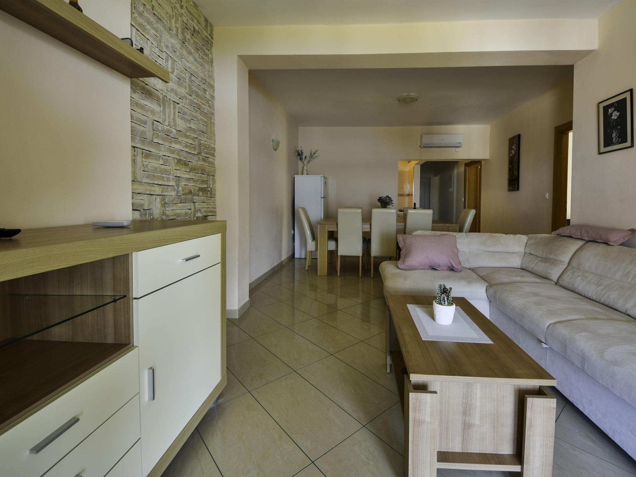 5-room apartment 130 m2 on 2nd floor. Living/dining room with satellite TV and air conditioning. Exit to the balcony. 1 room with 1 french bed (160 cm, length 200 cm). Exit to the balcony. 1 room with 2 beds and shower/WC. Exit to the balcony. 1 room with 2 beds. Exit to the balcony. 1 room with 1 french bed (160 cm, length 200 cm), shower/WC. Open kitchen (oven, dishwasher, 2 ceramic glass hob hotplates, 2 gas rings, toaster, kettle, electric coffee machine). Shower/WC. No heating option. 3 balconies 6 m2, balcony 25 m2. Balcony furniture, barbecue. View of the sea. Facilities: washing machine. Internet (WiFi, free). Please note: non-smokers only.