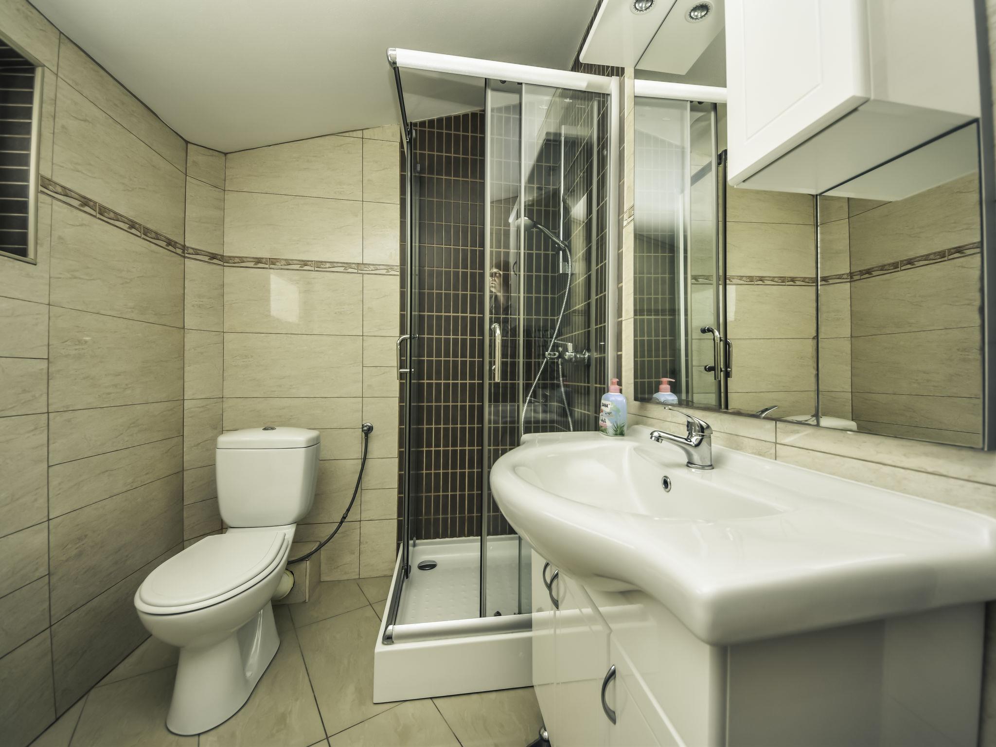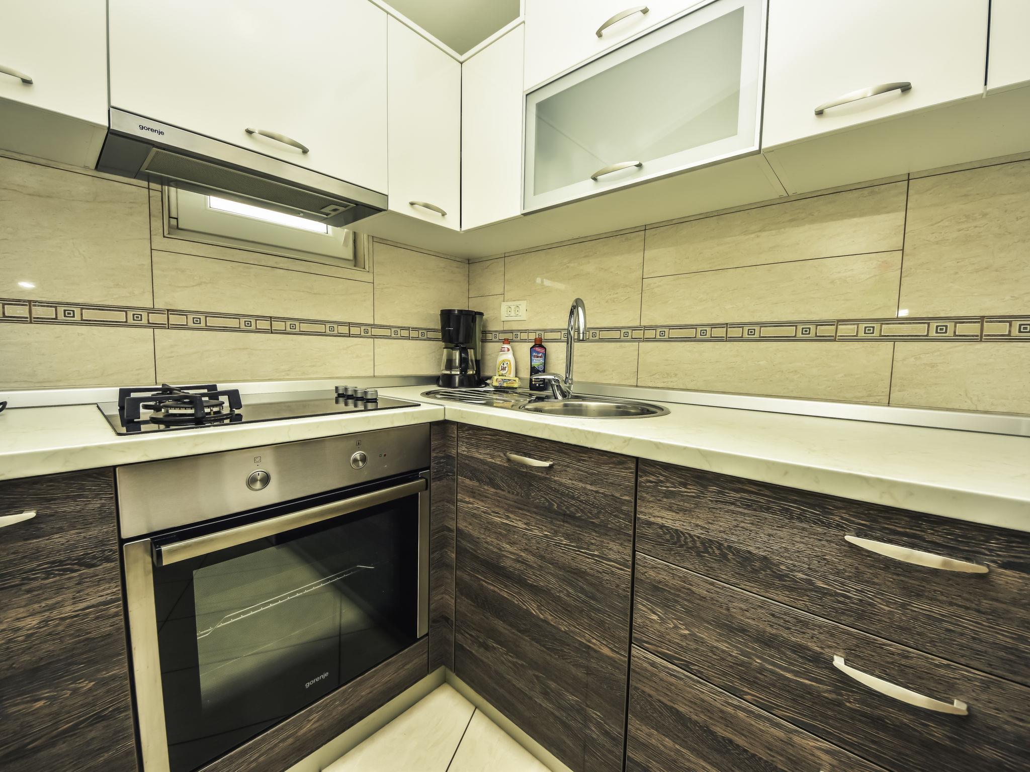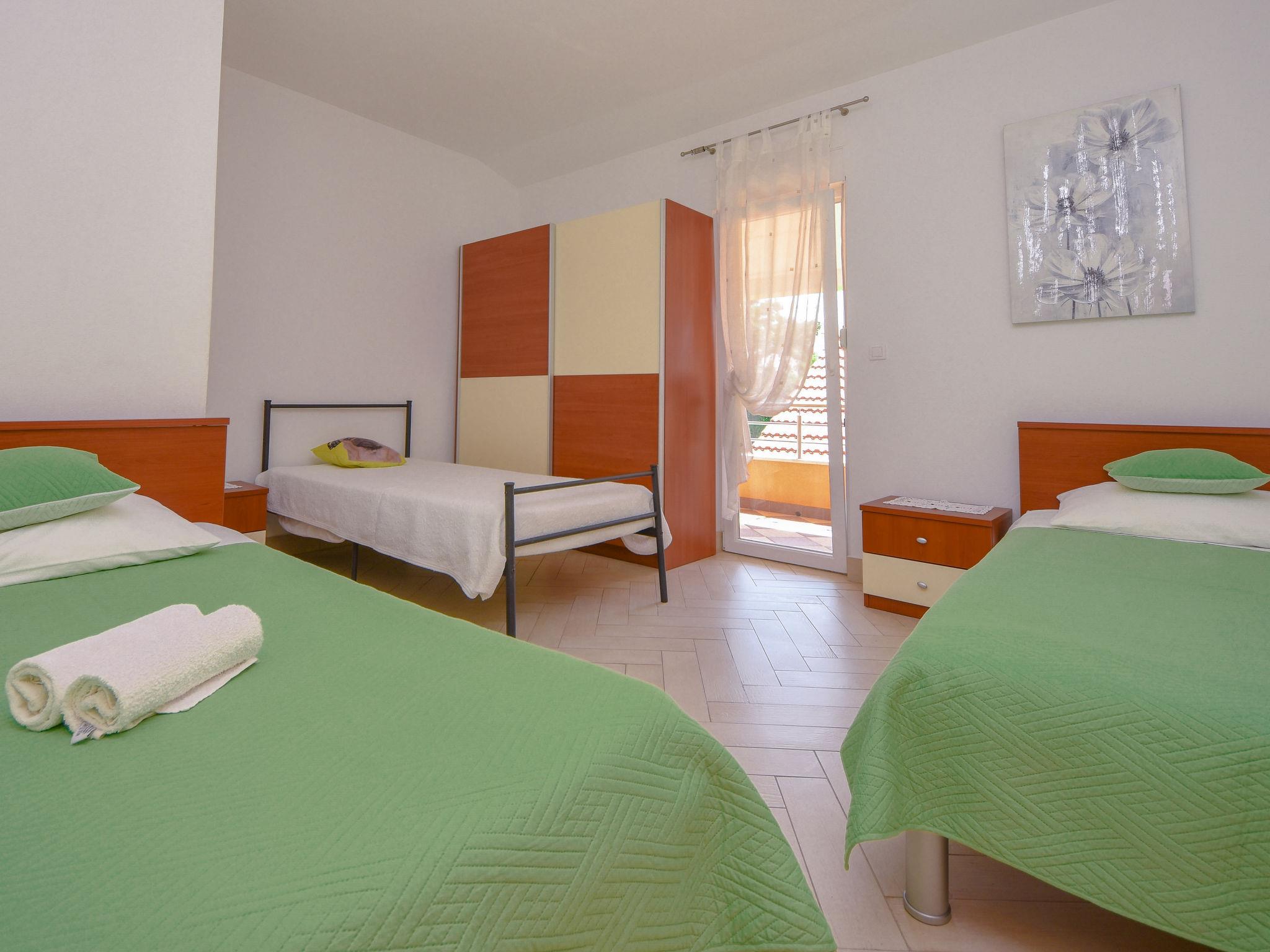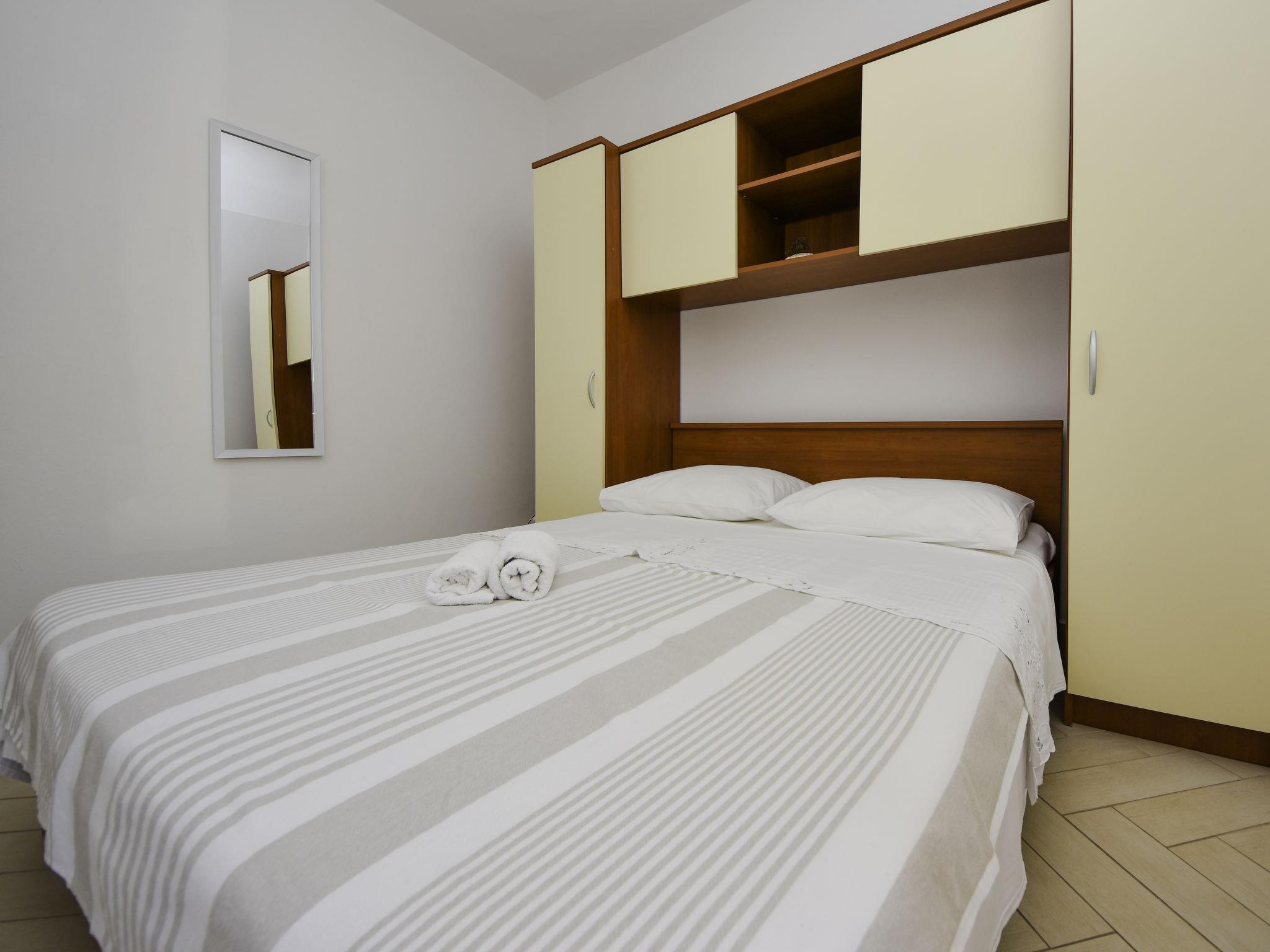 5-room apartment 130 m2 on 3rd floor. Living/dining room with satellite TV and air conditioning. Exit to the balcony. 1 room with 1 french bed (160 cm, length 200 cm). Exit to the balcony. 1 room with 2 beds and shower/WC. Exit to the balcony. 1 room with 2 beds. Exit to the balcony. 1 room with 1 french bed (160 cm, length 200 cm), shower/WC. Open kitchen (oven, dishwasher, 2 ceramic glass hob hotplates, 2 gas rings, toaster, kettle, electric coffee machine). Shower/WC. No heating option. 3 balconies 6 m2, balcony 25 m2. Balcony furniture, barbecue. View of the sea. Facilities: washing machine. Internet (WiFi, free). Please note: non-smokers only.
