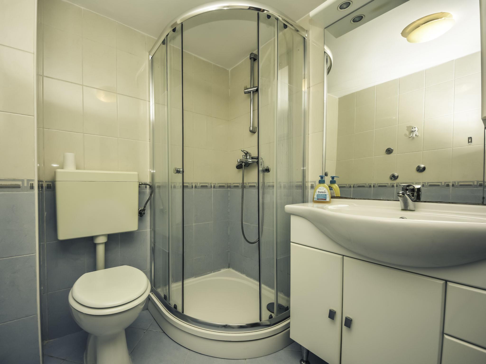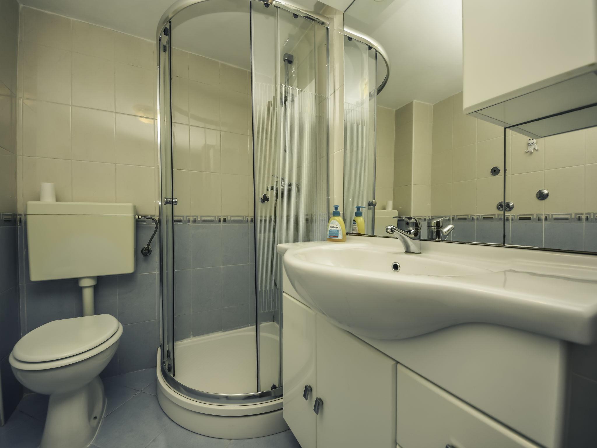 4-room apartment 105 m2 on 1st floor. Living/dining room, on 2 levels with dining table, satellite TV and air conditioning. 1 room with 1 french bed (160 cm, length 200 cm), shower/WC. 1 room with 2 beds and shower/WC. Exit to the balcony. 1 room with 1 french bed (160 cm, length 200 cm). Exit to the balcony. Open kitchen (oven, dishwasher, 4 ceramic glass hob hotplates, toaster, kettle, electric coffee machine), ceiling height 200 cm. Shower/WC. No heating option. 2 balconies 6 m2, terrace 50 m2 partly roofed. Terrace furniture, balcony furniture, barbecue. Facilities: washing machine. Internet (WiFi, free). Please note: non-smokers only.