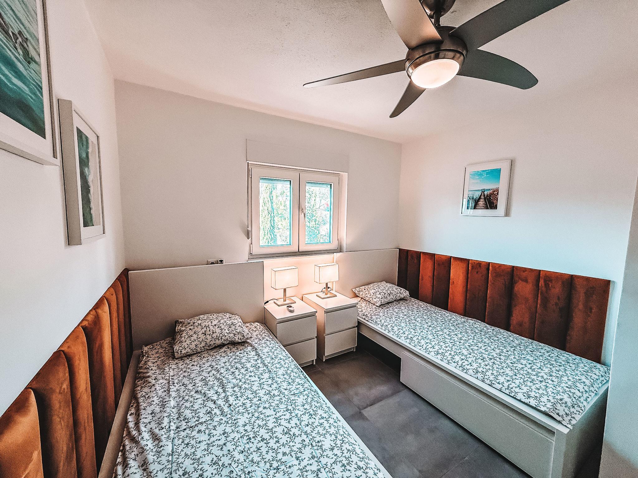Beautiful apartment house "Monika" in 2024. 17 km from the centre of Obrovac, 25 km from the centre of Zadar, in a sunny position, 150 m from the sea, 150 m from the beach. For shared use: property 500 m2. In the house: internet access, WiFi. Parking at the house on the premises. Shop, restaurant 300 m, bus stop 1.2 km, pebble beach, shingle beach, concrete beach 150 m.