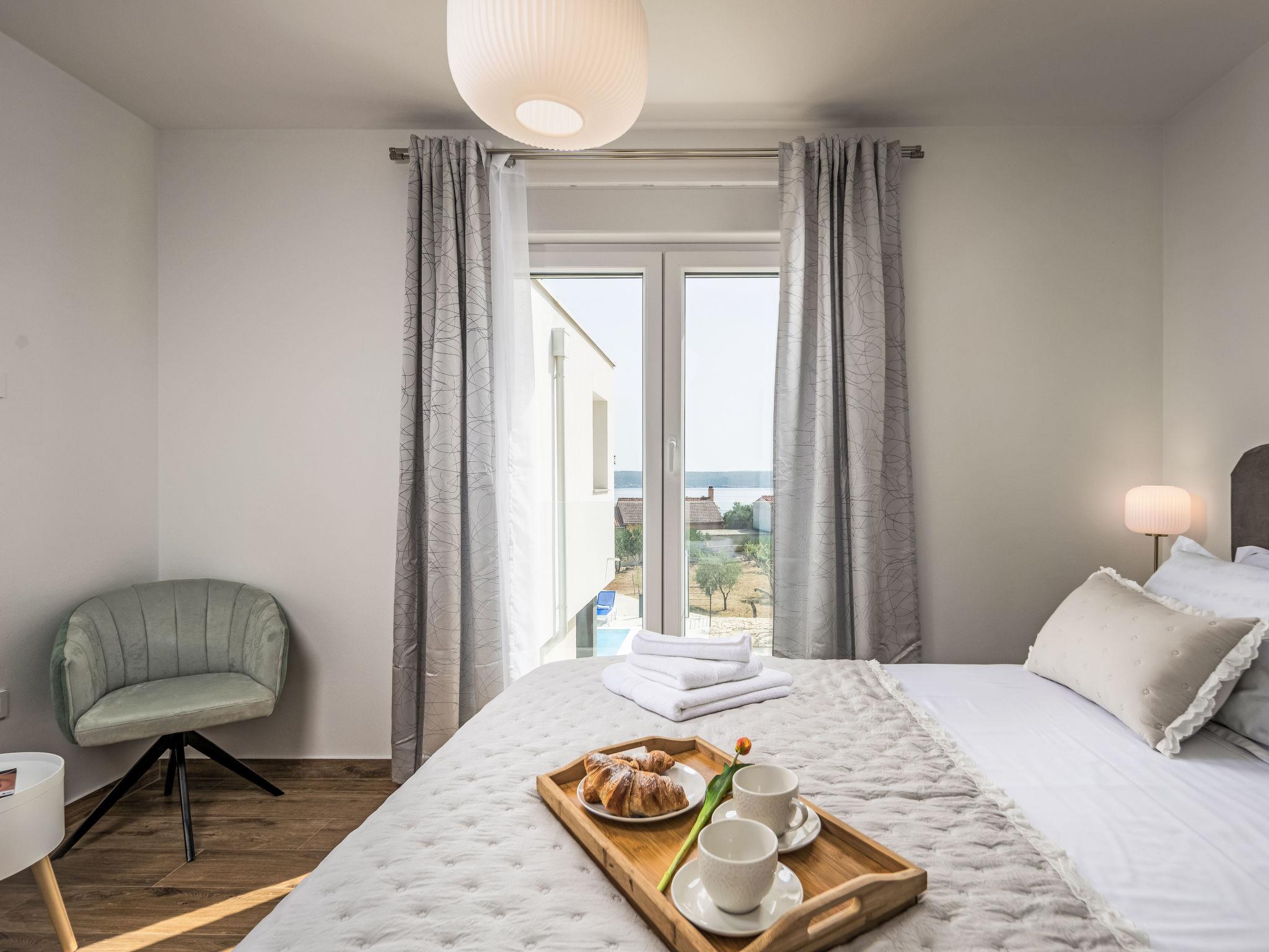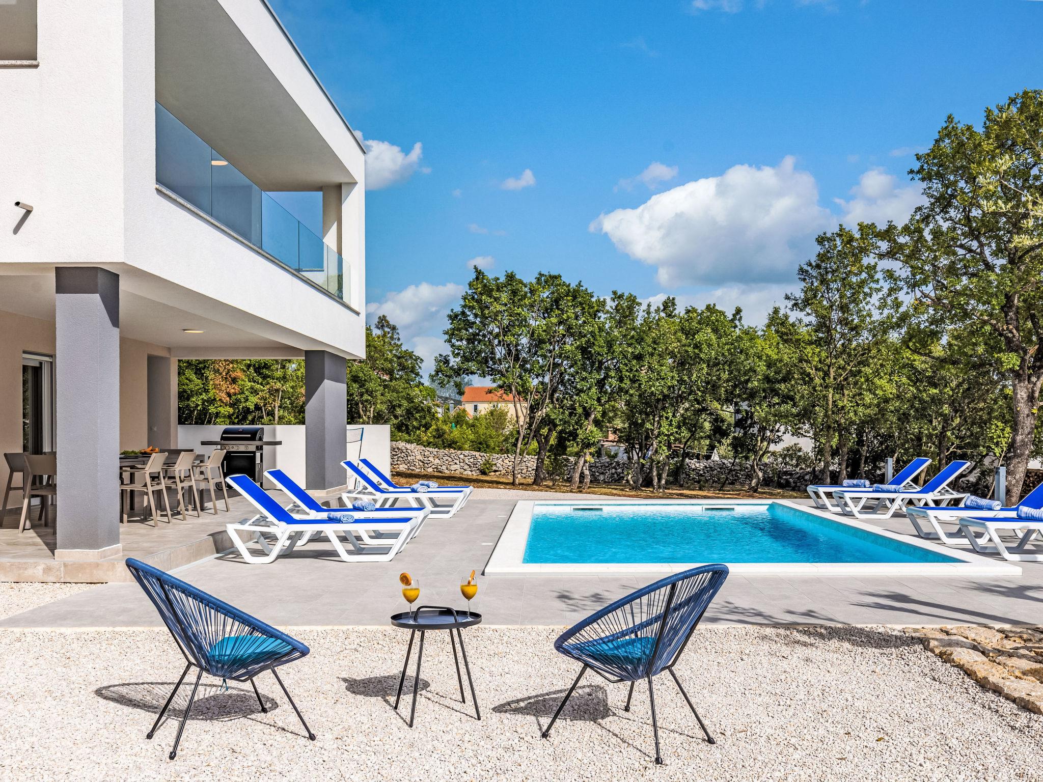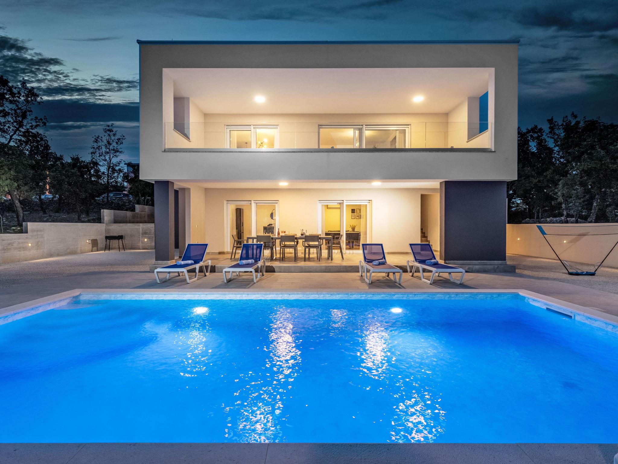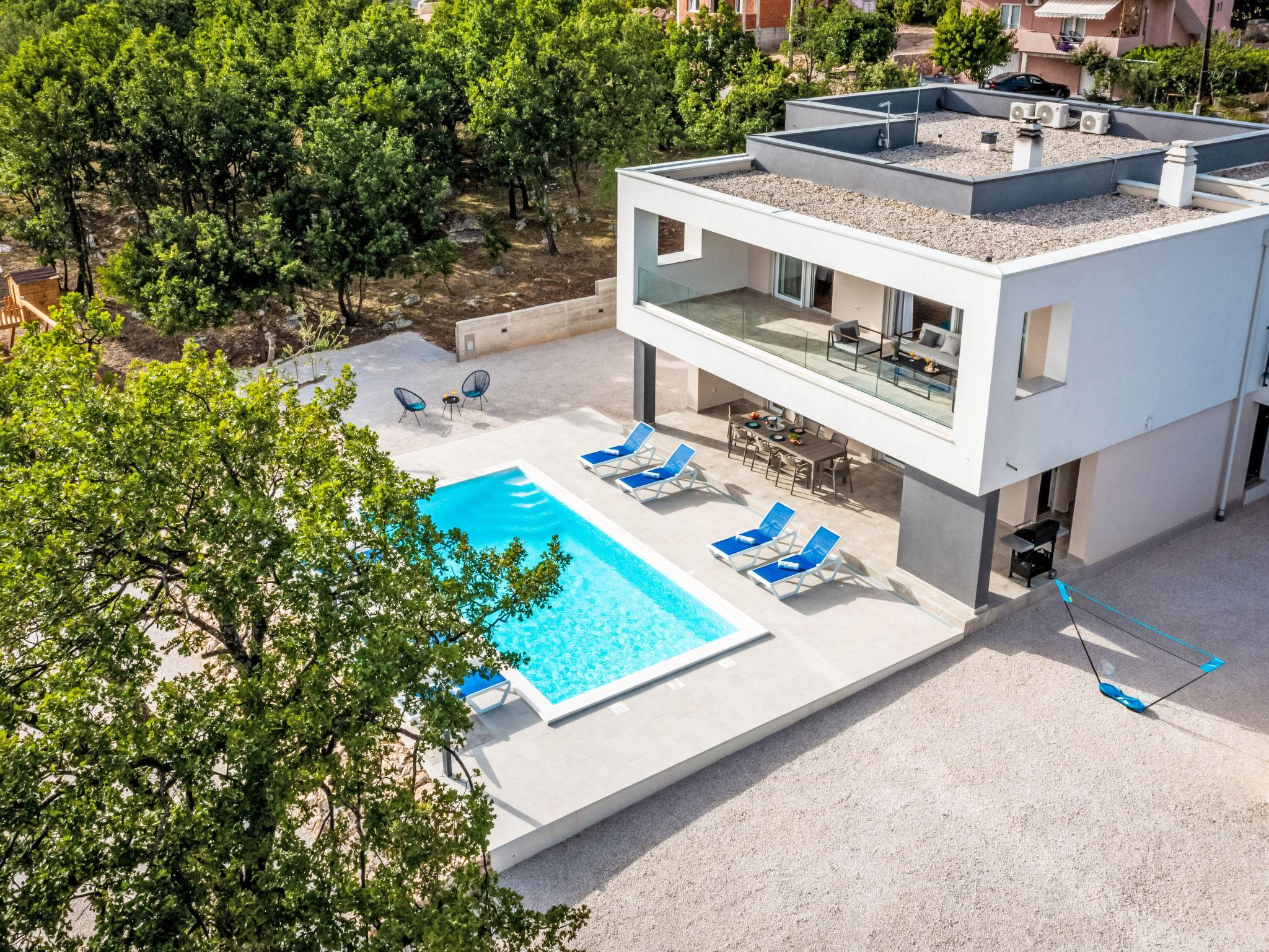 Modern villa "Green & Blue", 2 storeys, built in 2022. 28 km from the centre of Zadar, in a sunny, elevated position, 600 m from the sea, 600 m from the beach, located by a road. Private: property 9'000 m2 (fenced), swimming pool angular (8 x 4 m, depth 150 cm, seasonal availability: 15.May. - 15.Oct.). Outdoor shower, table tennis, garden furniture, barbecue, children's playground (slide, swing). In the house: internet access, billiard table, washing machine. Parking (for 3 cars) at the house on the premises. Shop 1 km, restaurant 1.5 km, bus stop 1.5 km, pebble beach, shingle beach 600 m. Nearby attractions: NP Paklenica 17 km, Rafting Zrmanja 35 km. The owner does not accept any youth groups.