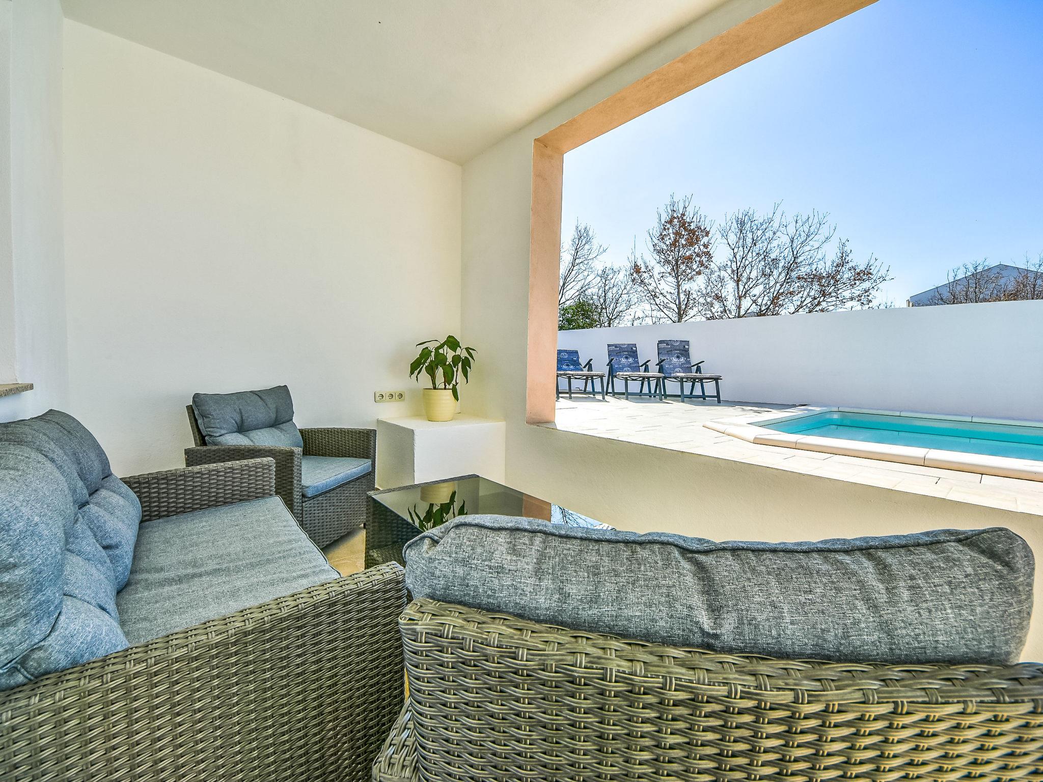 Maslenica 26 km from Zadar: Apartment house "4 you". In a sunny, elevated position, 450 m from the sea, 450 m from the beach. For shared use: property 450 m2, swimming pool (4 x 8 m, depth 150 cm, seasonal availability: 01.May. - 01.Oct.). Outdoor shower, garden furniture, barbecue. In the house: internet access, washing machine. Parking (for 2 cars) at the house on the premises. Shop 1 km, supermarket 6 km, restaurant 2 km, bus stop 2.7 km, rocky beach 130 m.