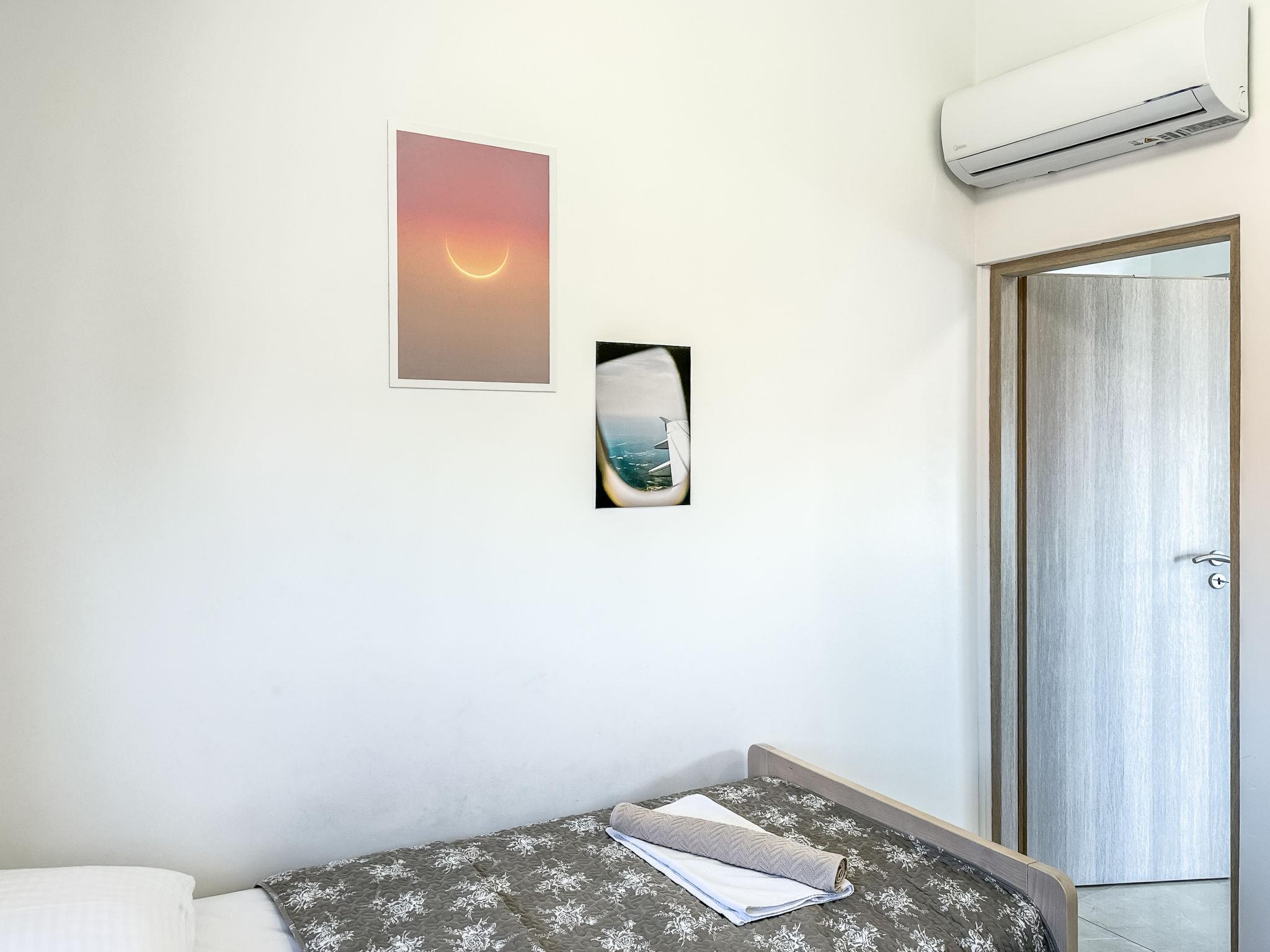 3-room apartment 55 m2, on the top floor, south-west facing position. Living/dining room 16 m2 with satellite TV (flat screen), air conditioning. Exit to the terrace. 1 room with 2 beds (90 cm, length 200 cm), air conditioning. 1 room with 1 french bed (160 cm, length 200 cm), TV and air conditioning. Open kitchen (oven, dishwasher, 4 ceramic glass hob hotplates, toaster, kettle, microwave, freezer, electric coffee machine). Shower/WC. No heating option. Terrace 25 m2. Terrace furniture. View of the sea. Facilities: washing machine. Internet (WiFi, free).