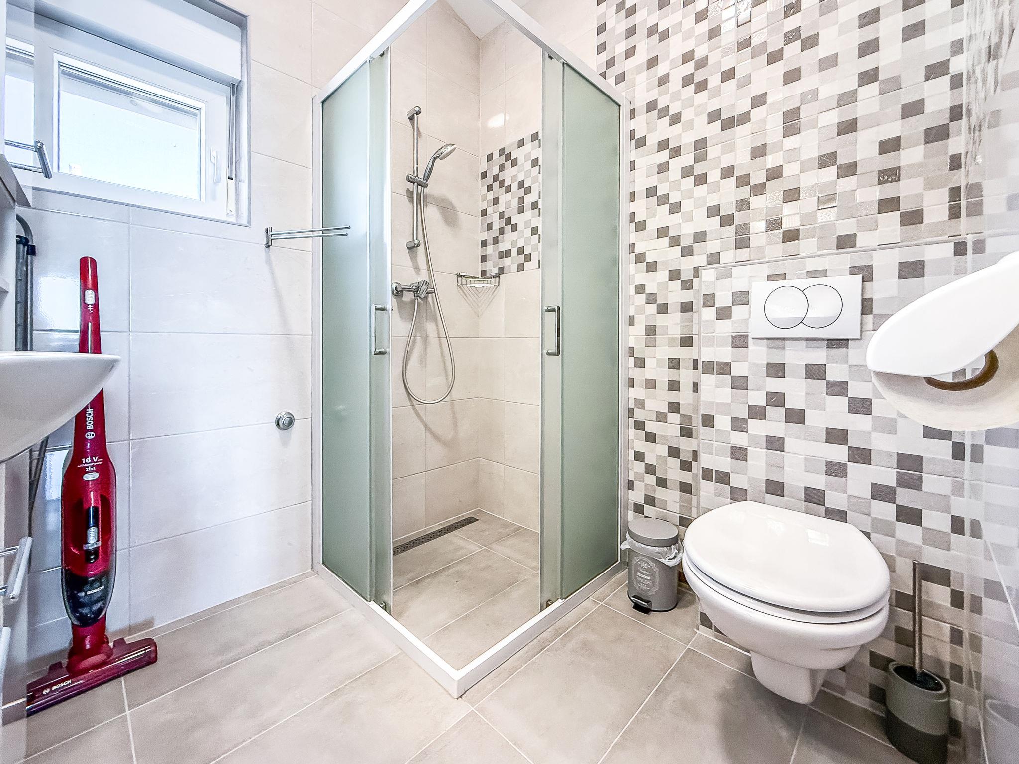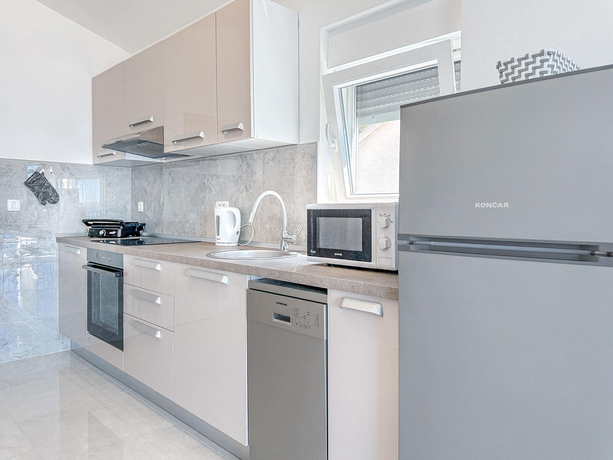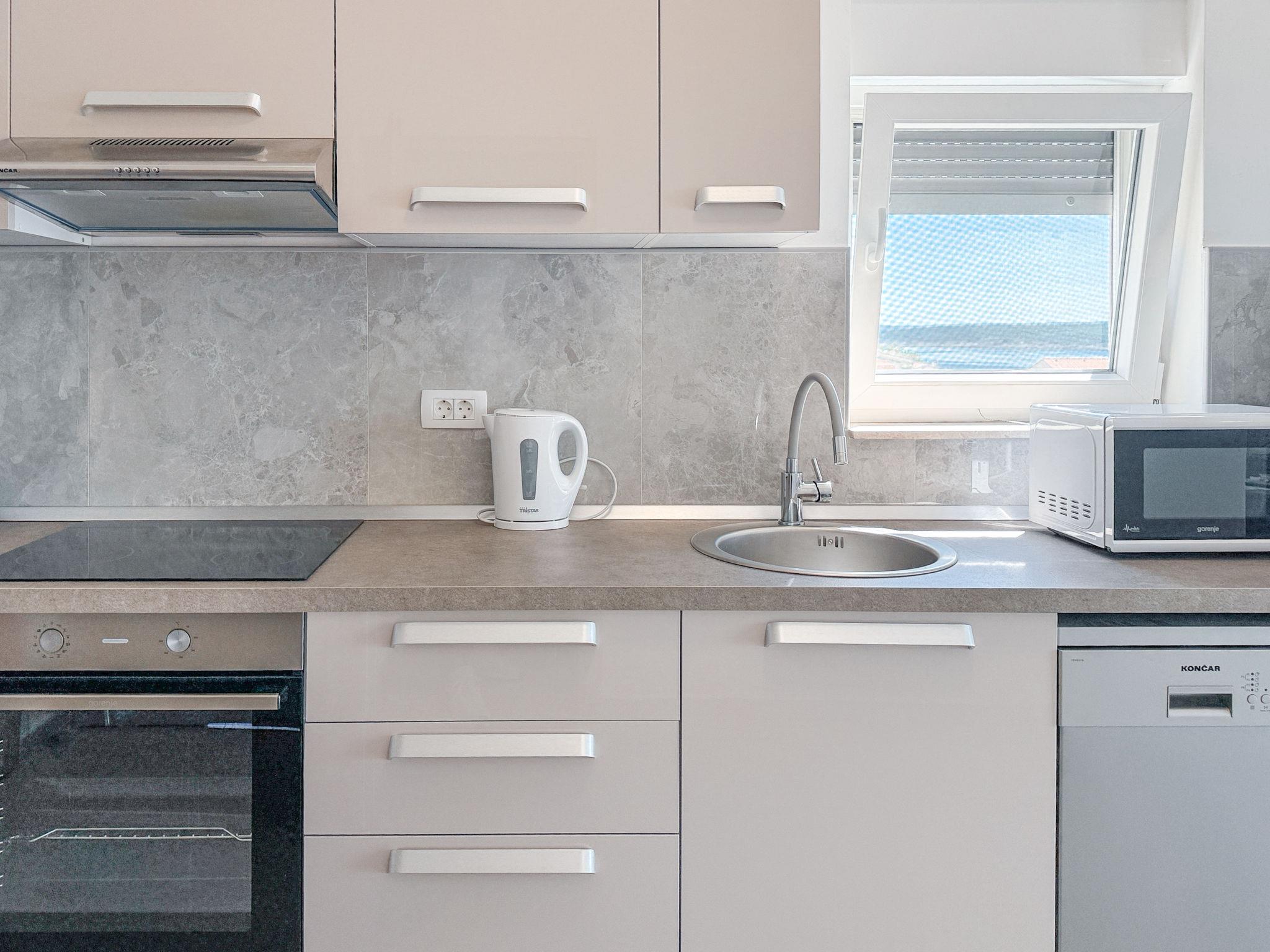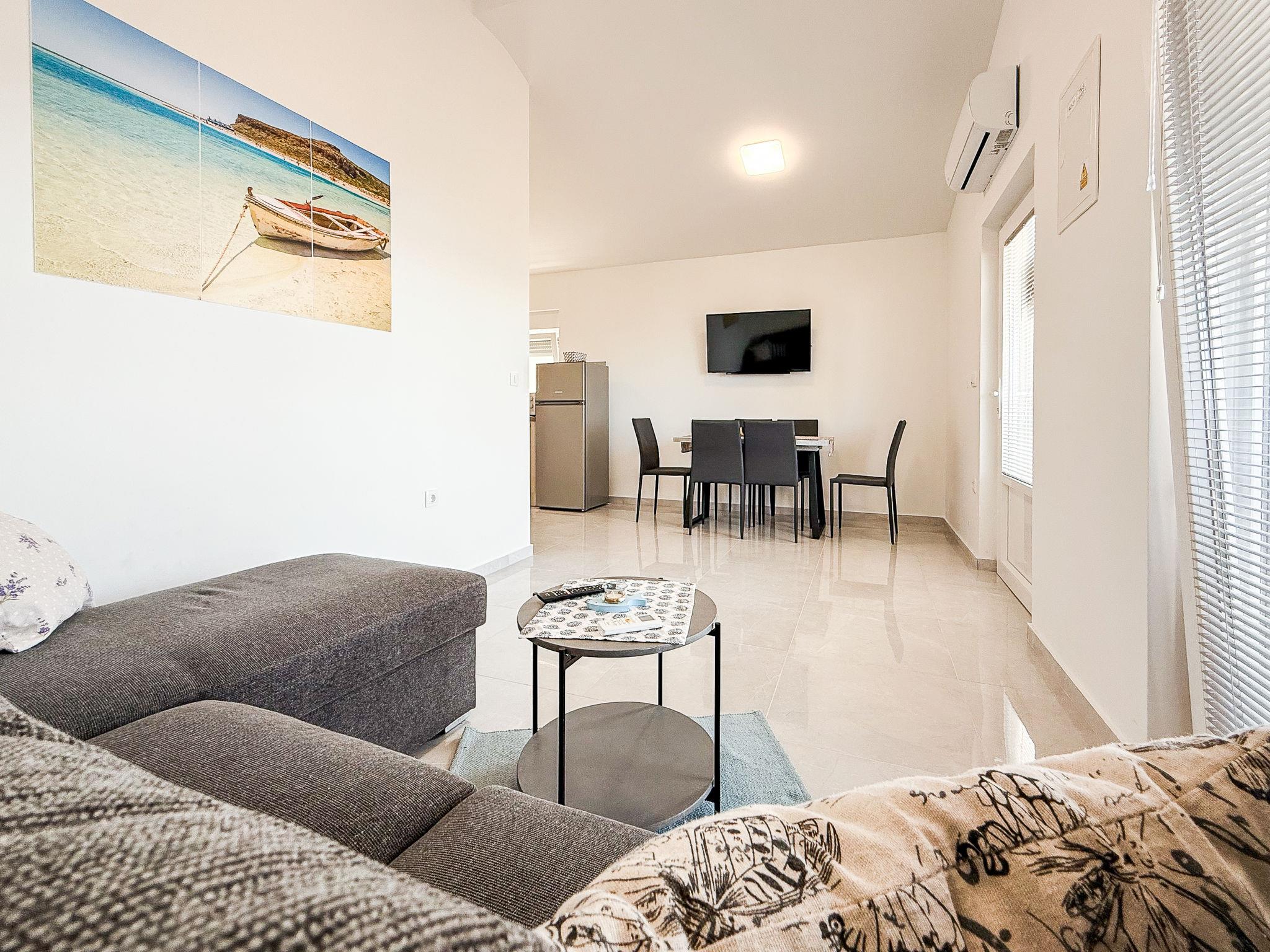 Apartment house "Vlado", built in 2024. 16 km from the centre of Obrovac, in a sunny, elevated position, 150 m from the sea, 150 m from the beach, located by a road. For shared use: property 400 m2 (fenced). In the house: internet access. Parking at the house on the premises. Shop, restaurant 500 m, bus stop 1 km, pebble beach 150 m. Nearby attractions: NP Paklenica 17 km, rafting Zrmanja 35 km.