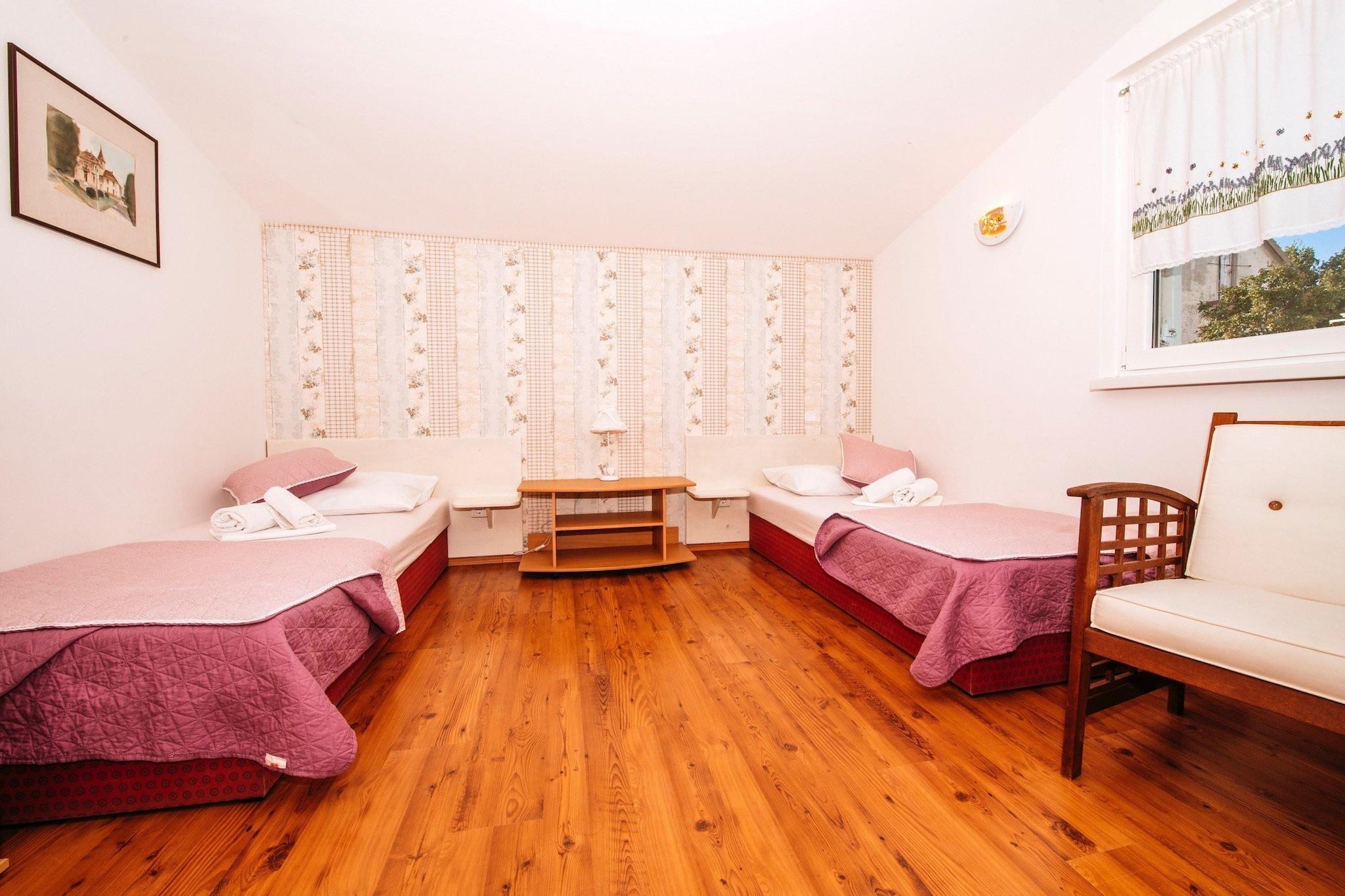 Beliggende i den fredelige kystlandsby Jasenice-Maslenica er dette charmerende toetagers hus det perfekte tilflugtssted for dig. Det tilbyder vidunderlig privatliv og en rolig atmosfære. Du vil elske planløsningen her: det består faktisk af to fuldt udstyrede, uafhængige lejligheder, hvilket gør det absolut ideelt, hvis du rejser med en anden familie eller en stor gruppe (op til ni gæster i alt fordelt på fire soveværelser). Bedst af alt? Du er kun en kort, nem 150 meter gåtur fra den nærmeste strand! Gør dig klar til at leve udendørs! Den smukt anlagte have er centreret omkring en dejlig privat swimmingpool og har to overdækkede terrasser til skygge. Til de mindeværdige sommeraftener finder du en dejlig, rustik dalmatisk taverna (konoba) med en åben pejs og et fuldt udstyret køkken - det er det ultimative sted til fælles måltider og godt selskab. Indenfor er begge enheder moderne og lyse og tilbyder fuldt udstyrede køkkener (med induktionskogeplader og opvaskemaskiner), og balkonen på øverste etage tilbyder en utrolig, betagende havudsigt, der virkelig vil tage pusten fra dig. Hvis du er en opdagelsesrejsende i hjertet, kunne du ikke bede om en bedre base. Villaen er strategisk placeret tæt på nogle af Kroatiens bedste udendørseventyr. Du kan være i den historiske by Zadar på kun 28 km, eller hurtigt nå Paklenica Nationalpark (en klatredestination) kun 12 km væk. Med Velebitbjergene lige der, og Plitvicesøerne og Krka-vandfaldene inden for 1,5 times kørsel, vil dine dage være fyldt med vandreture, cykling og naturlig skønhed. Det er her, afslapning møder eventyr på den dalmatiske kyst! Rygning og kæledyr er ikke tilladt.