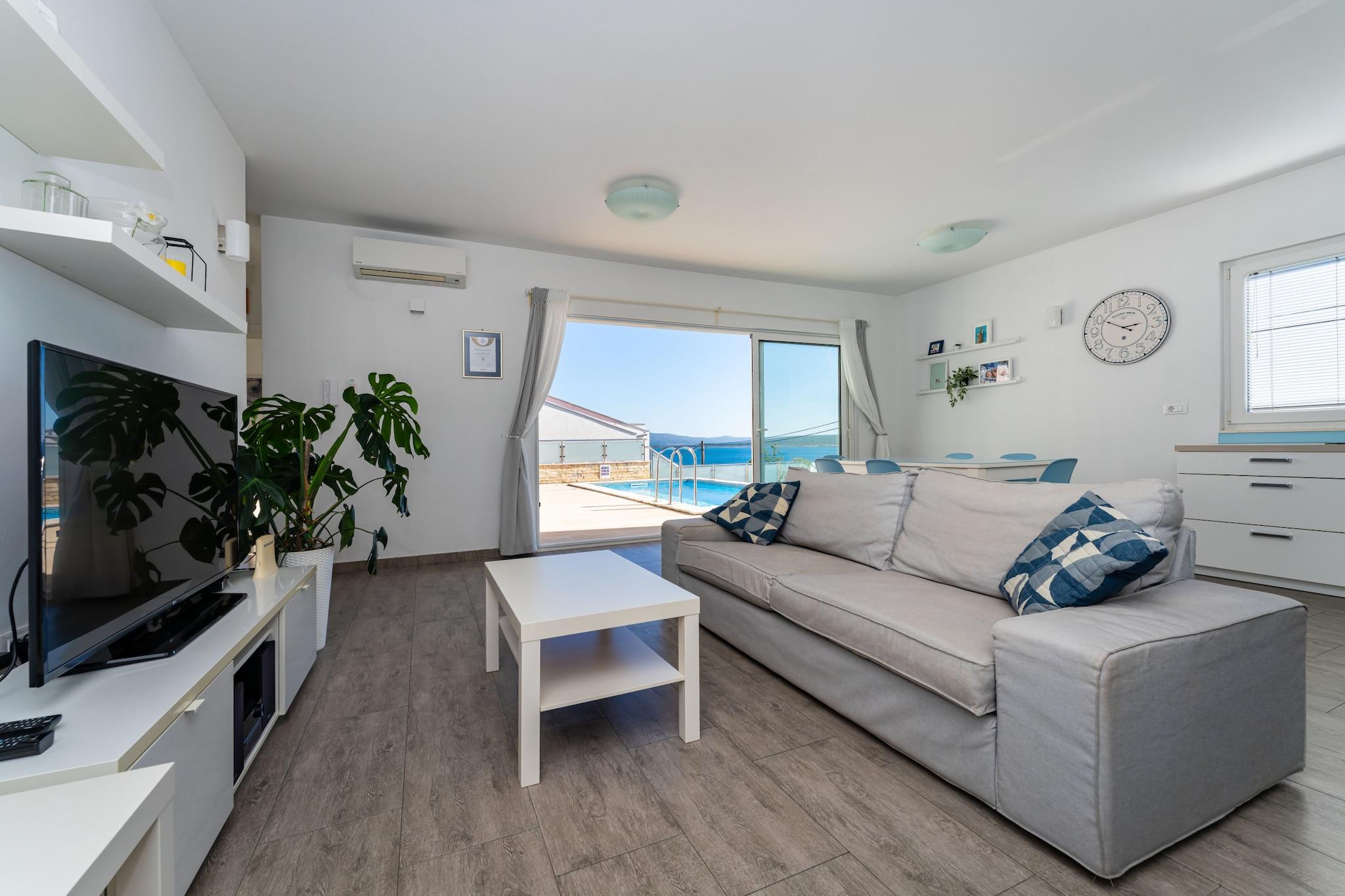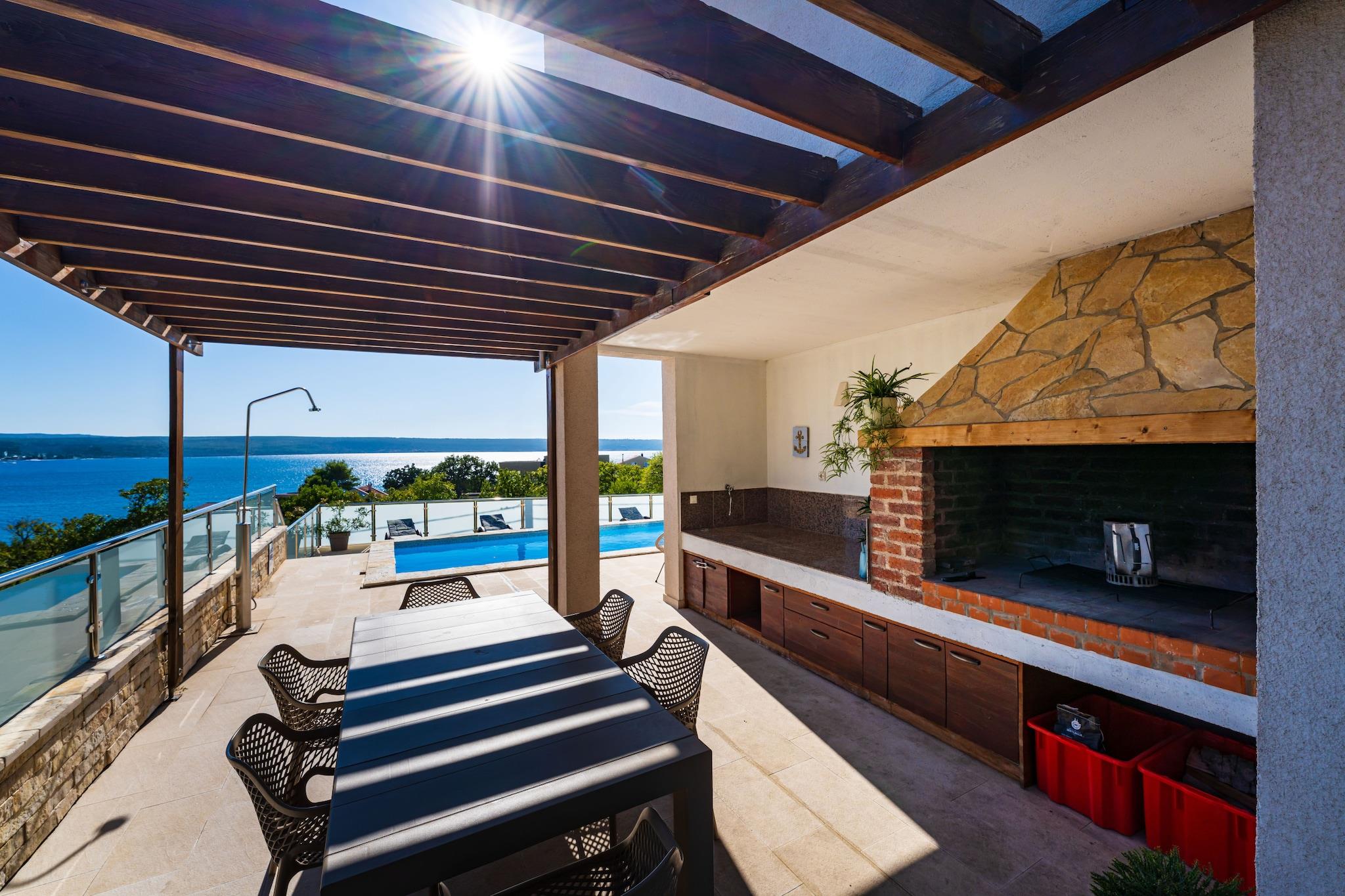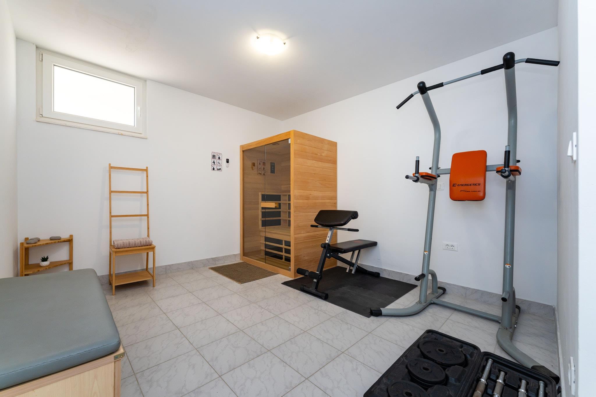 Denne villa i Maslenica tilbyder virkelig alt til en komplet og privat ferie: din egen opvarmede swimmingpool, en fantastisk havudsigt og et dedikeret wellness-område. Dette fredelige tilflugtssted er bekvemt placeret kun 150 meter fra en charmerende stenstrand, hvilket gør det til en ideel base for en stressfri ferie. Det rummelige boligareal på 220 kvadratmeter er fordelt på to etager. Stueetagen har en lys opholds- og spisestue, et fuldt udstyret køkken, et komfortabelt soveværelse og et moderne badeværelse. Ovenpå finder du to ekstra soveværelser, begge med luksusen af ensuite badeværelser. Alle værelser er udstyret med aircondition for komfort året rundt. Til underholdning er underjordisk etage en absolut fornøjelse med et afslapningsrum med sauna, fitnessudstyr, poolbord, dart og bordtennis. Udenfor omfatter den fuldt indhegnede have en overdækket terrasse med grill, en opvarmet swimmingpool omgivet af en terrasse med havudsigt og liggestole samt en garage med sikker parkering. Dette sted er et paradis for eventyrere, med indgangen til Paklenica Nationalparks største klatrecenter kun 12 km væk, og nem adgang til Velebit-bjergstierne. Dagsture til Zadar, Krka og Plitvice-søerne er alle nemme at tage herfra. For alles bekvemmelighed er rygning ikke tilladt inde på ejendommen, og selvom vi beder om, at grupper af unge under 25 år afstår fra at booke, er vi glade for at byde velopdragne kæledyr velkommen, med undtagelse af farlige dyr.