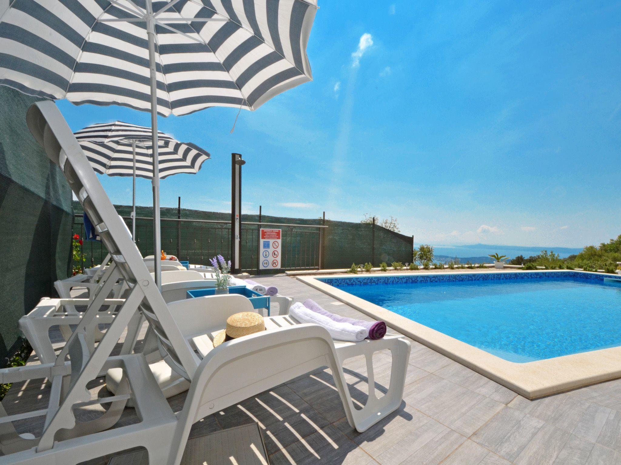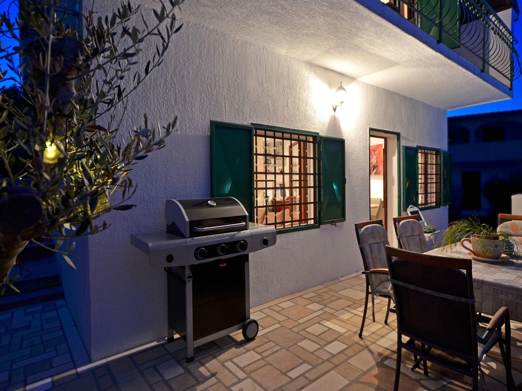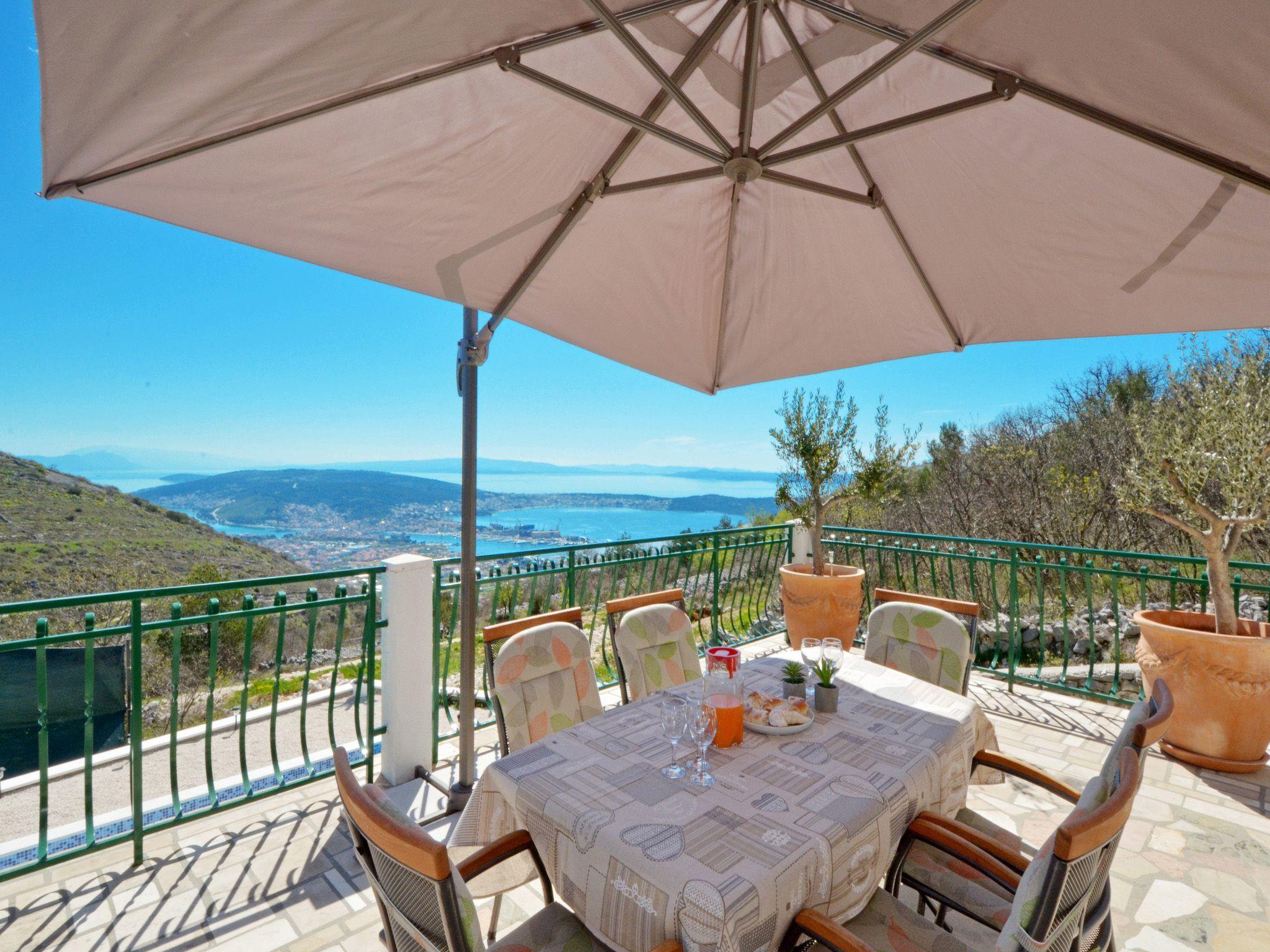 The terrace is equipped with garden furniture and sunshade. There is also a barbecue. From terrace you have view on Adriatic sea, city and a private pool. Swimming pool is for your private use only. House provide private parking space.