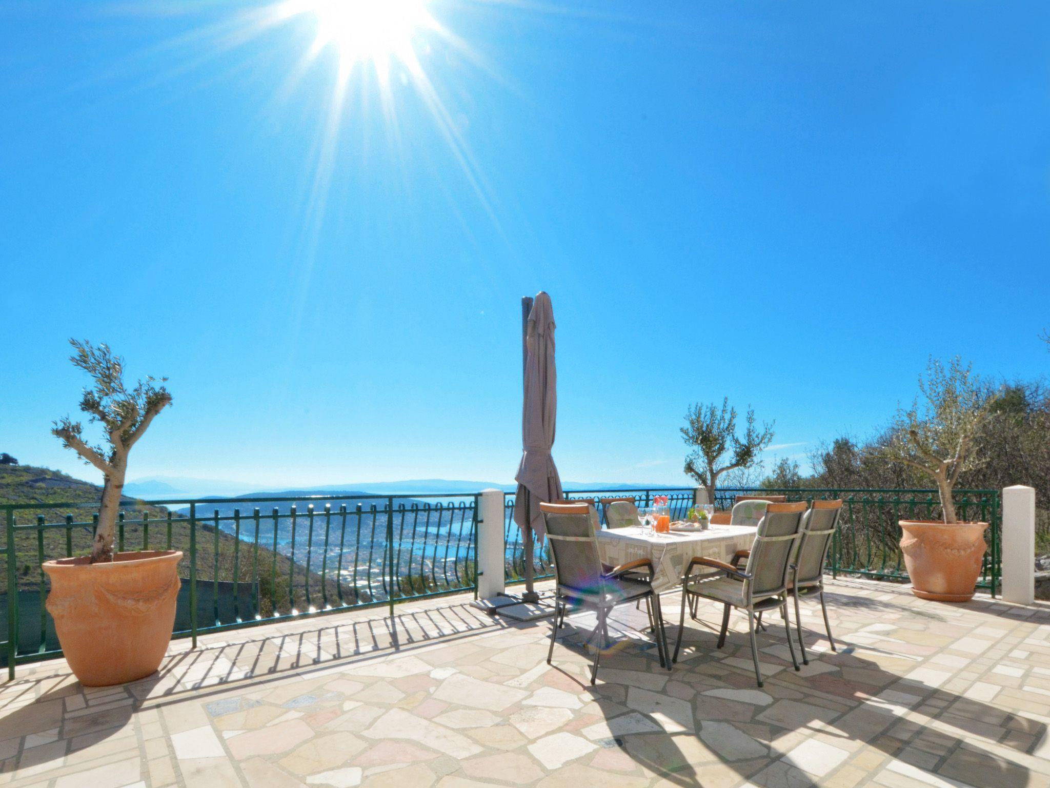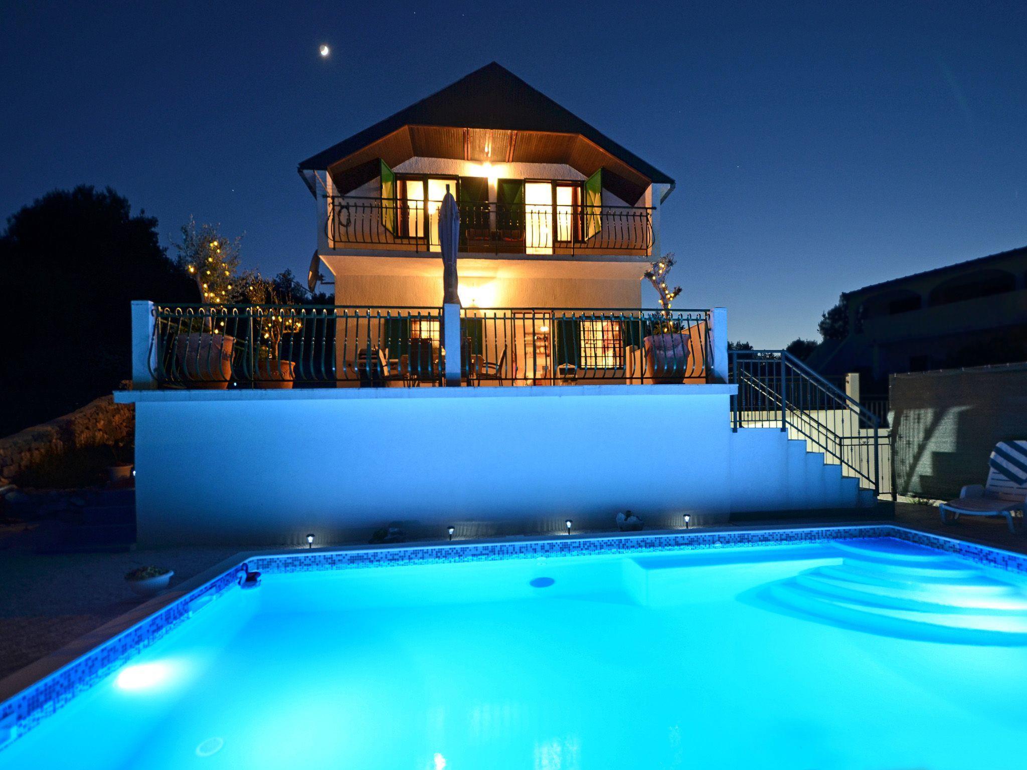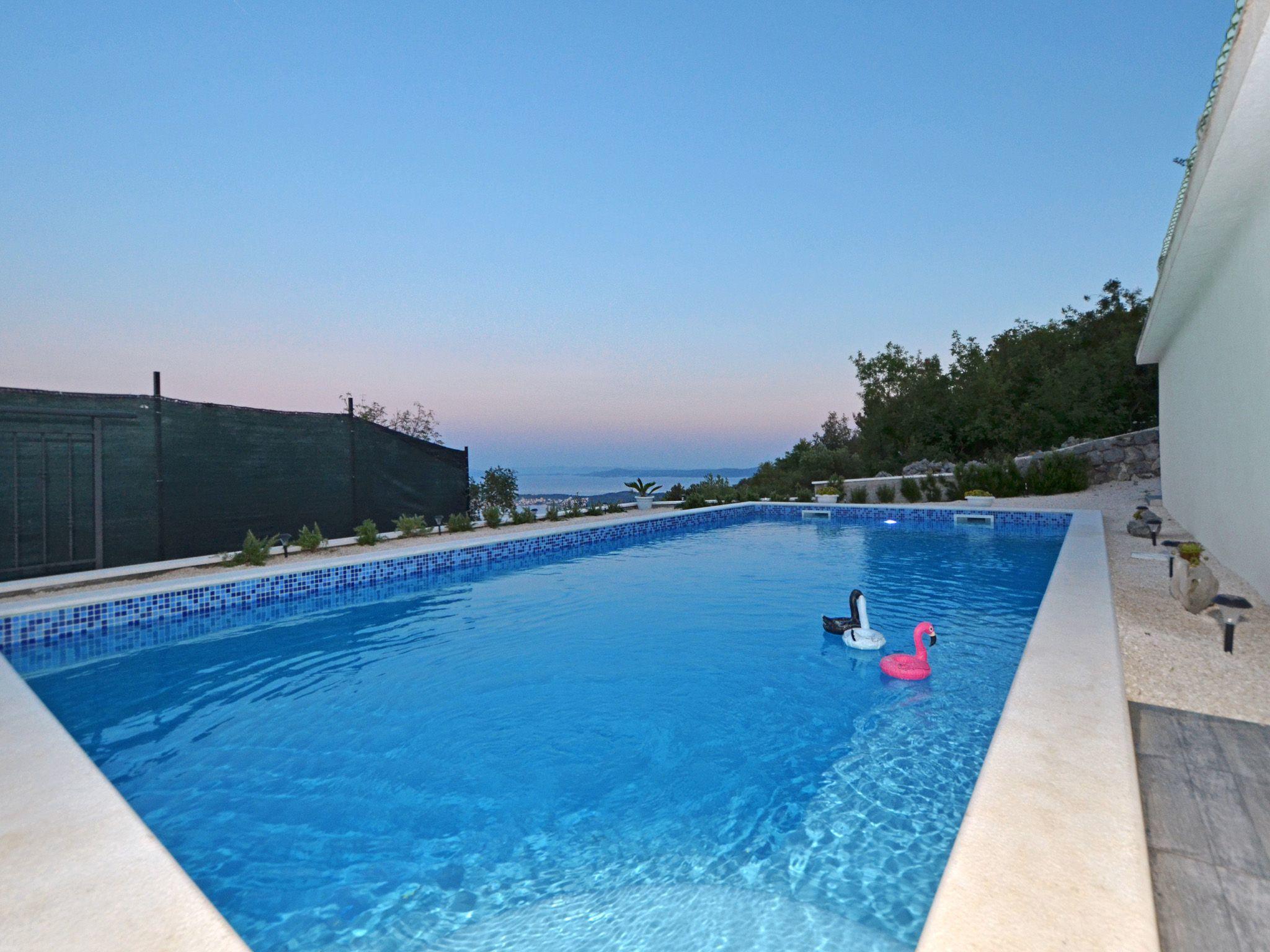 The terrace is equipped with garden furniture and sunshade. There is also a barbecue. From terrace you have view on Adriatic sea, city and a private pool. Swimming pool is for your private use only. House provide private parking space.