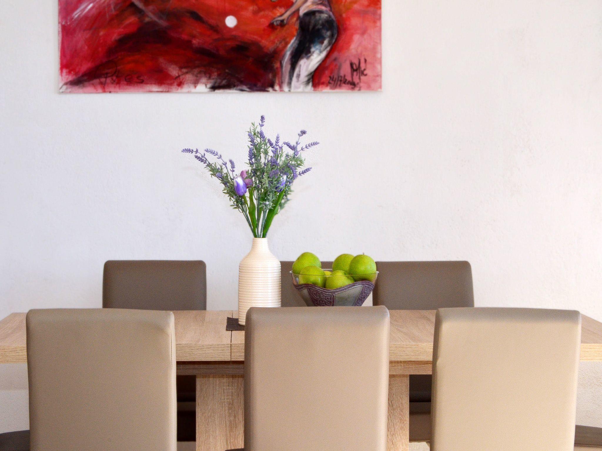 The ground floor is about 65 m² in size and comprises of the following rooms: a living room with a flatscreen TV and a double sofa bed. There is also a dinning area for 8 persons. There is a fully-equipped kitchen with an oven, microwave and coffee machine. As well as an guest toilet. On second floor are set 3 beedrooms with large king side beds and a second toilet. There is also a big toilet with shower.