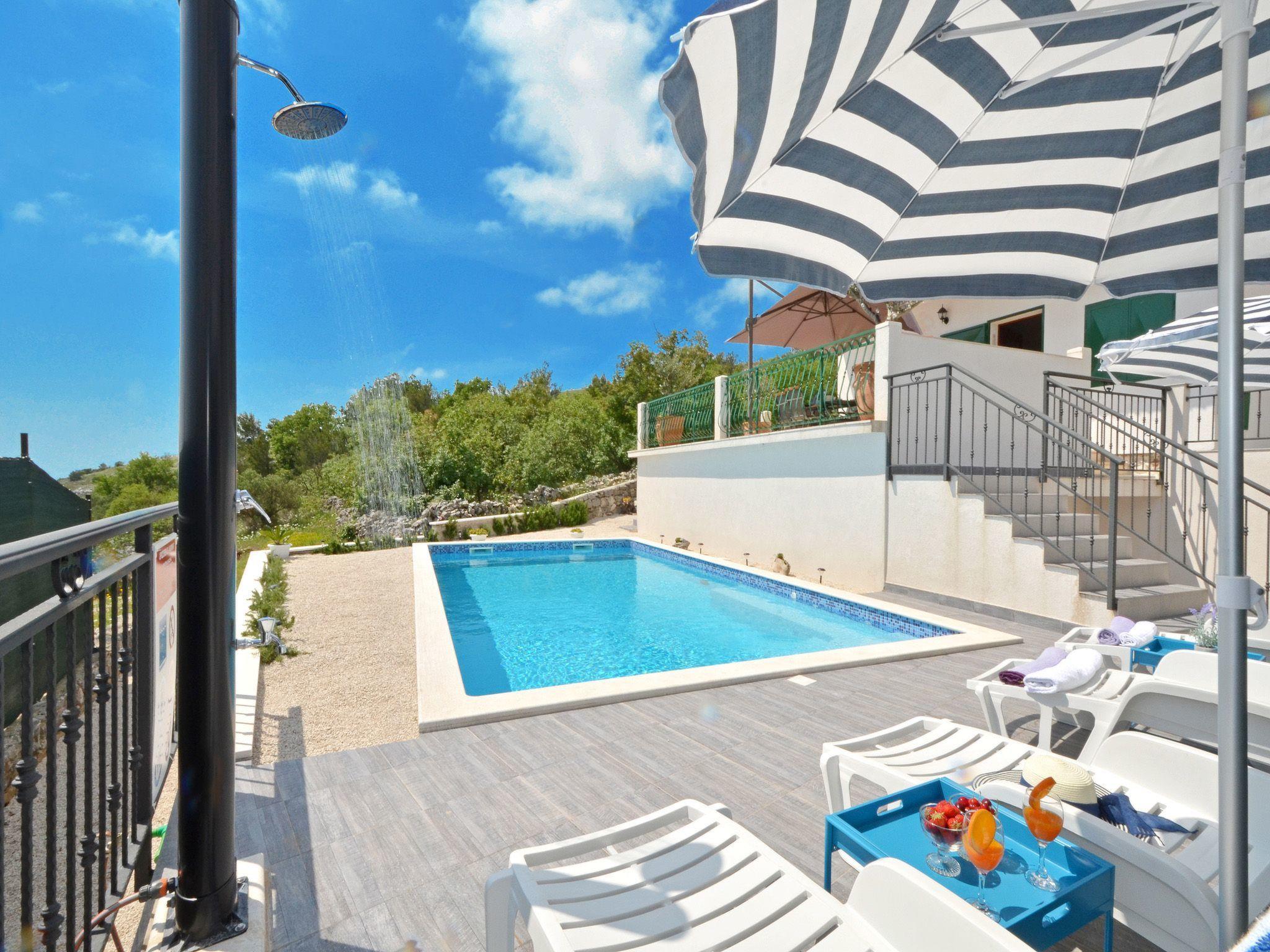 Vacation house Miramar is a three bedroom rental house with sunny balcony that offers a view on Adriatic sea, private pool and private parking. Is fully furnished with everything that you need for your Dalmatian vacation. It has one bathroom with shower and two toilets.